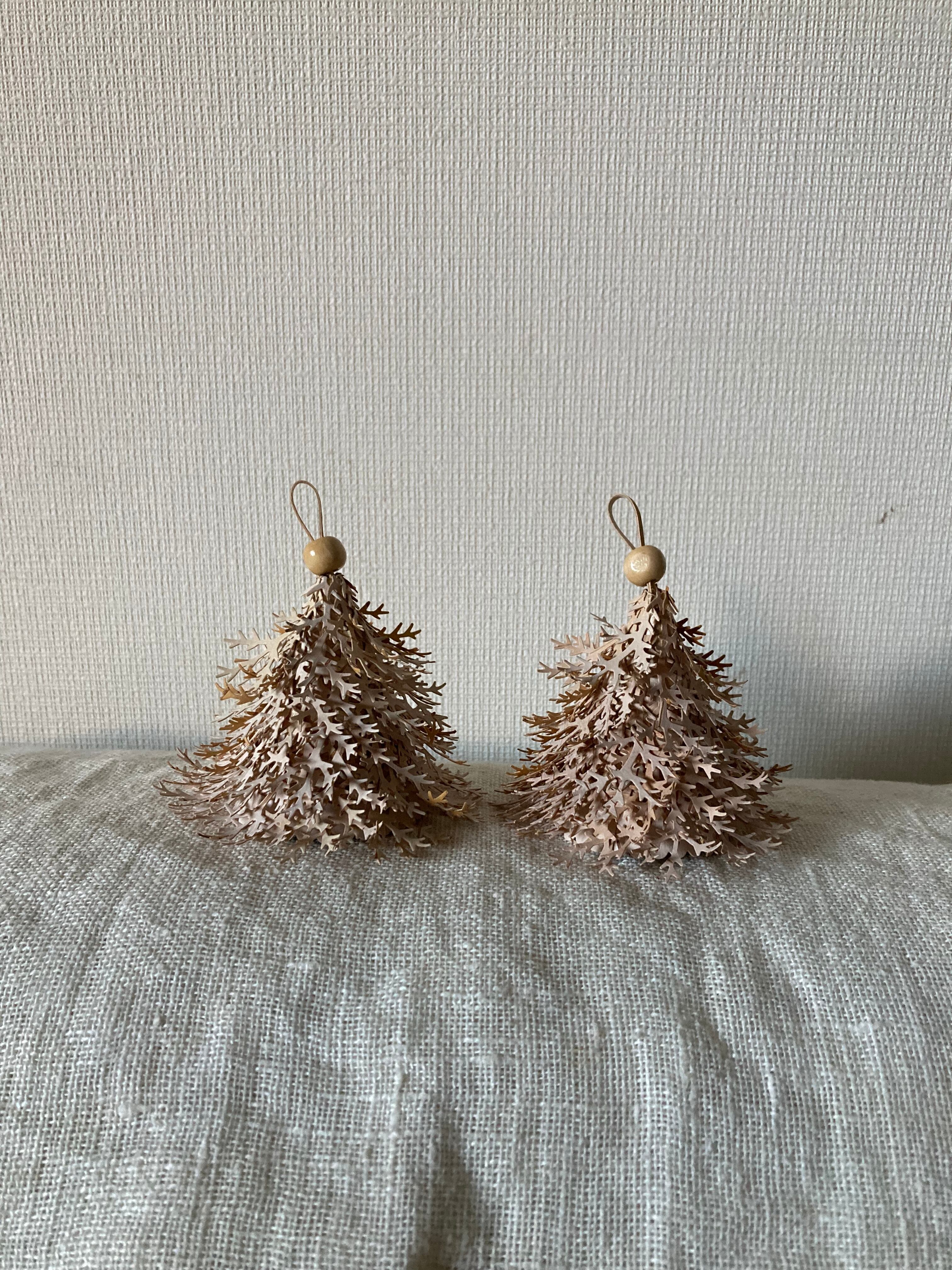 白樺の樹皮を重ねて作れられたとても凝った、白樺のツリーの立体的なオーナメント。