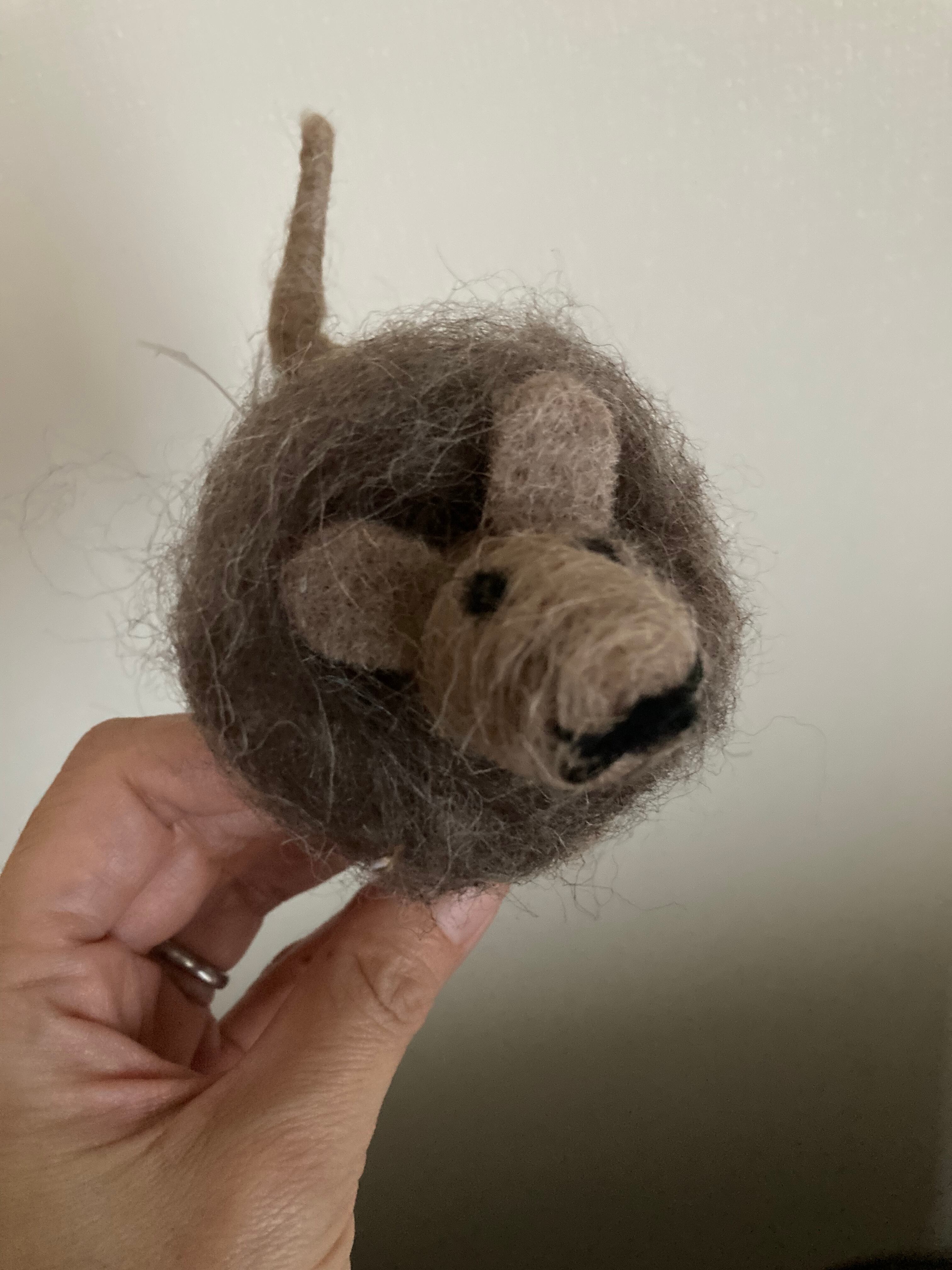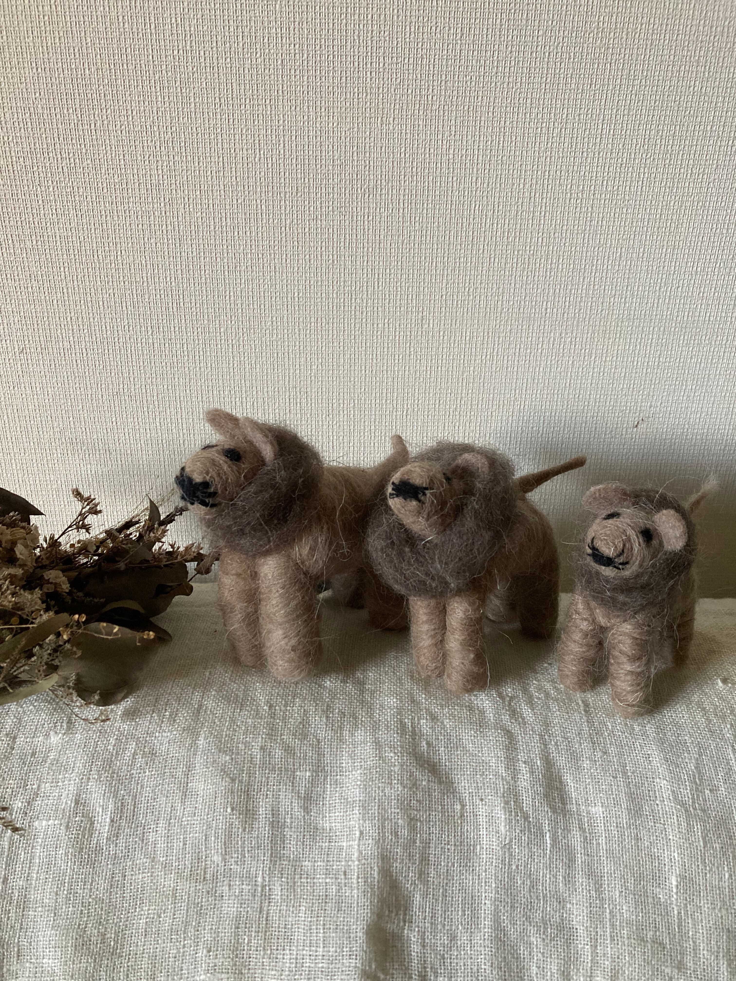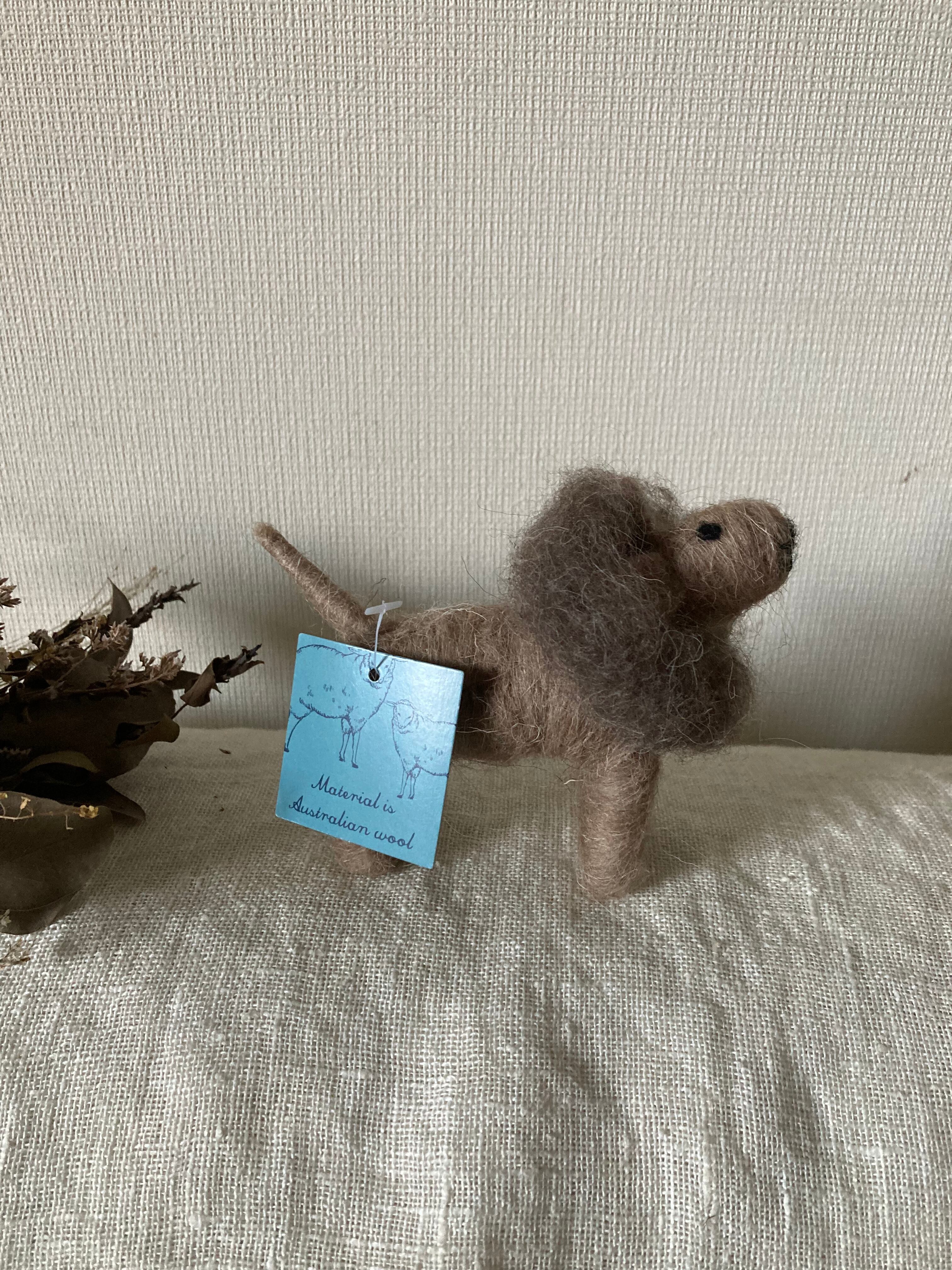 フラッフィーウールのハンドメイドのライオンのオブジェ 中