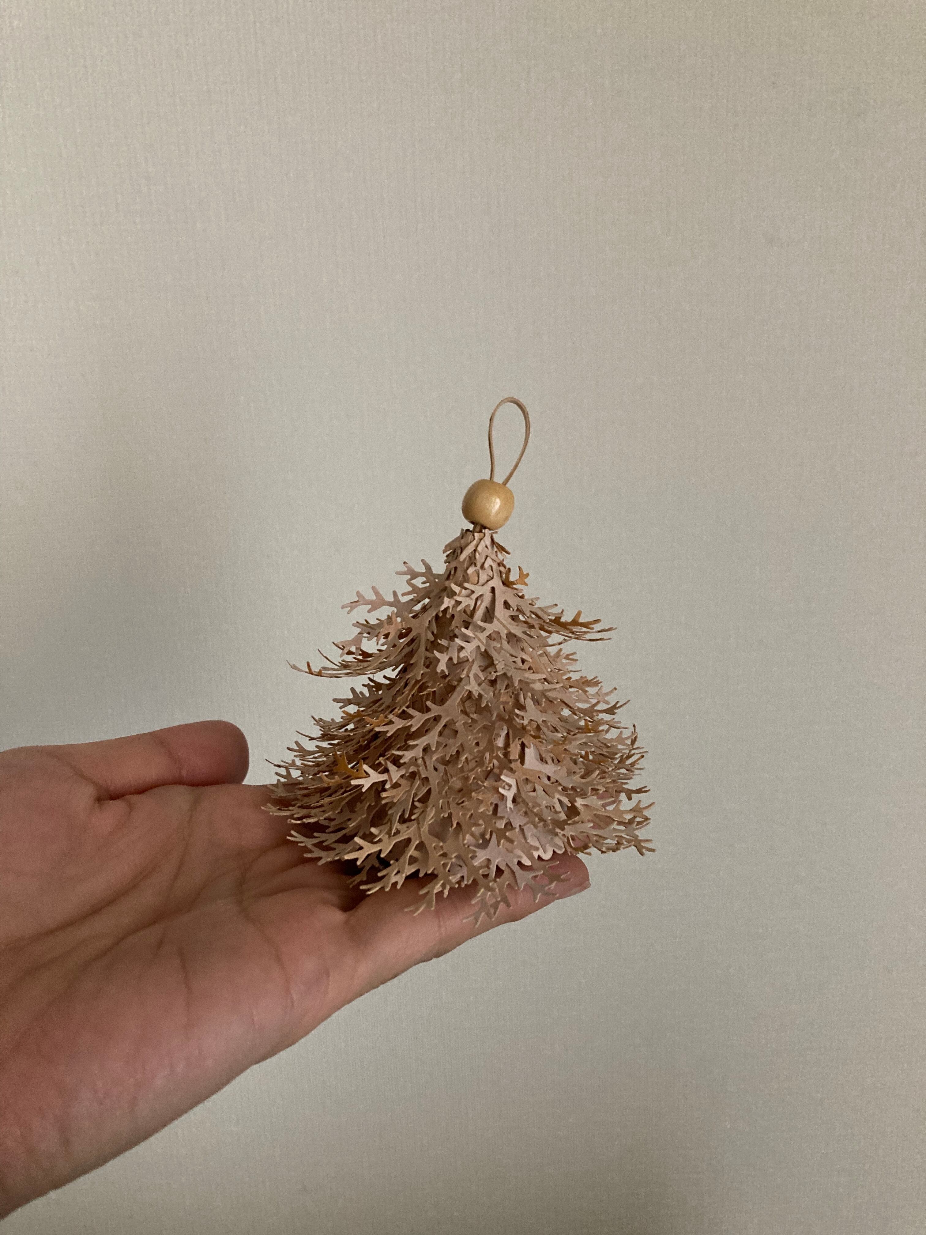 白樺の樹皮を重ねて作れられたとても凝った、白樺のツリーの立体的なオーナメント。
