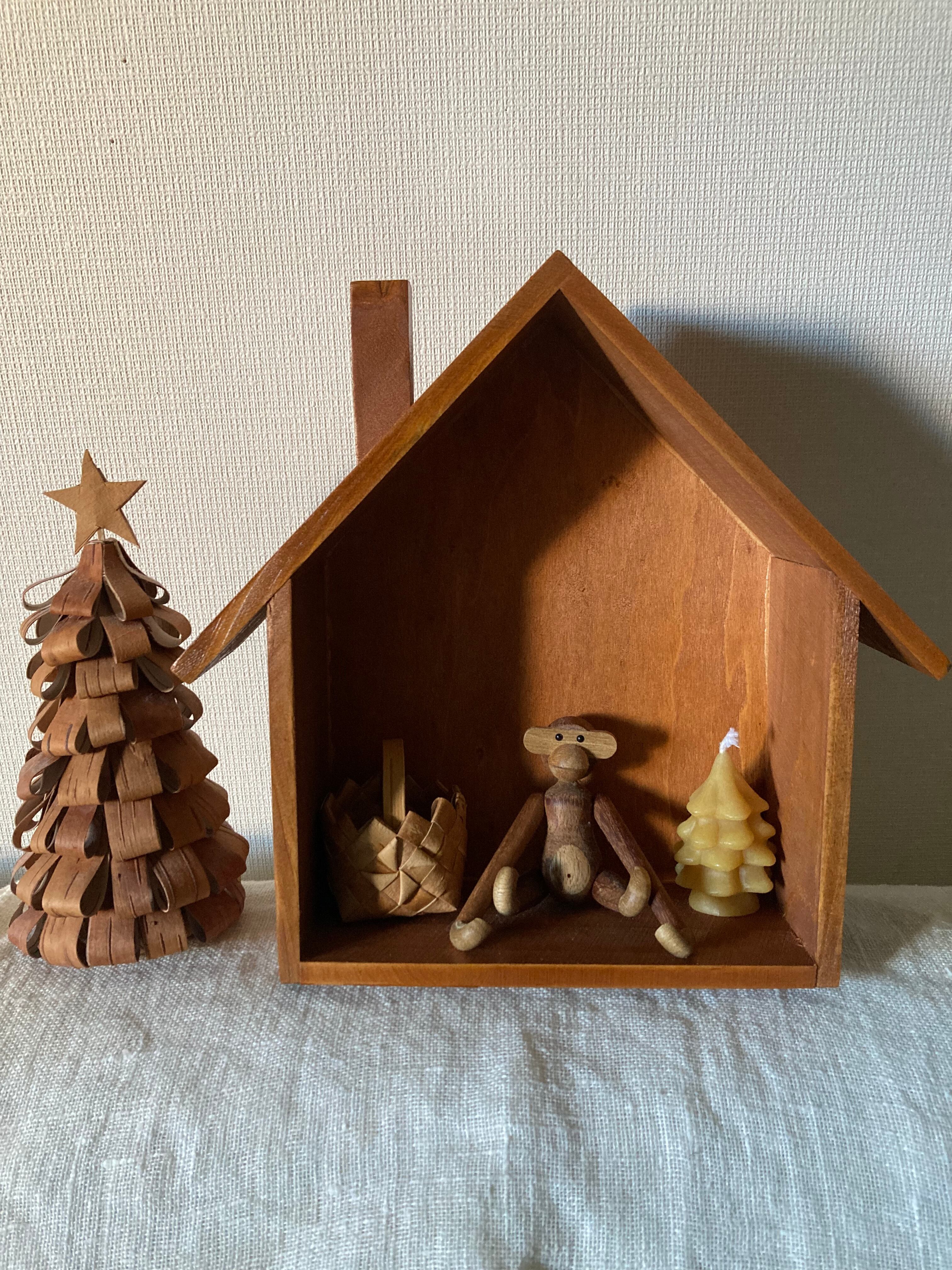 木のおうち型 壁掛けの飾り棚