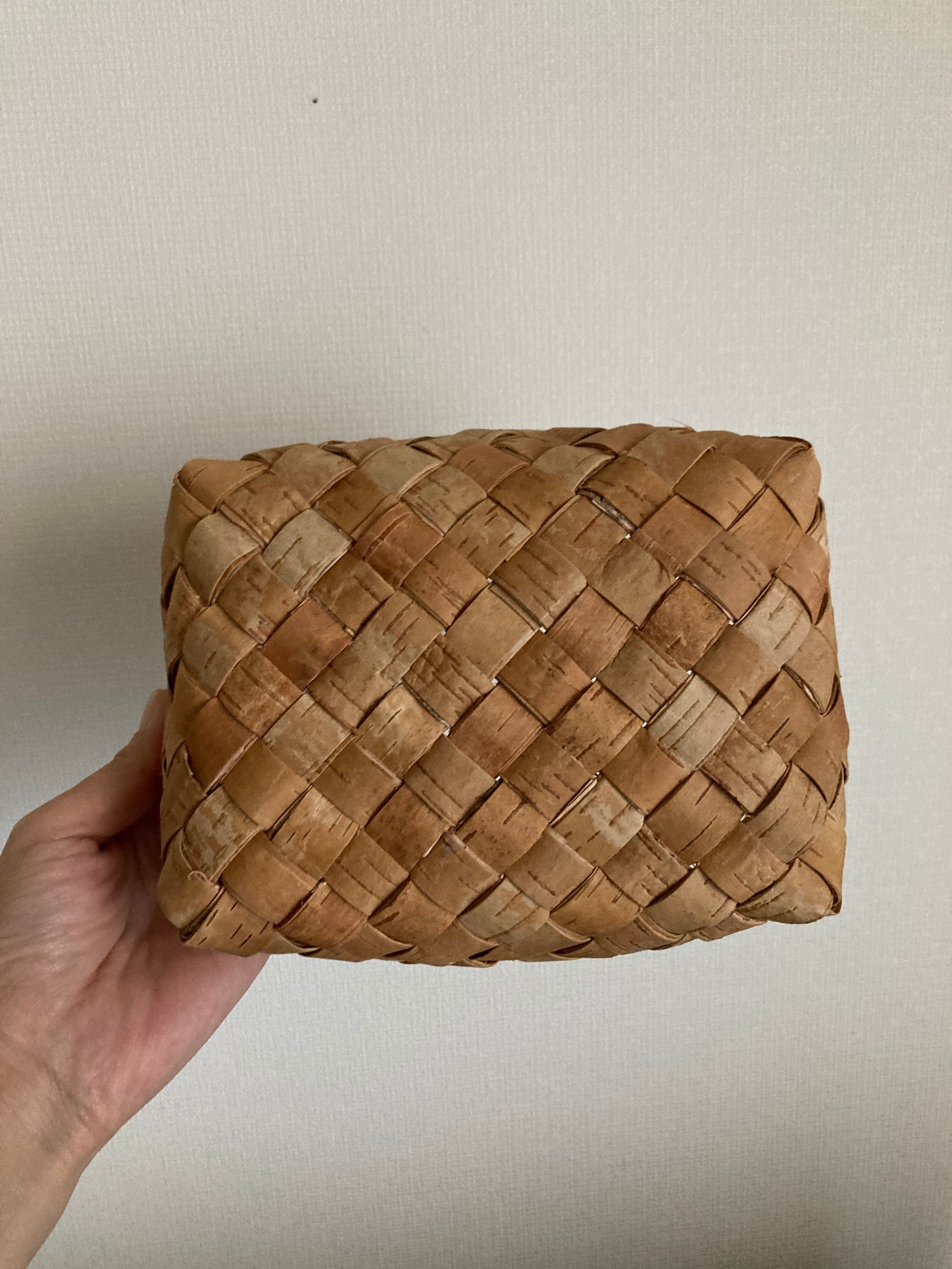 しっかりとした白樺の樹皮で編まれたシンプルな楕円型のかご♫