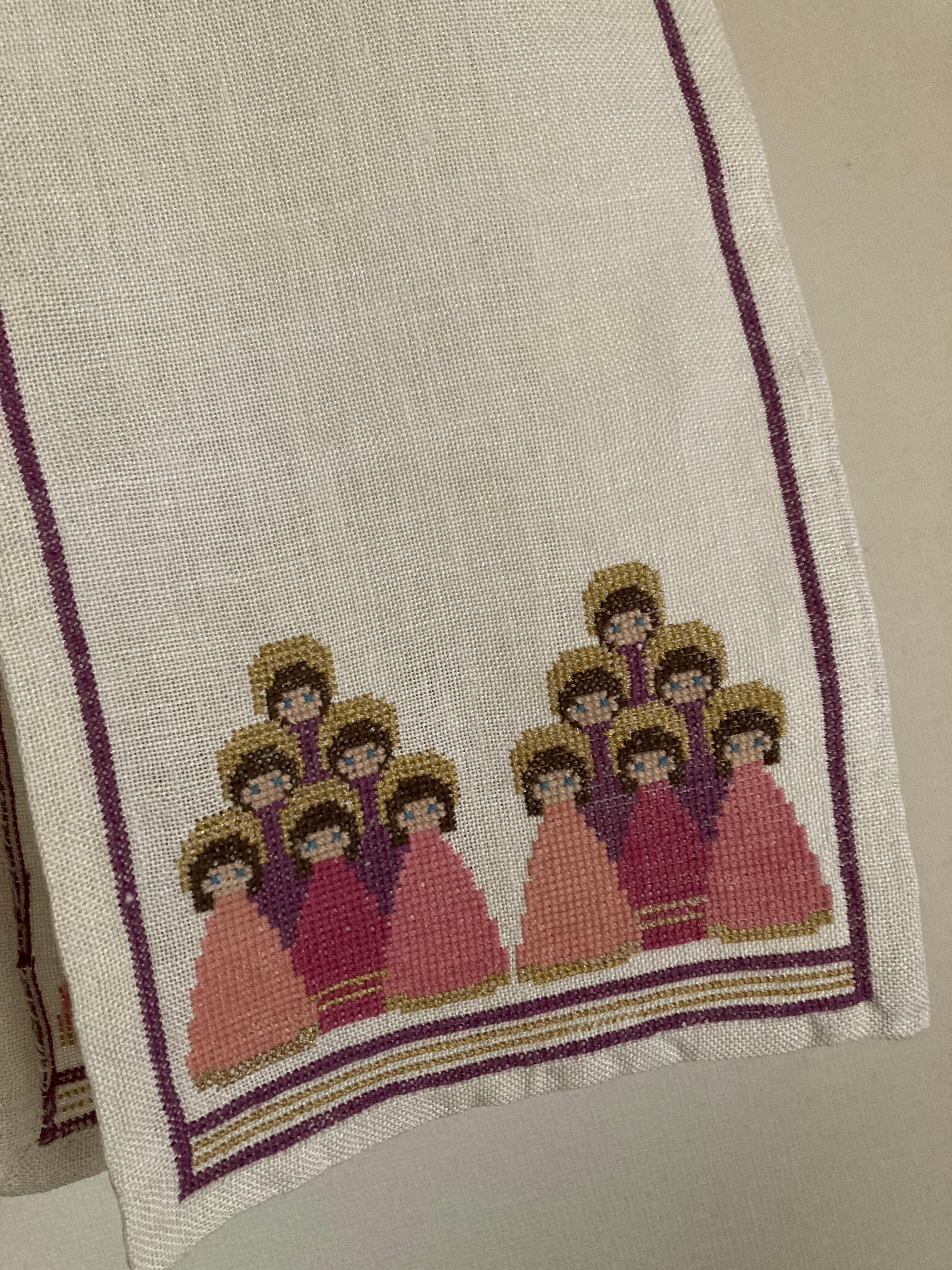 北欧 天使の刺繍のリネンロングクロス ヴィンテージ ♫天使のオーナメント付き♫