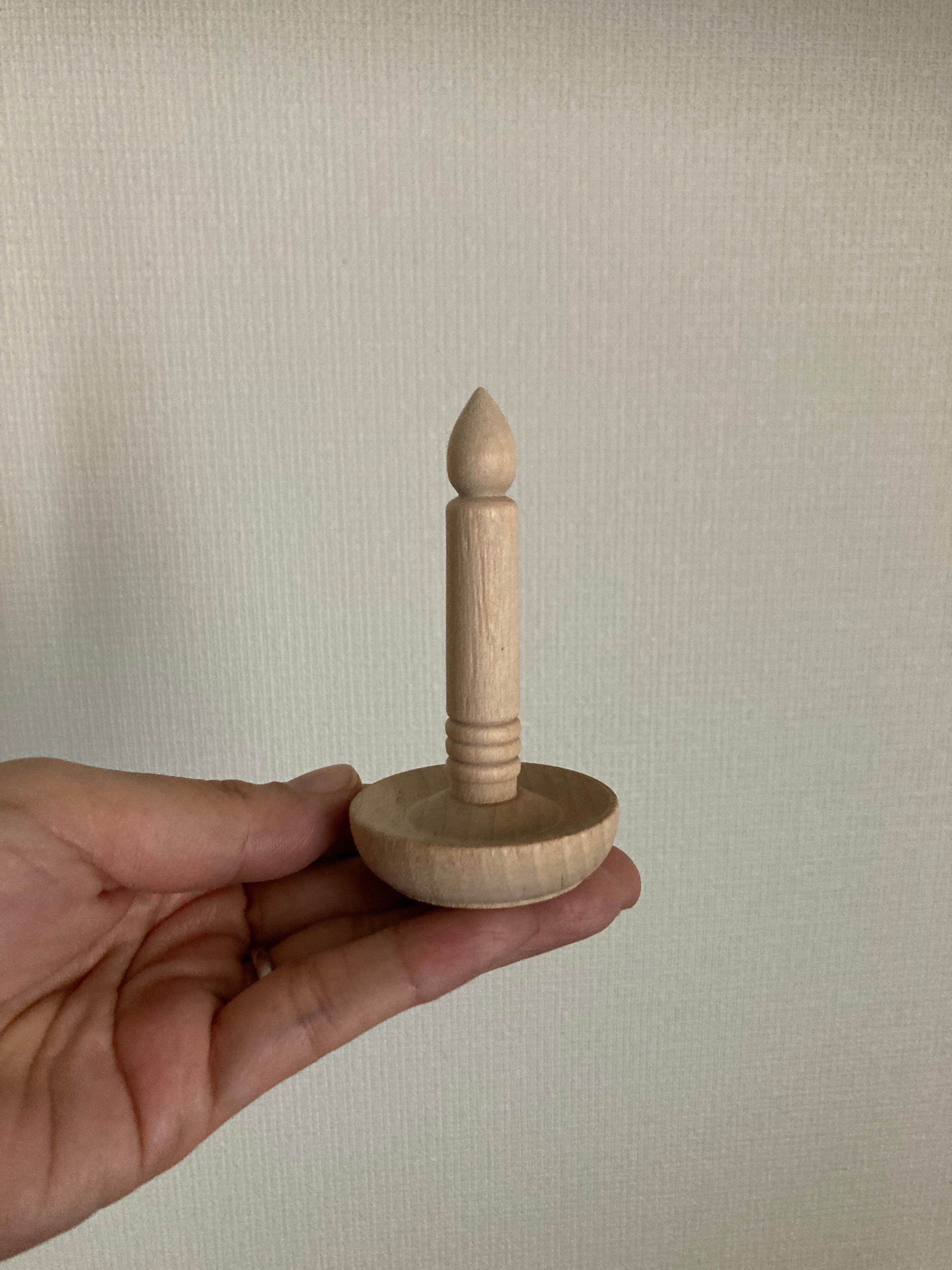 カナダの木工さんにオーダーした小さなキャンドルと受け皿のセットになります。