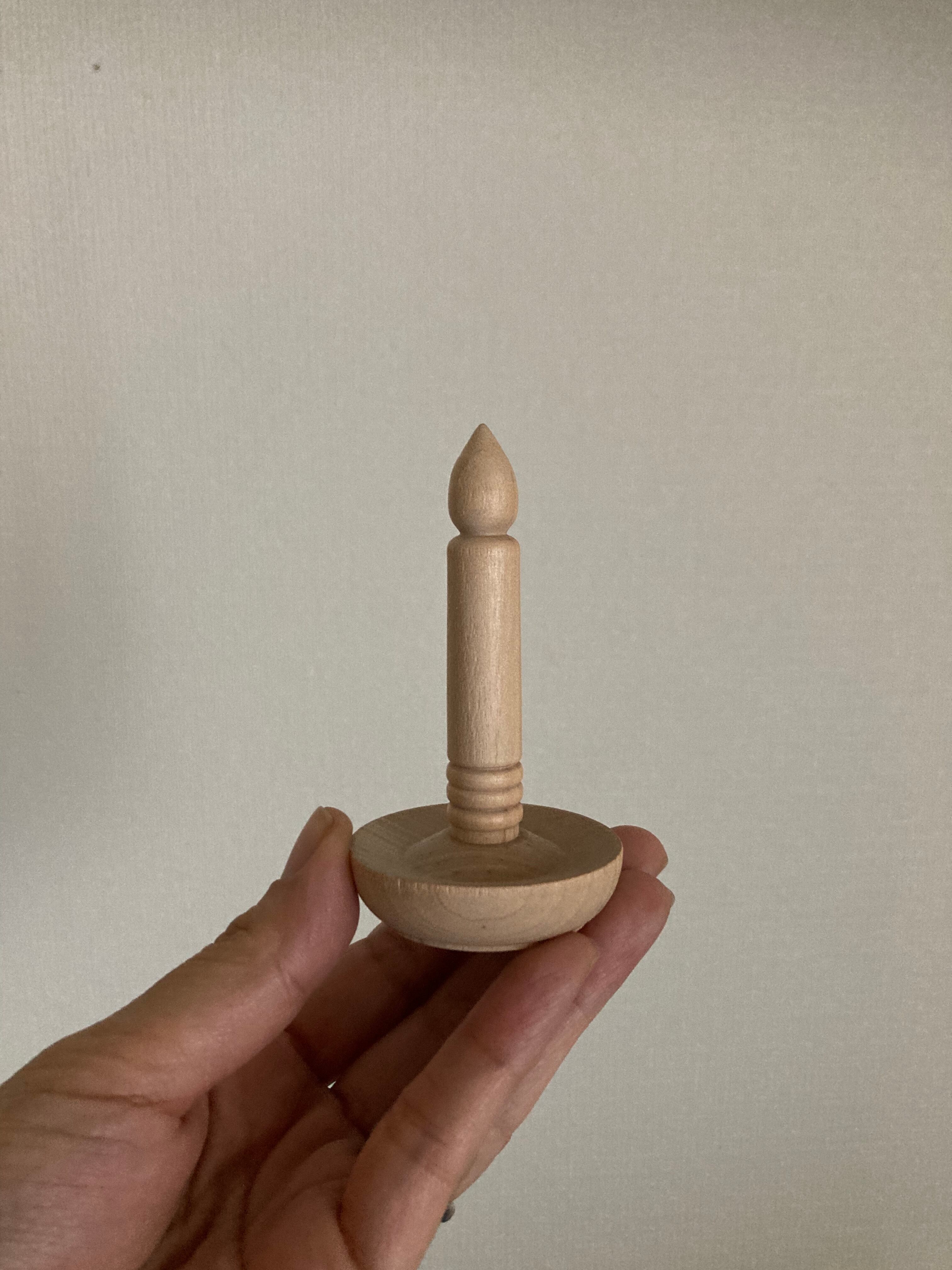 カナダの木工さんにオーダーした小さなキャンドルと受け皿のセットになります。