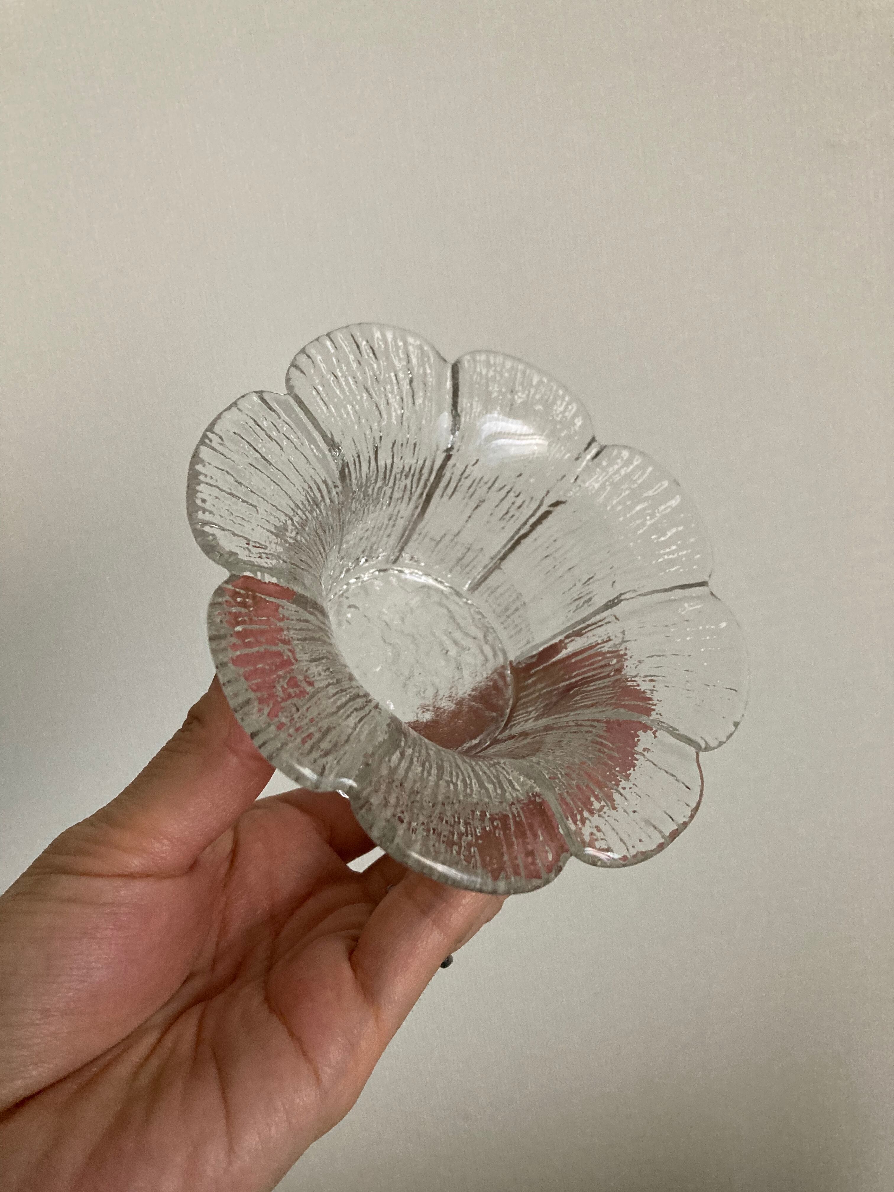 Teralehtiシリーズのガラスのキャンドルホルダーです。Teralehtiとは花びらの意味。その名の通り、お花がパッと開いたようなデザインが可愛らしいタイプ。