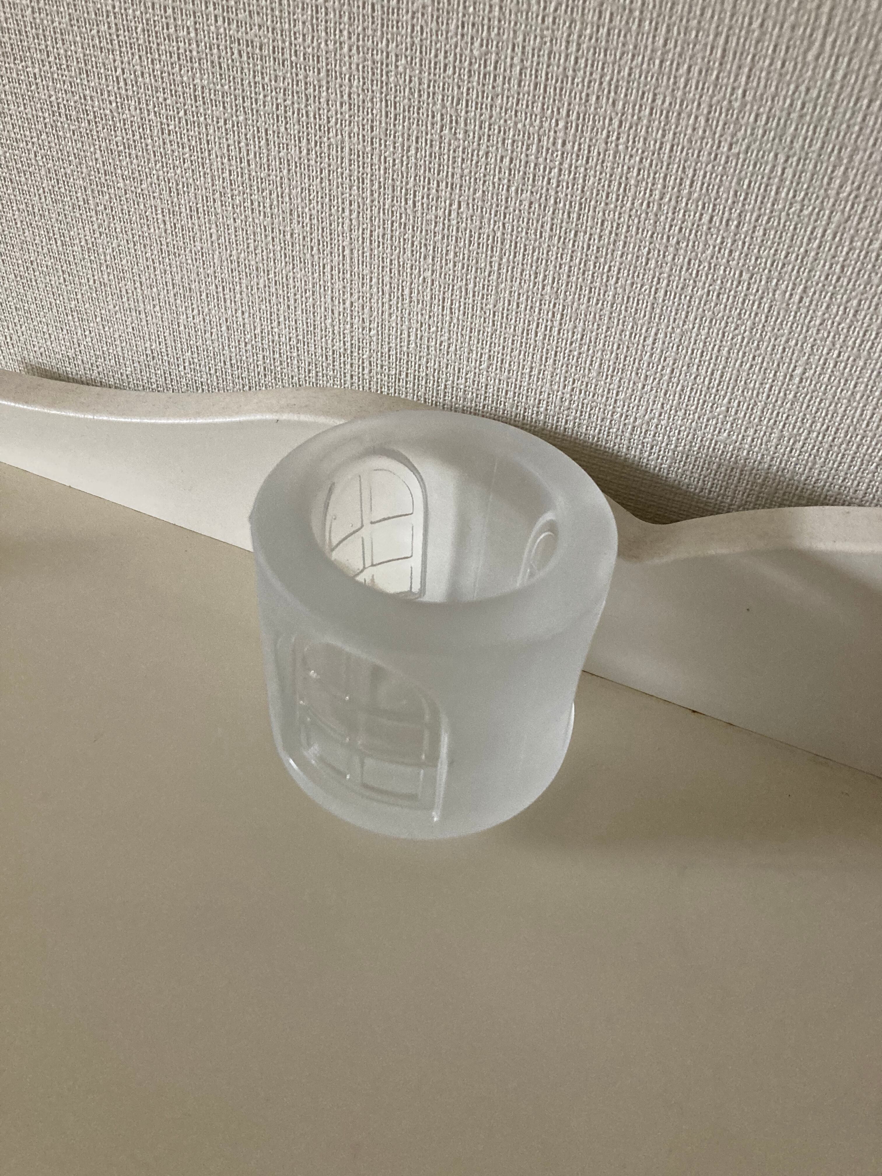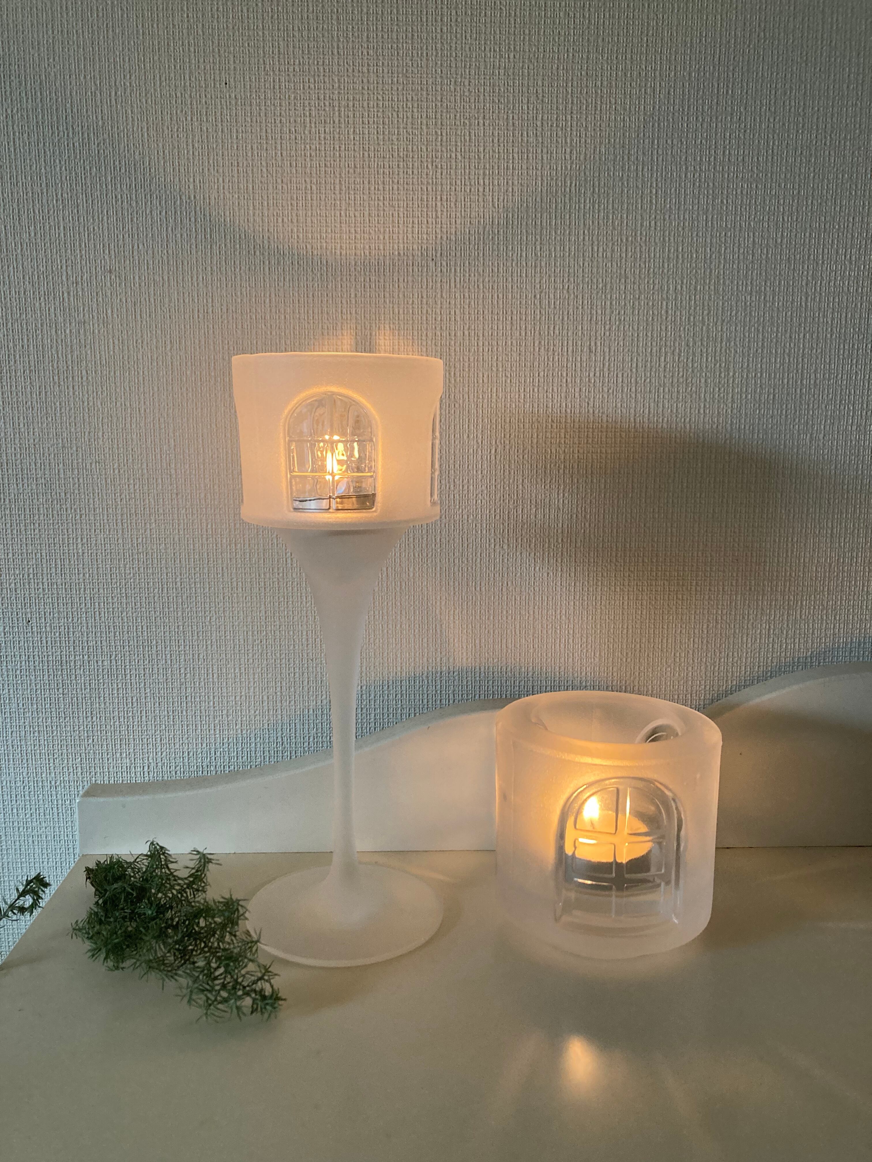 フロストガラスと、窓のクリアガラスの組み合わせが素敵なキャンドルホルダーです。