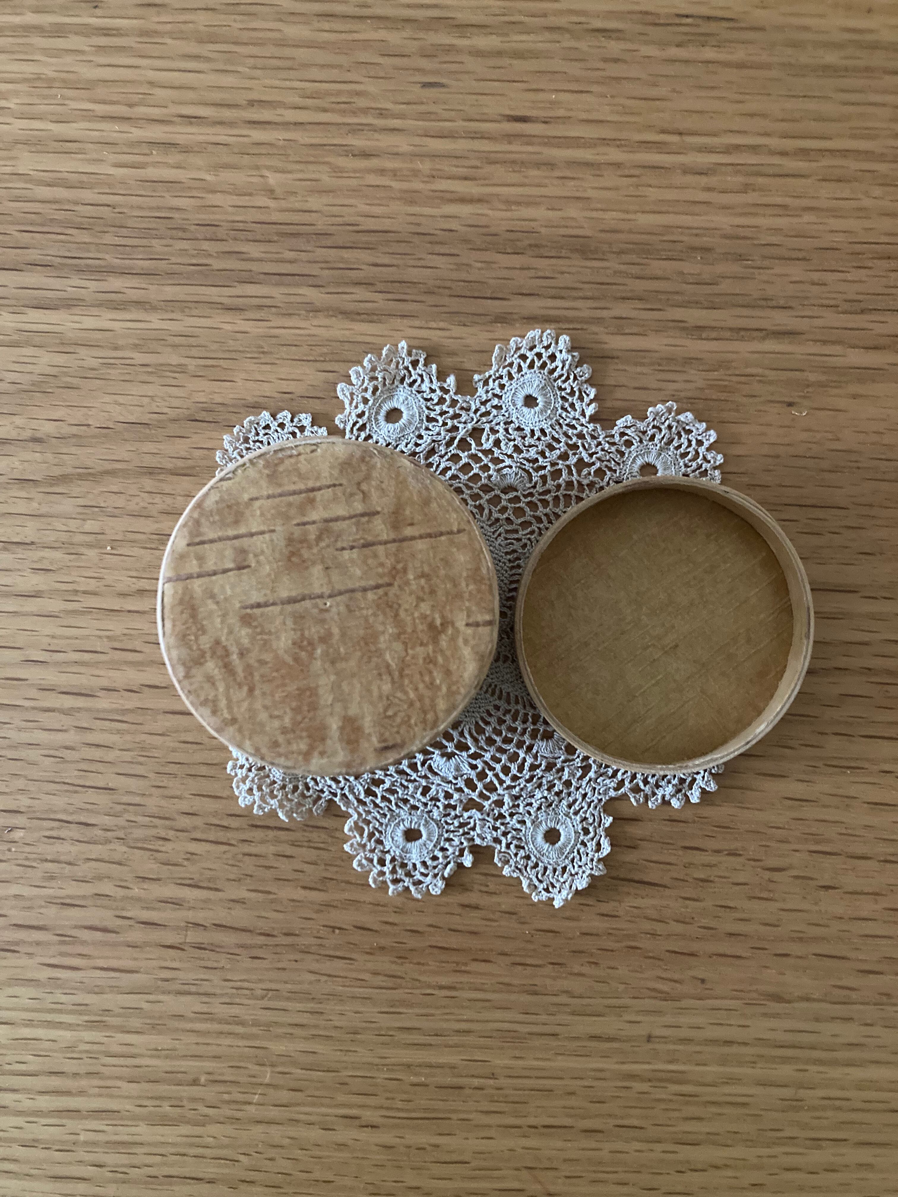 ロシアの白樺細工、ベレスタの型押し丸型ボックスになります。