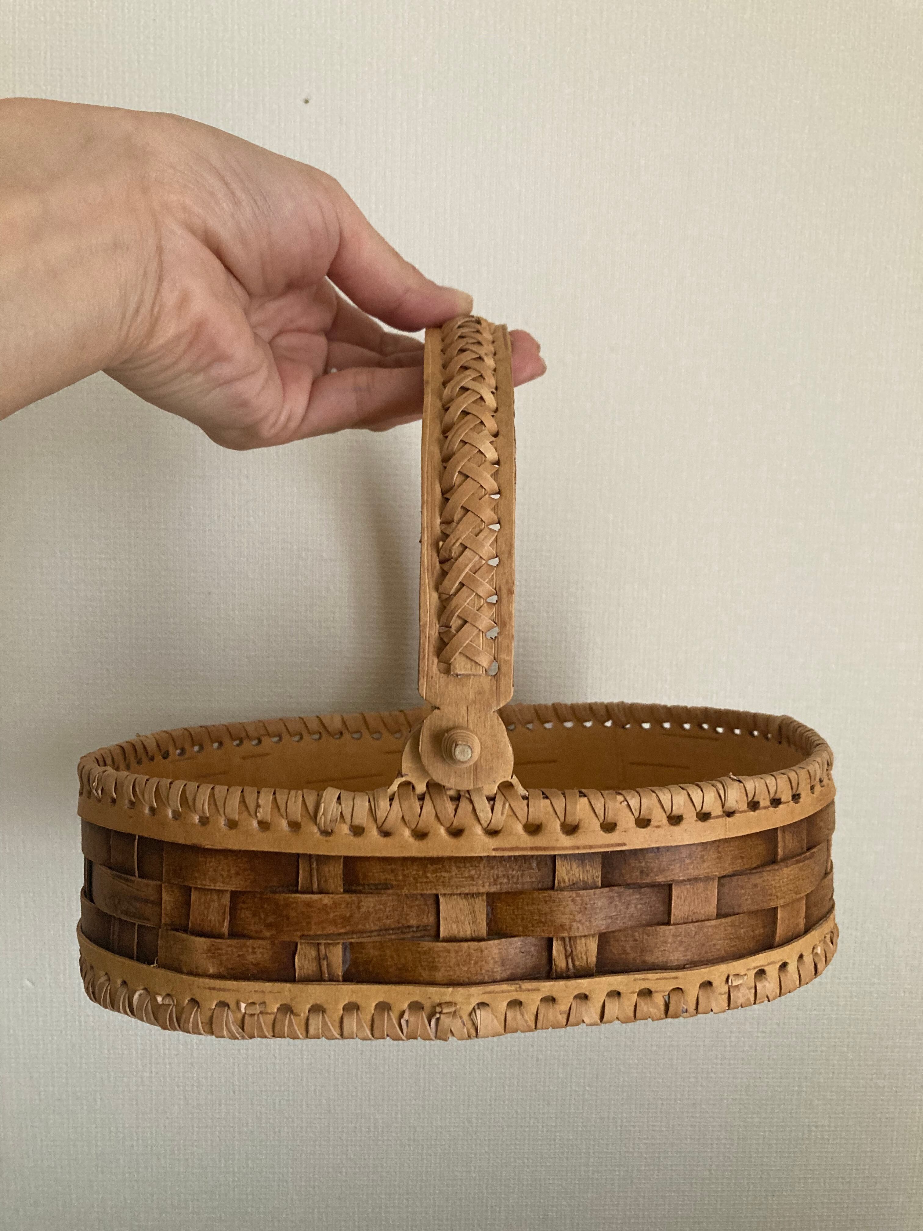 ロシア 白樺細工 ベレスタ 持ち手付きバスケット ドライフラワー付き♫