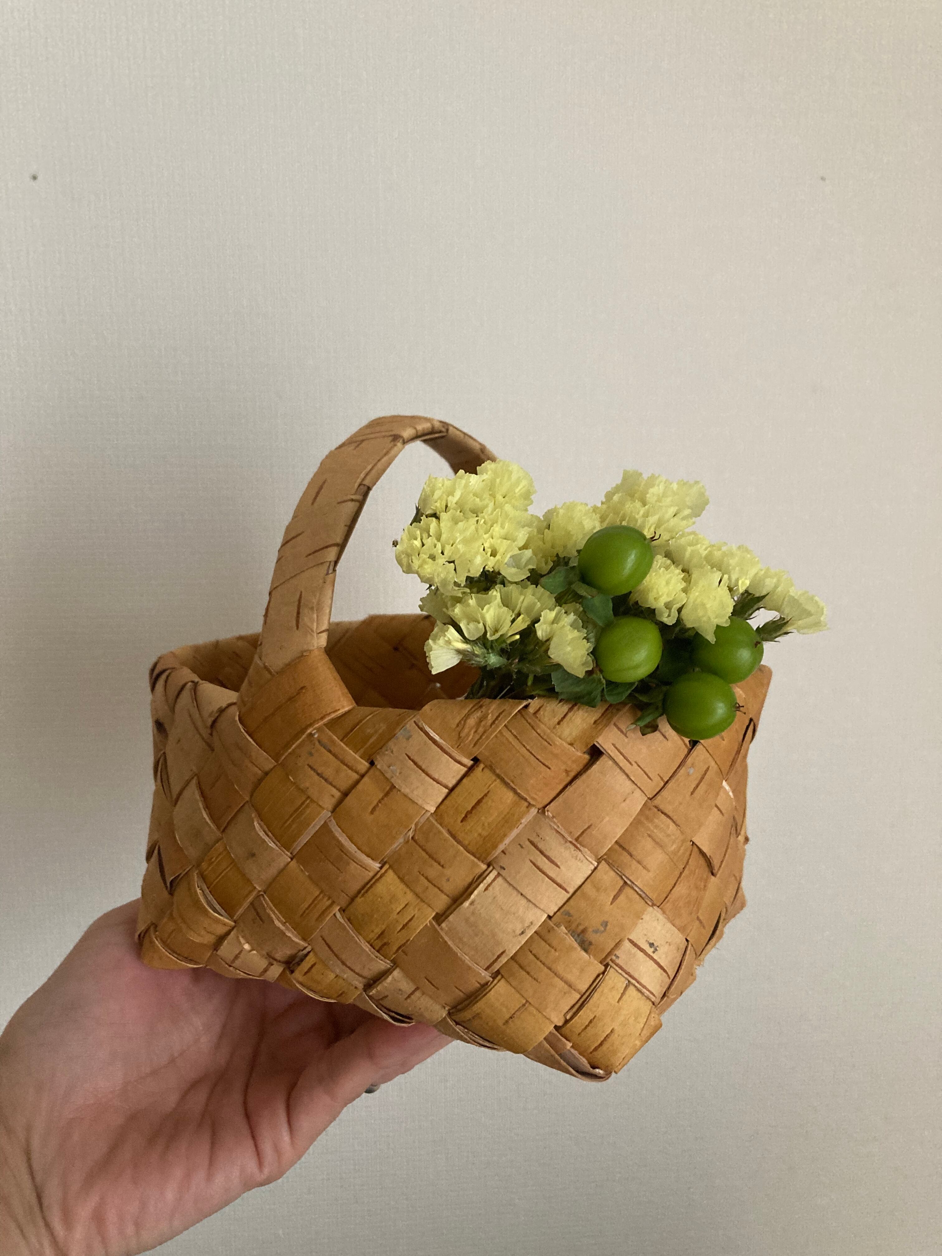 ワンハンドルが可愛いらしい、白樺のバスケットです。