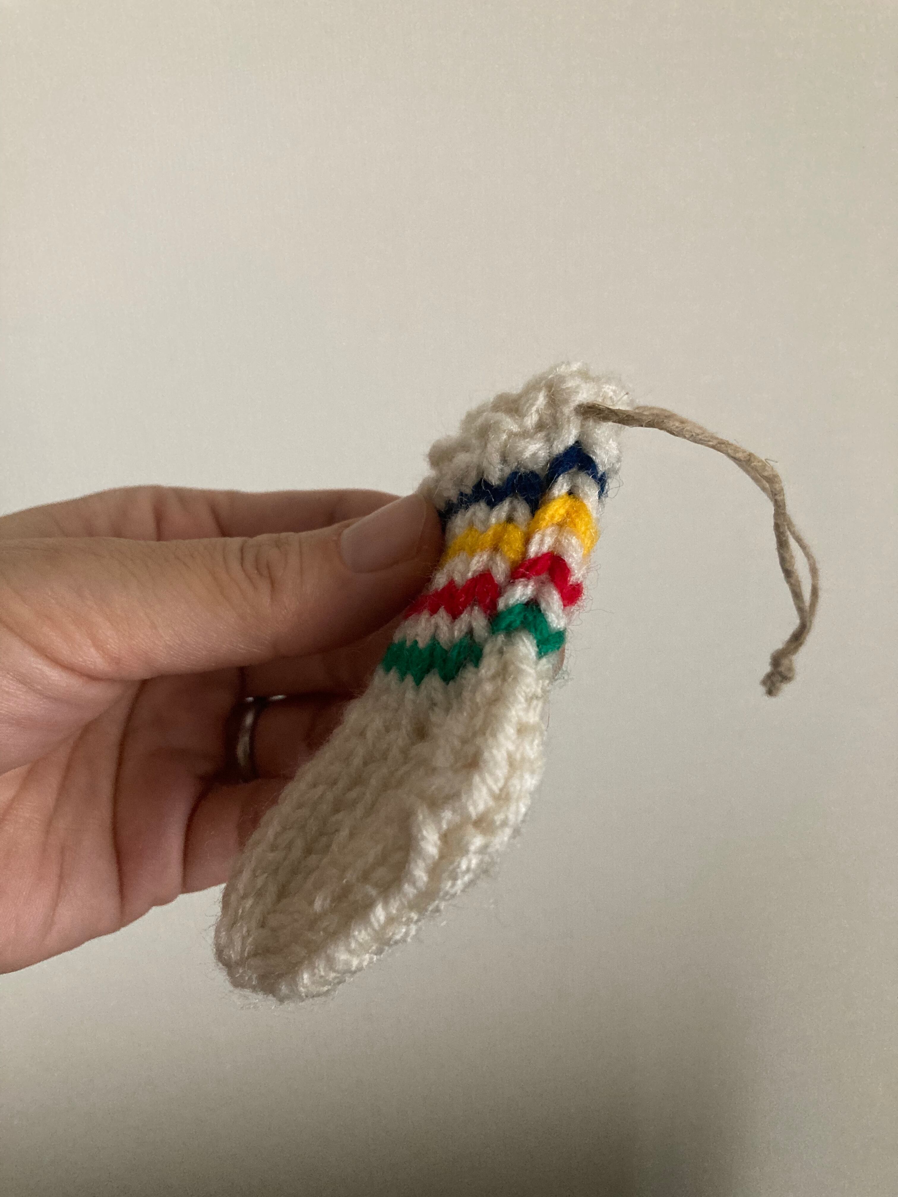 カナダのニット作家さん作のウールの靴下のオーナメントになります。