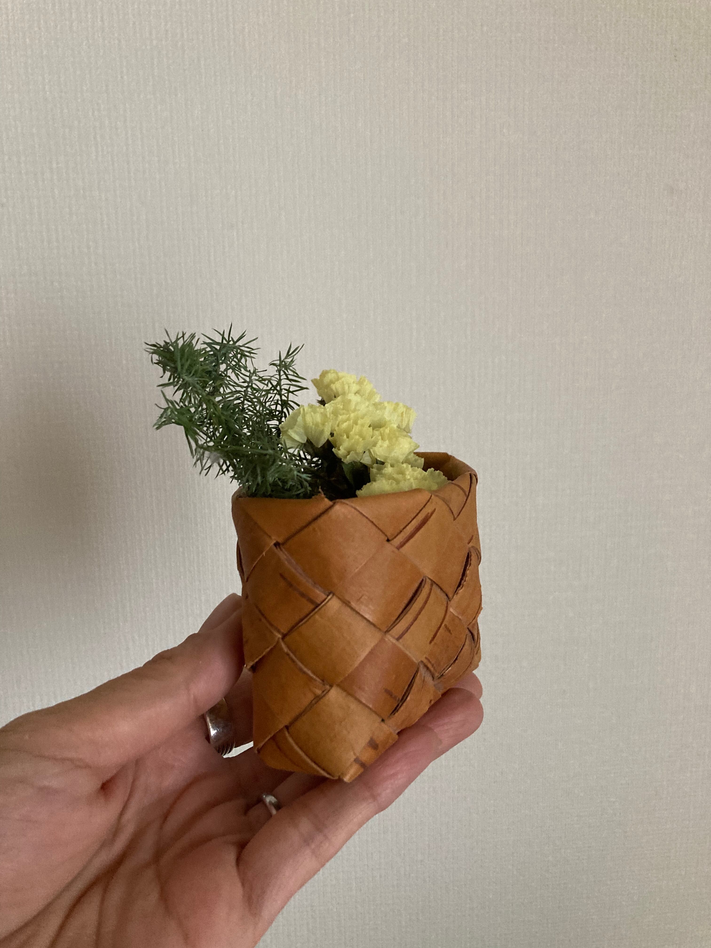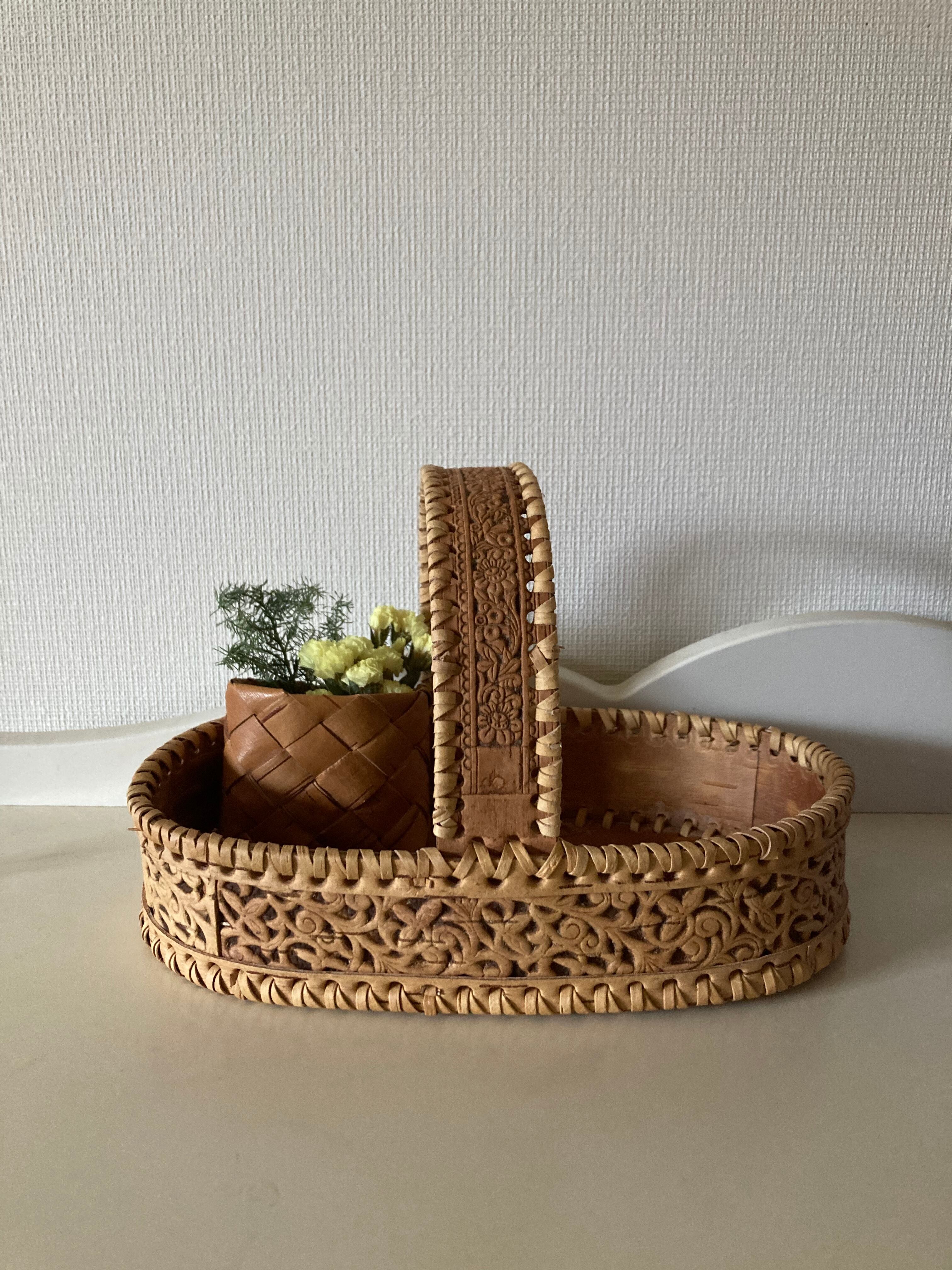 ロシア 白樺の小さなめのかご/ドライフラワー付き