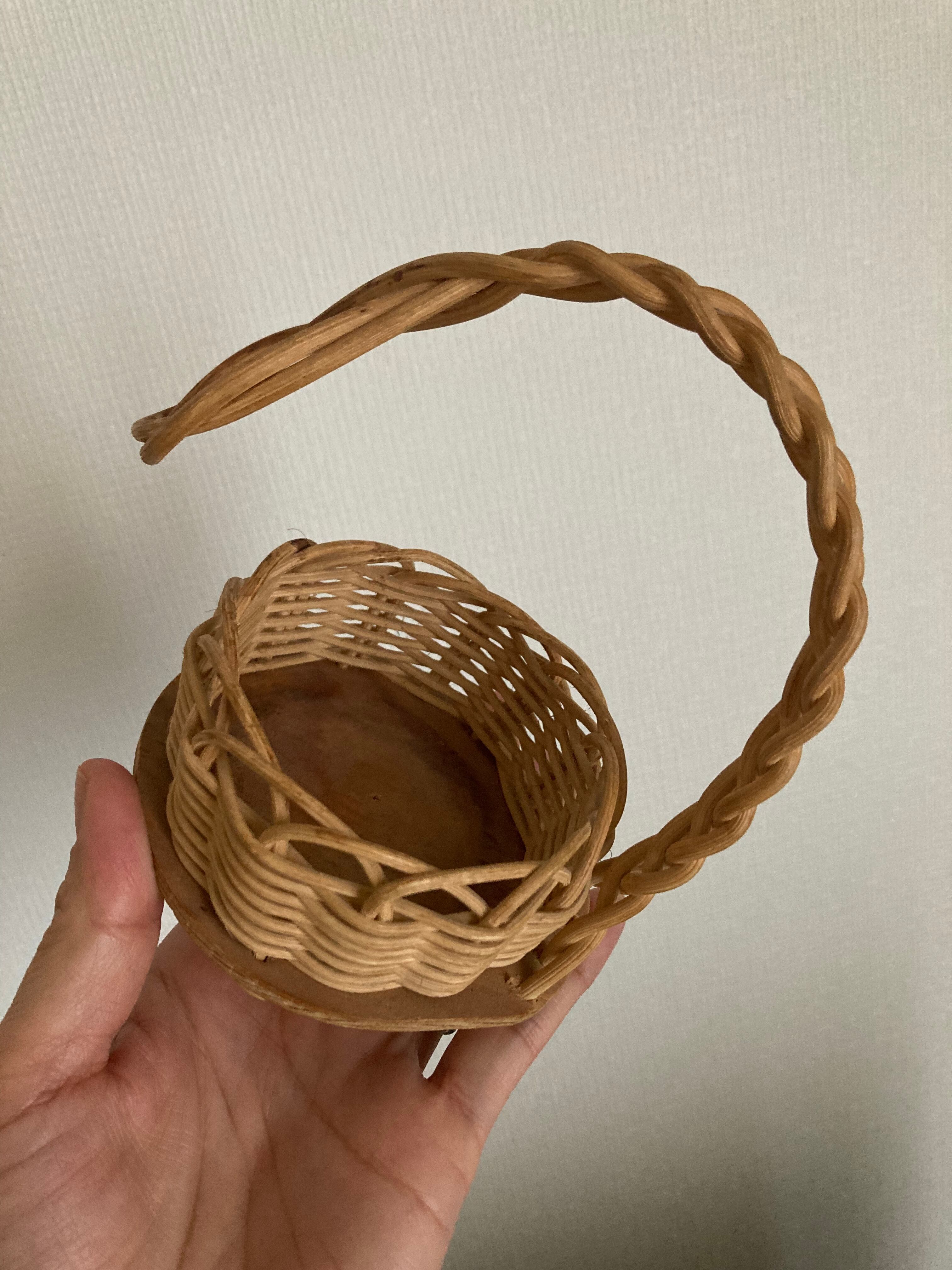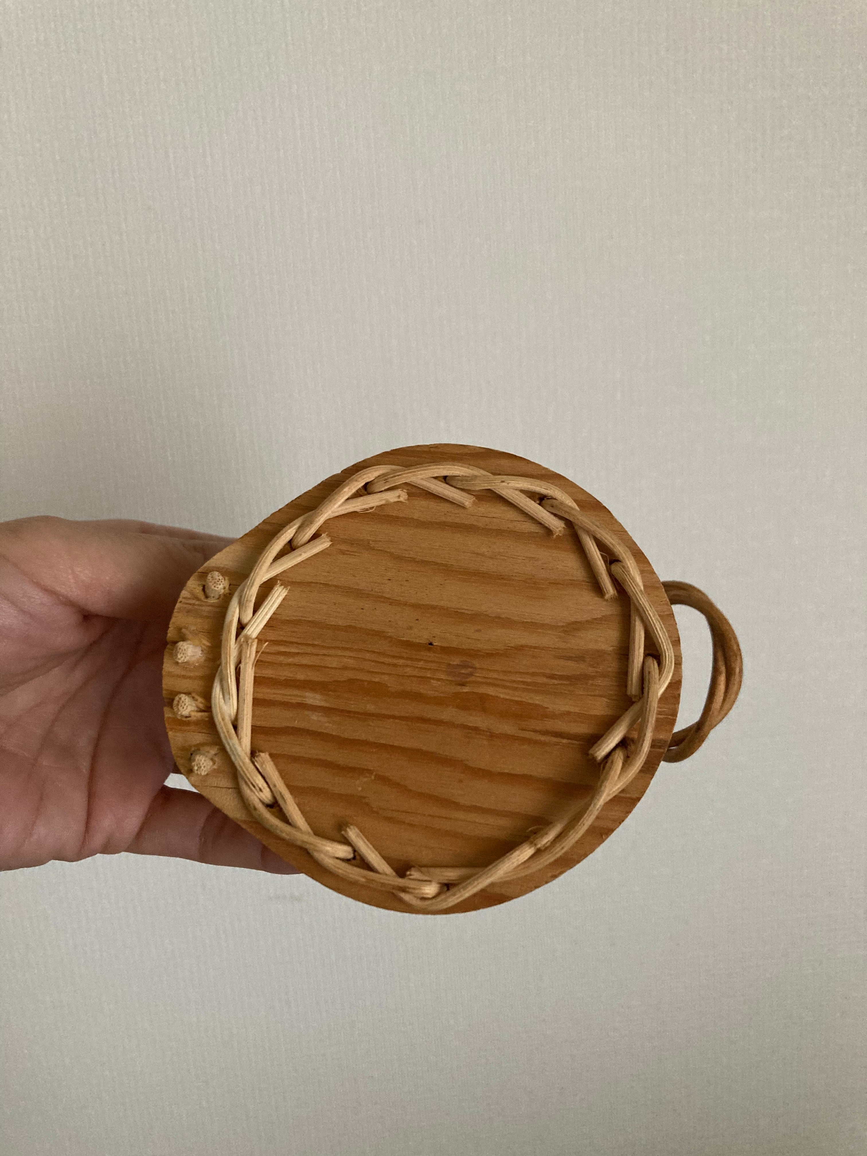 北欧 籐とチークのボトルホルダー兼小物入れ ヴィンテージ