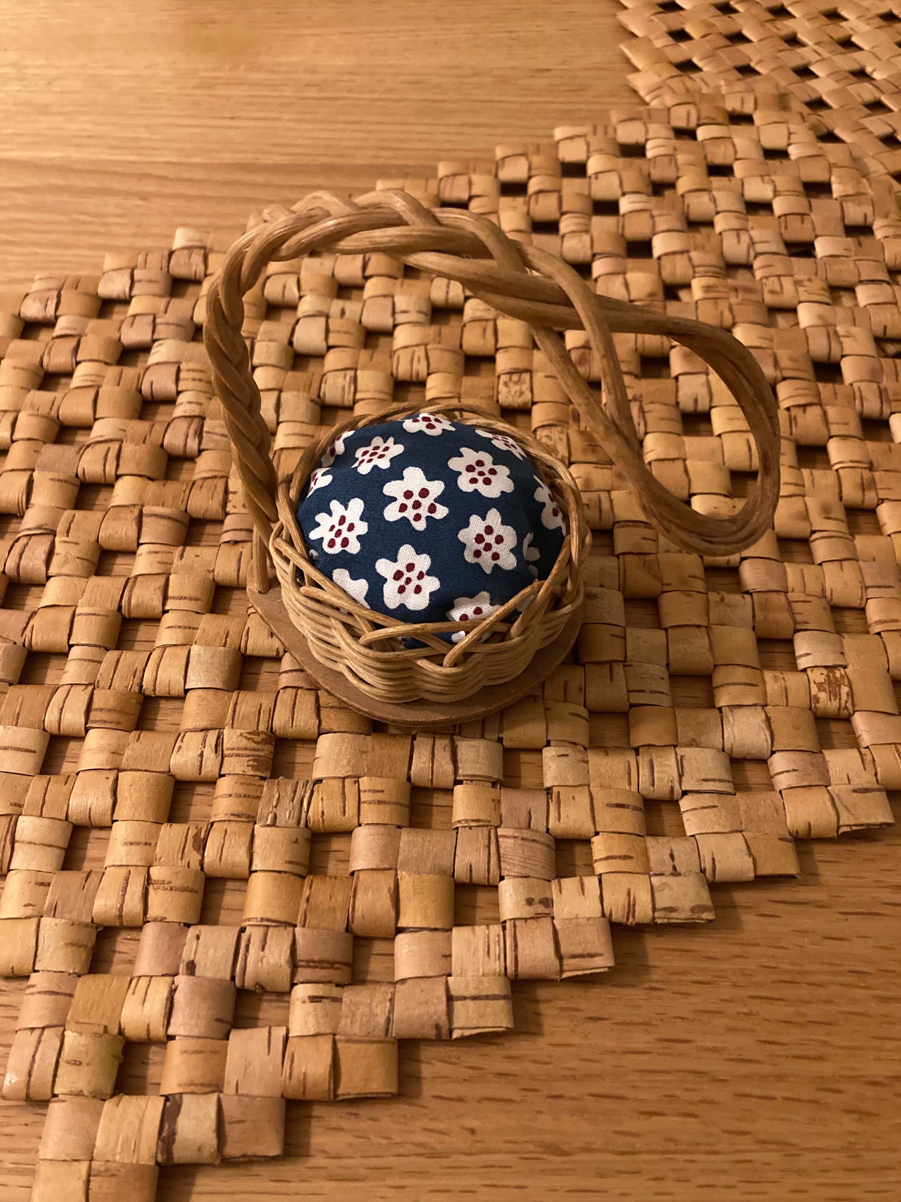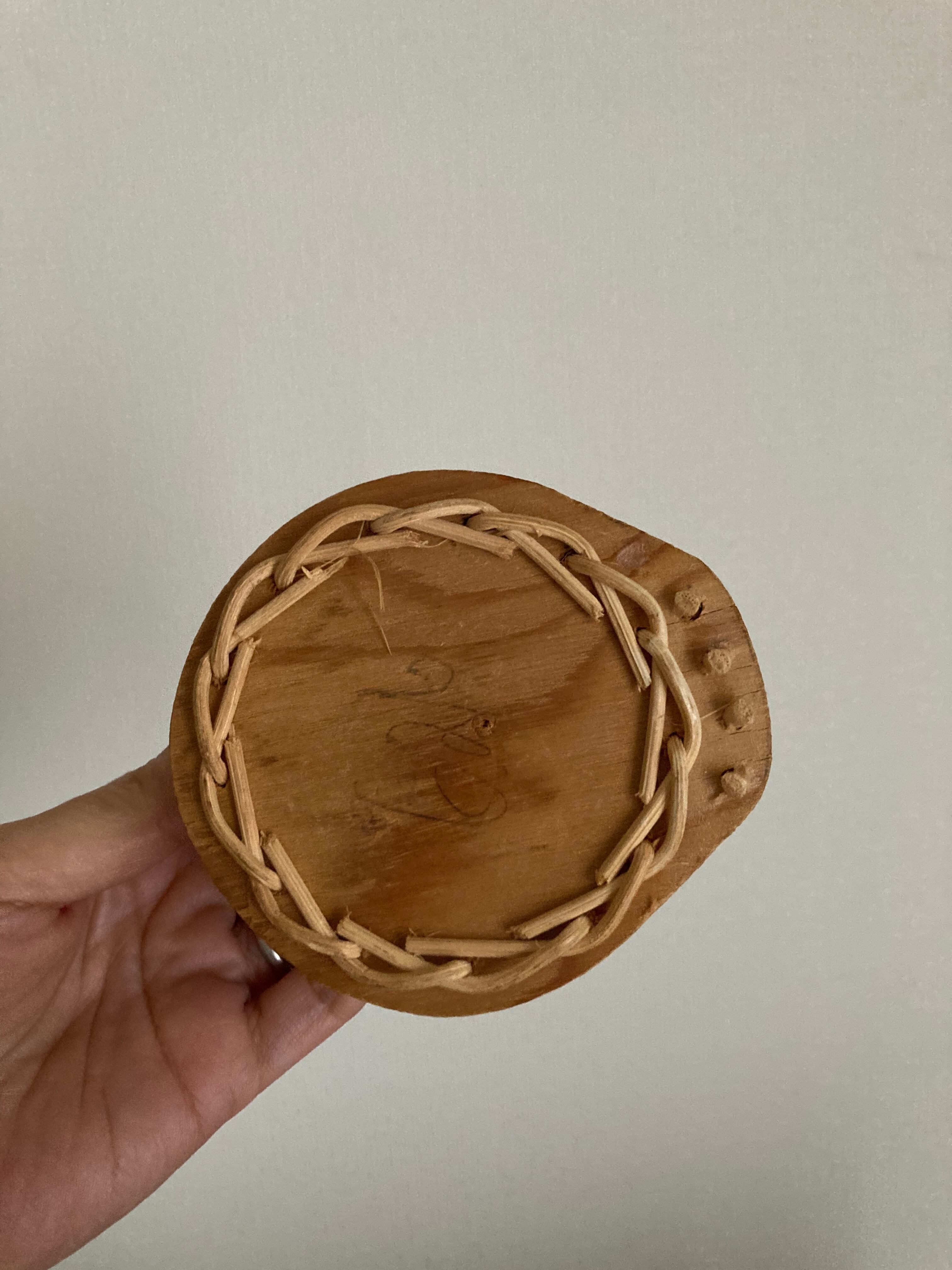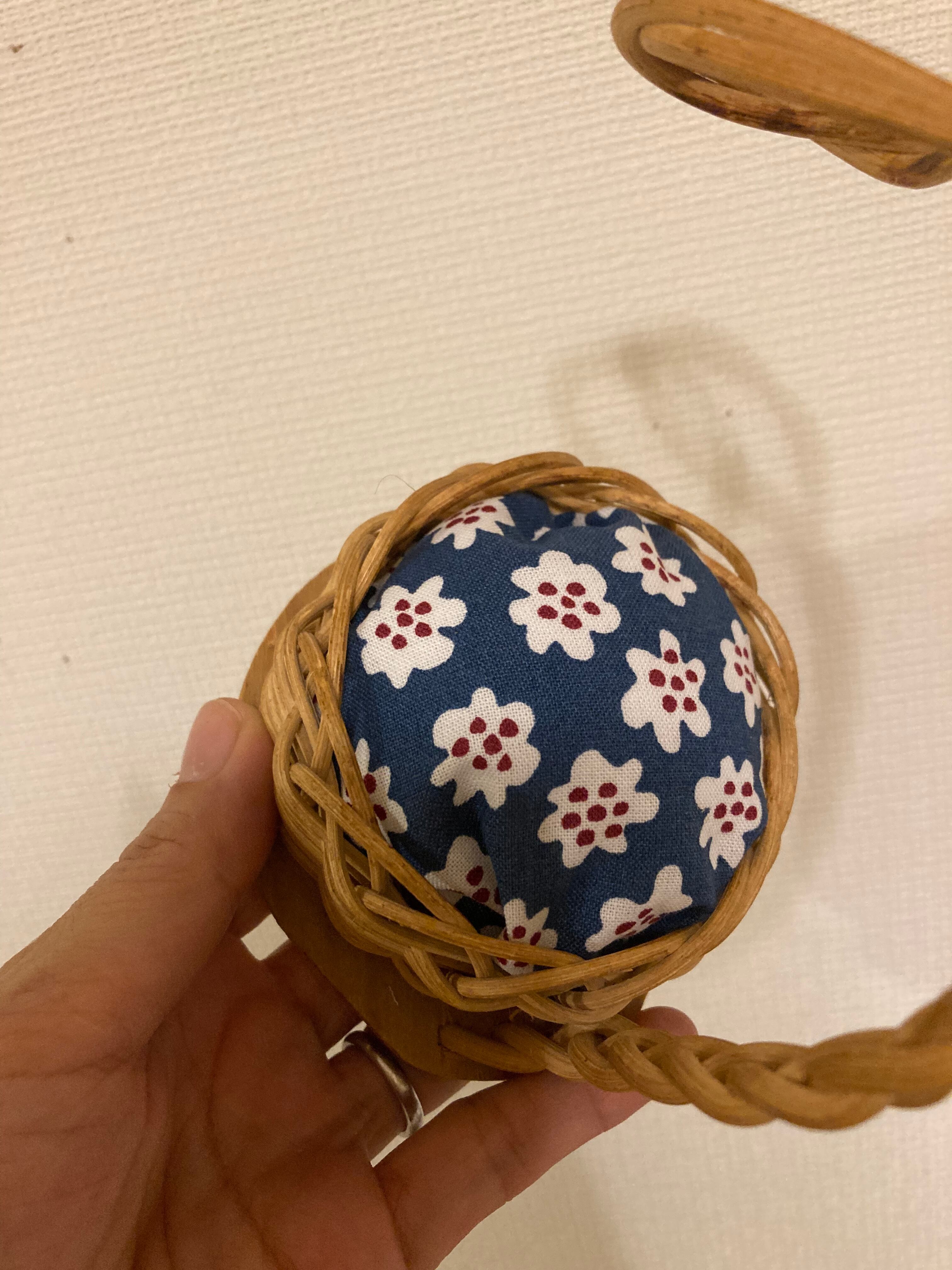 ♫マリメッコ プケッティの生地付き♫北欧 籐とチークのボトルホルダー兼小物入れ ヴィンテージ