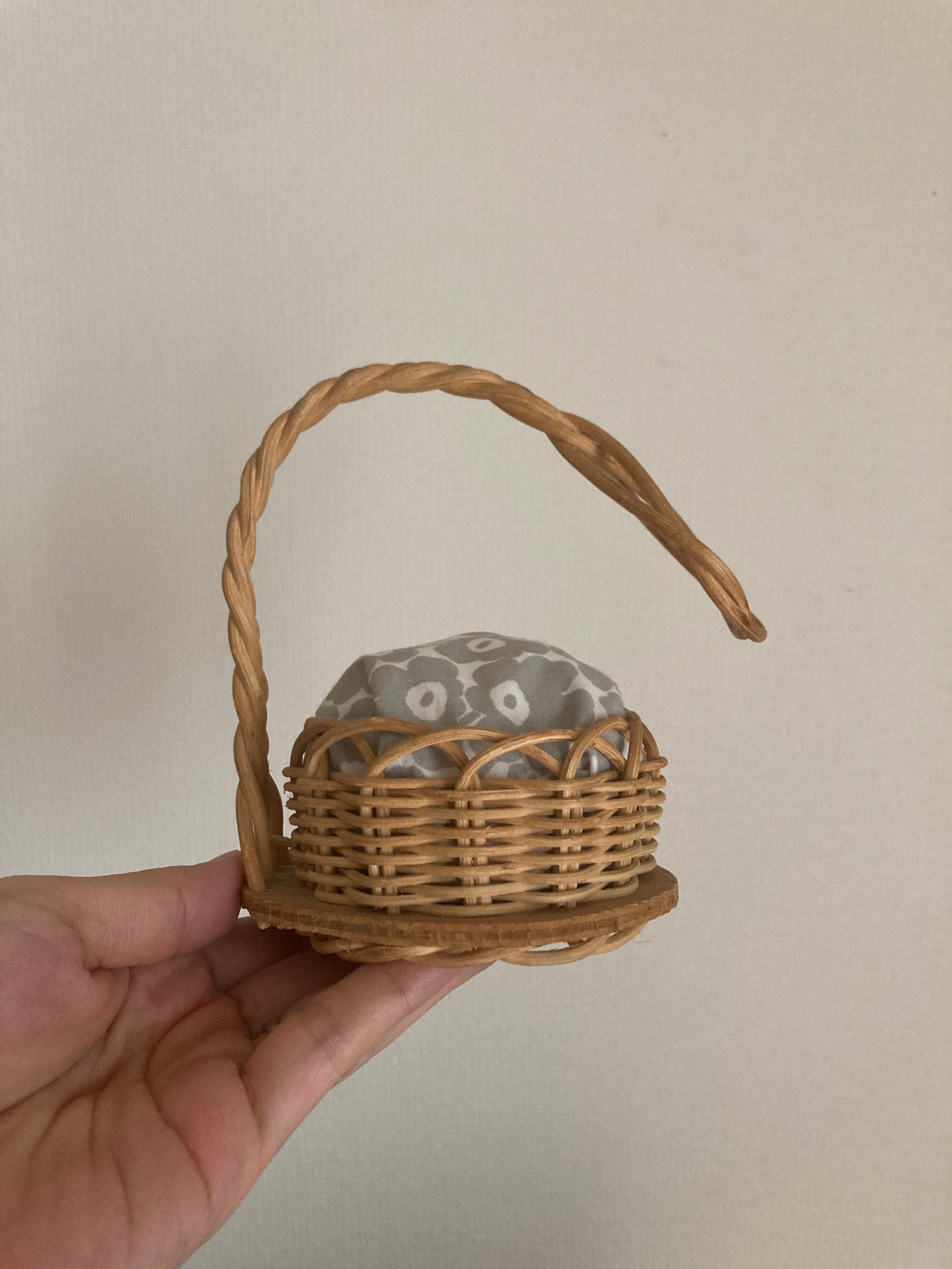 ♫マリメッコの生地付き♫北欧 籐とチークのボトルホルダー兼小物入れ ヴィンテージ