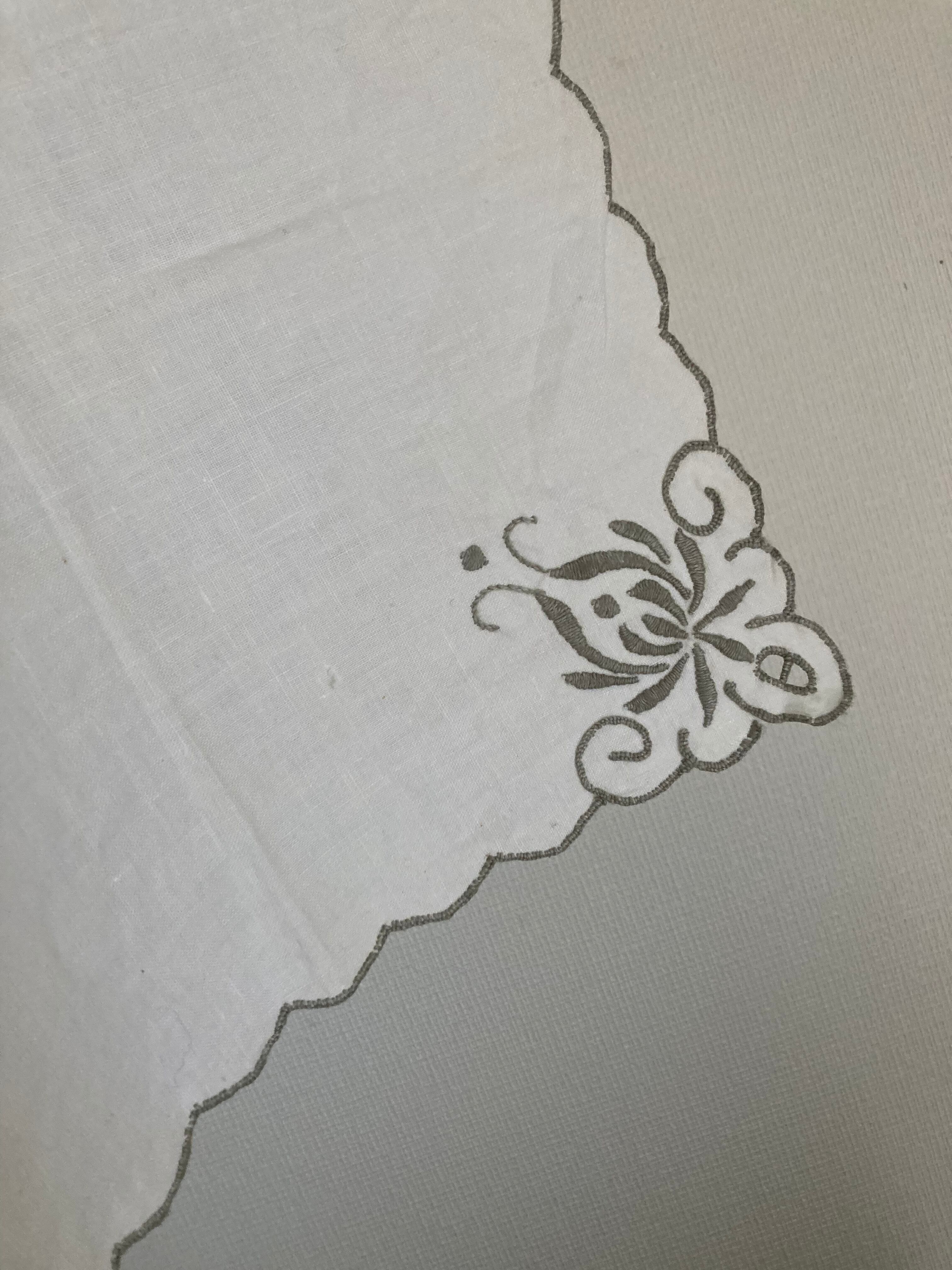 白のコットン生地に、グレーの刺繍が素敵なクロスです♫