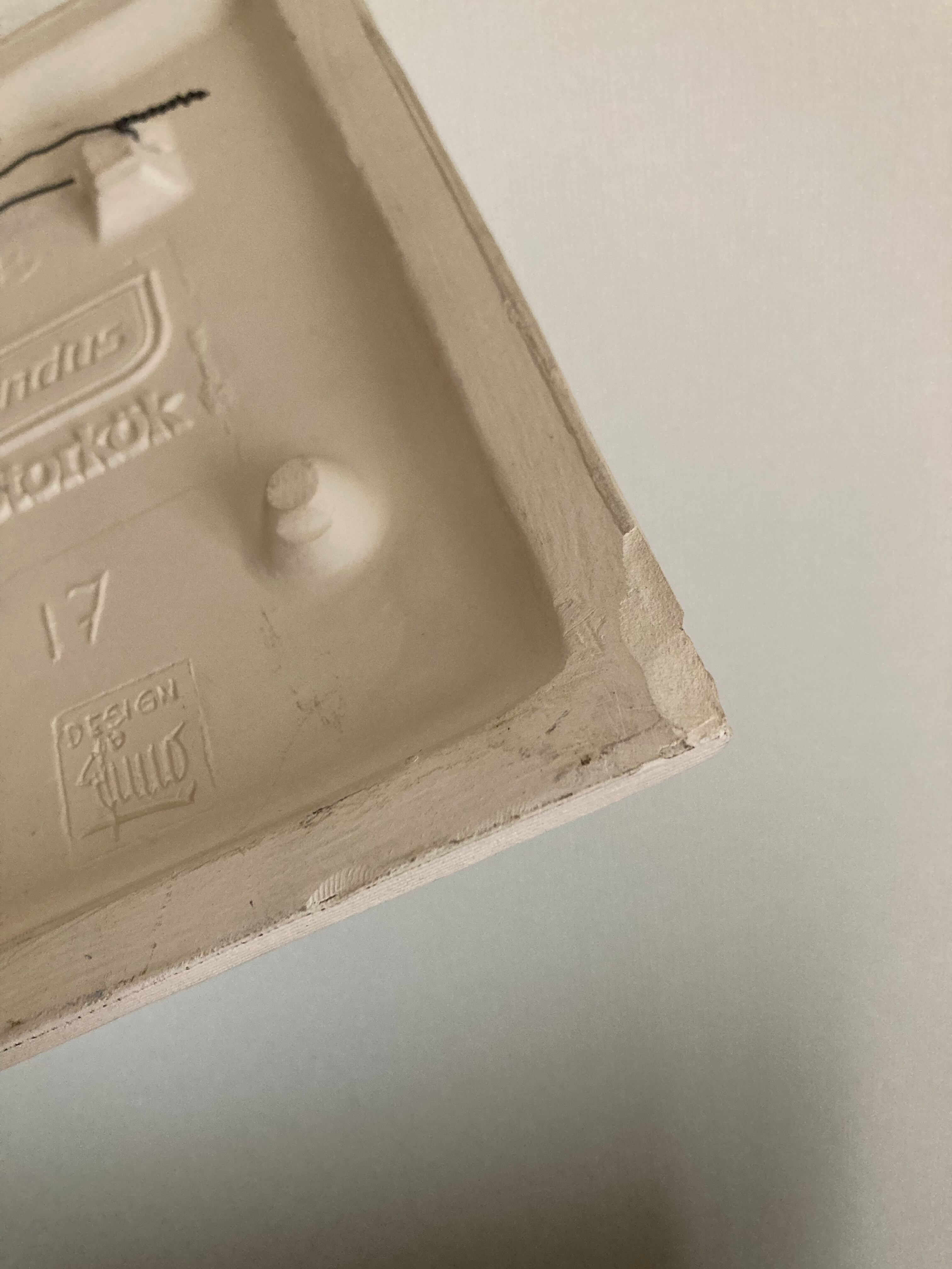 こちらはスウェーデンの食品メーカーFindusのノベルティで作られた陶板で、裏にFindusと書かれています。