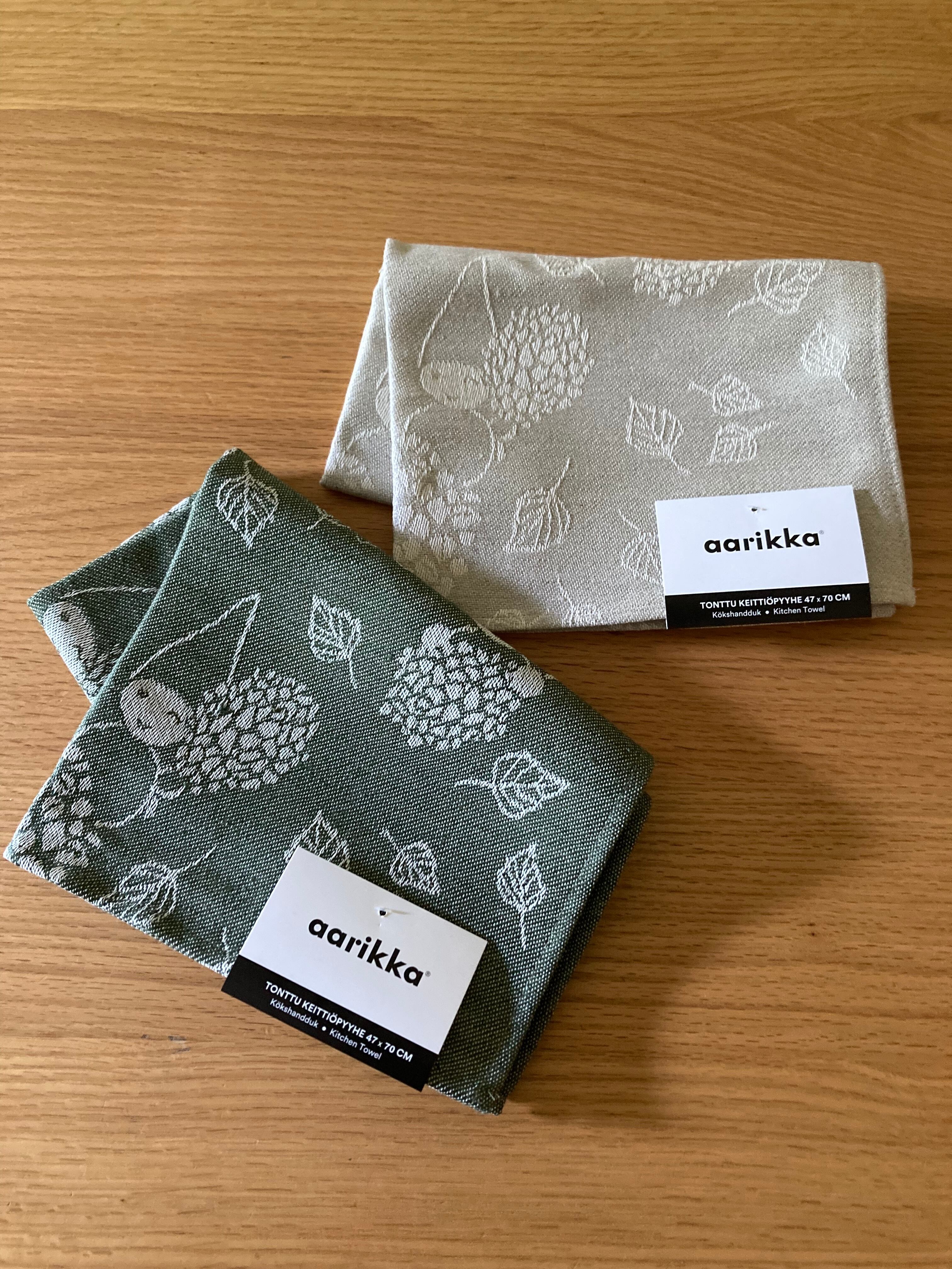 アーリッカの定番のトントゥ柄が可愛らしいキッチンタオル。