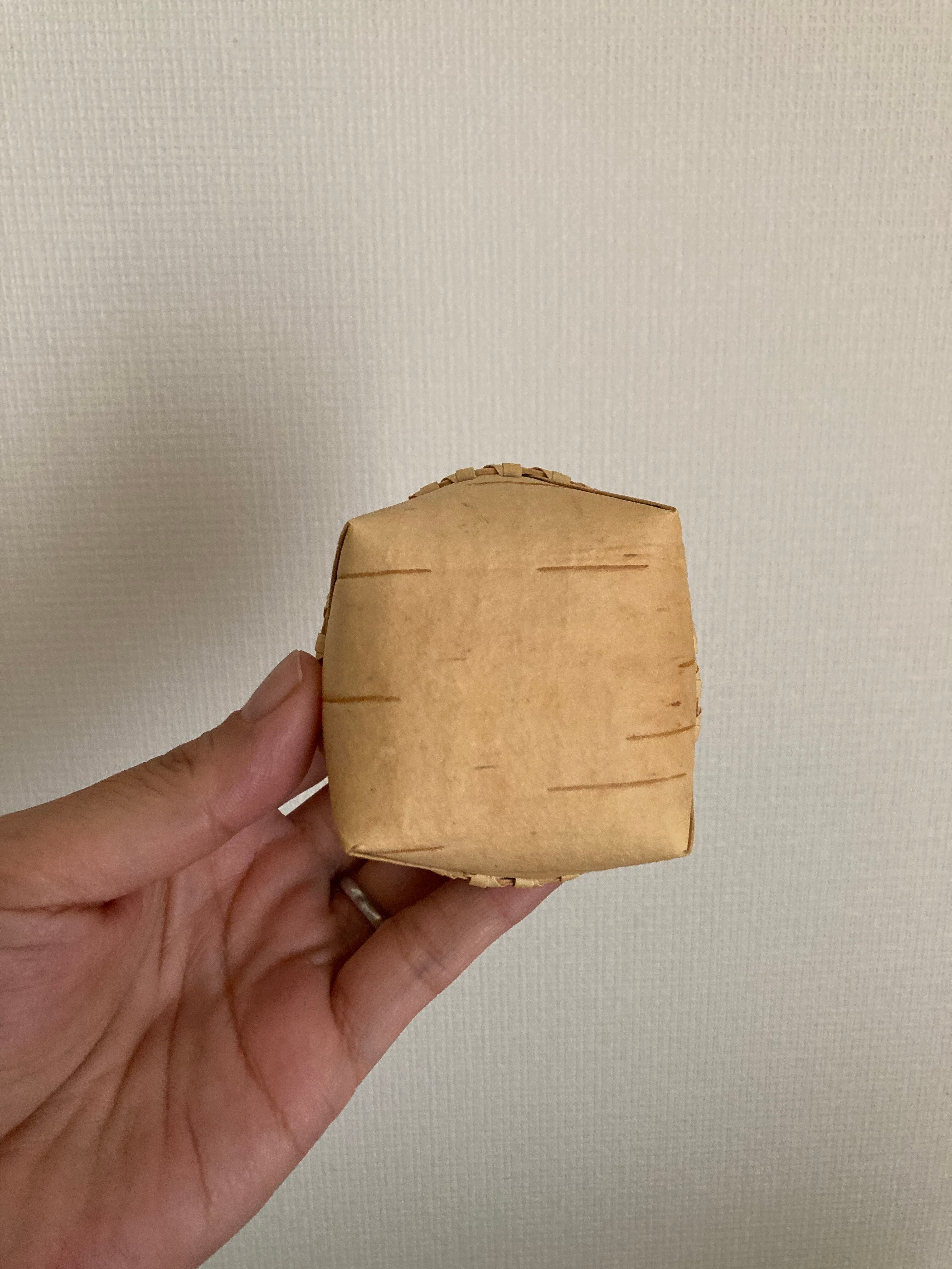 ロシアの白樺の一枚樹皮で仕上げたかごになります。