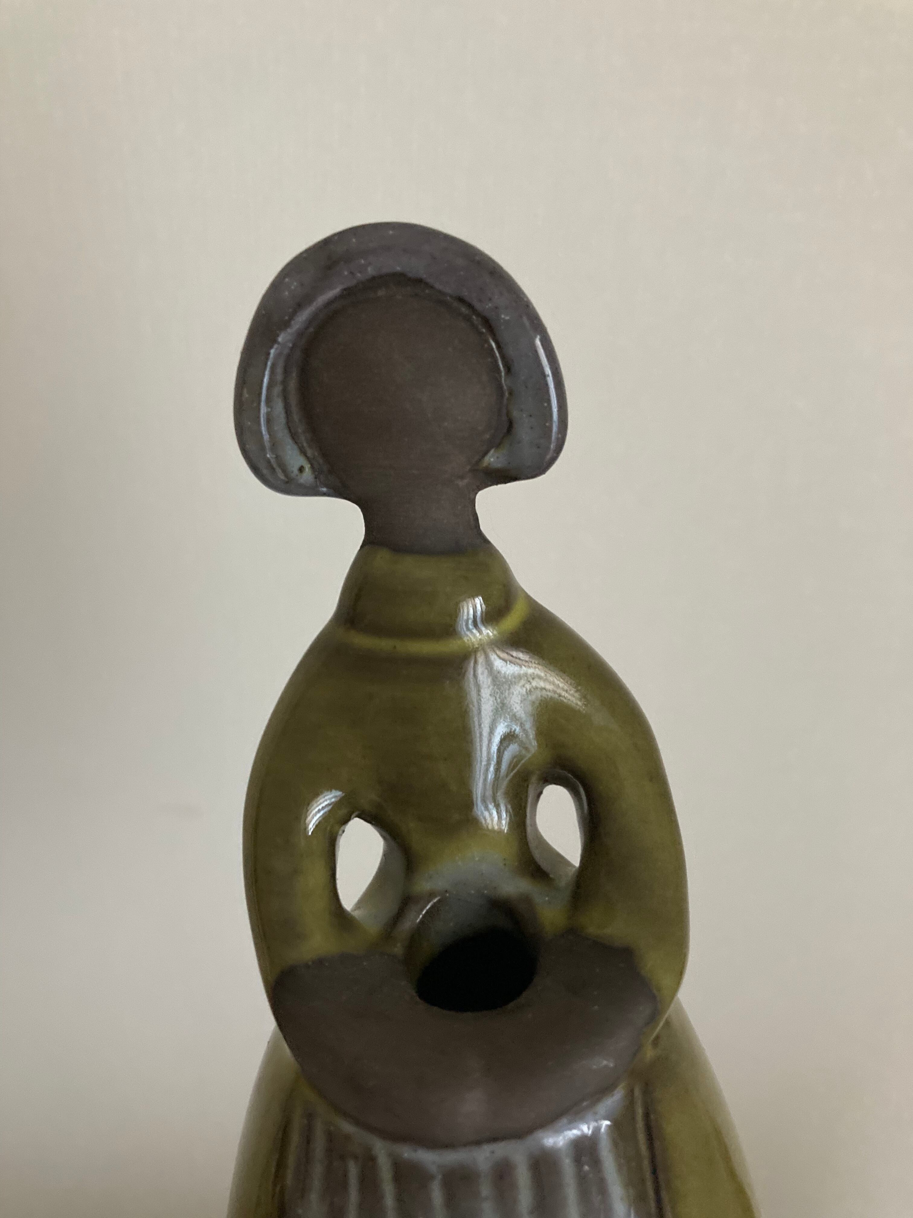 洋服の艶やかな釉薬と、顔と手の素焼きの組み合わせが素朴で可愛らしい一品。
