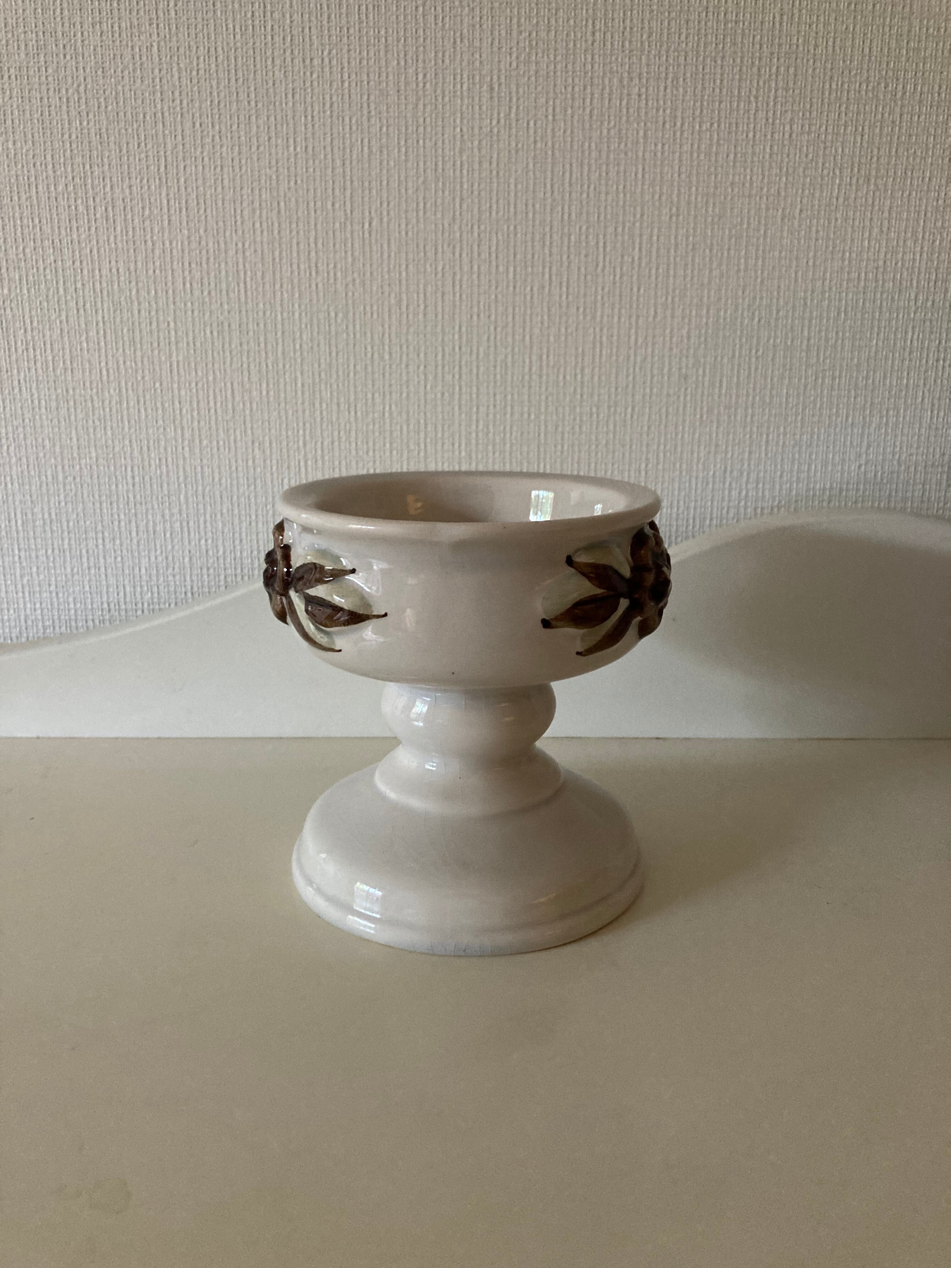優しい色合いの白に、立体的なブラウンのお花と葉っぱが素敵なキャンドルホルダー。