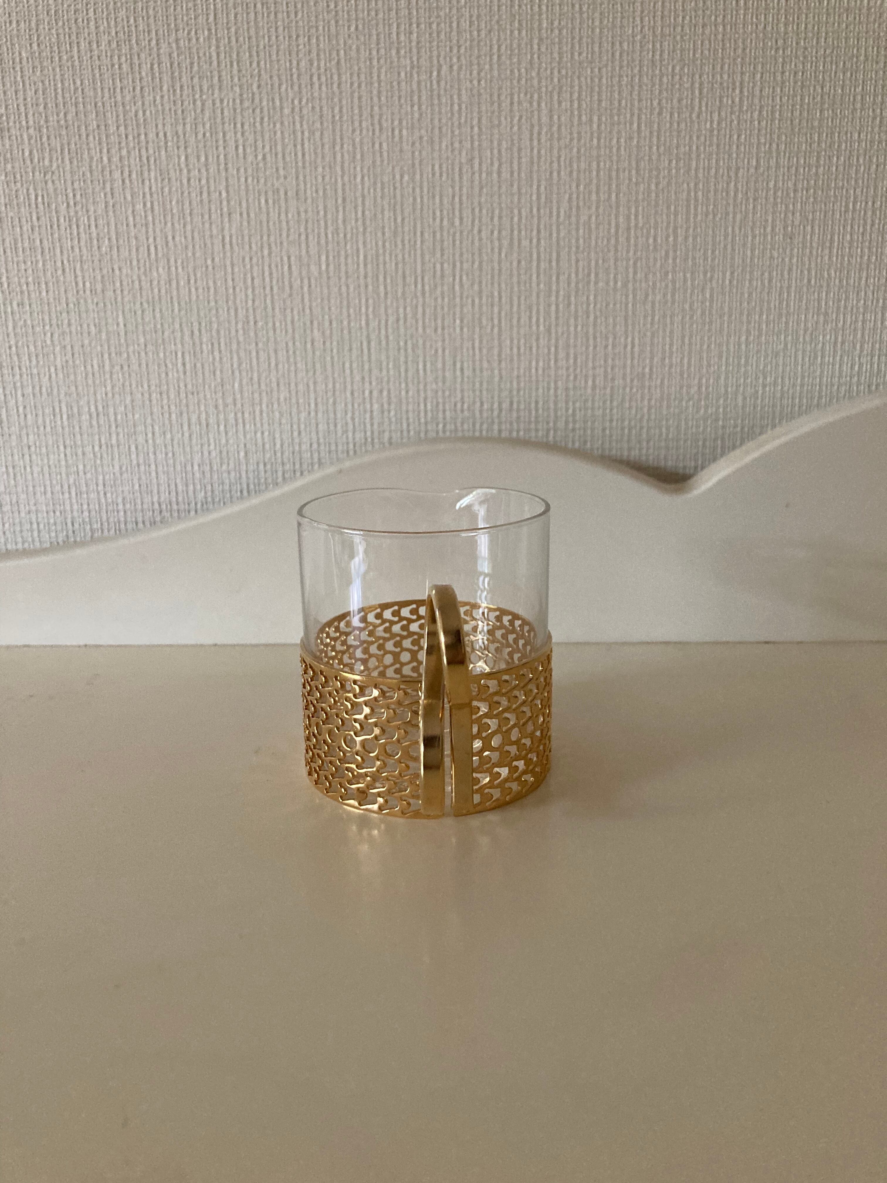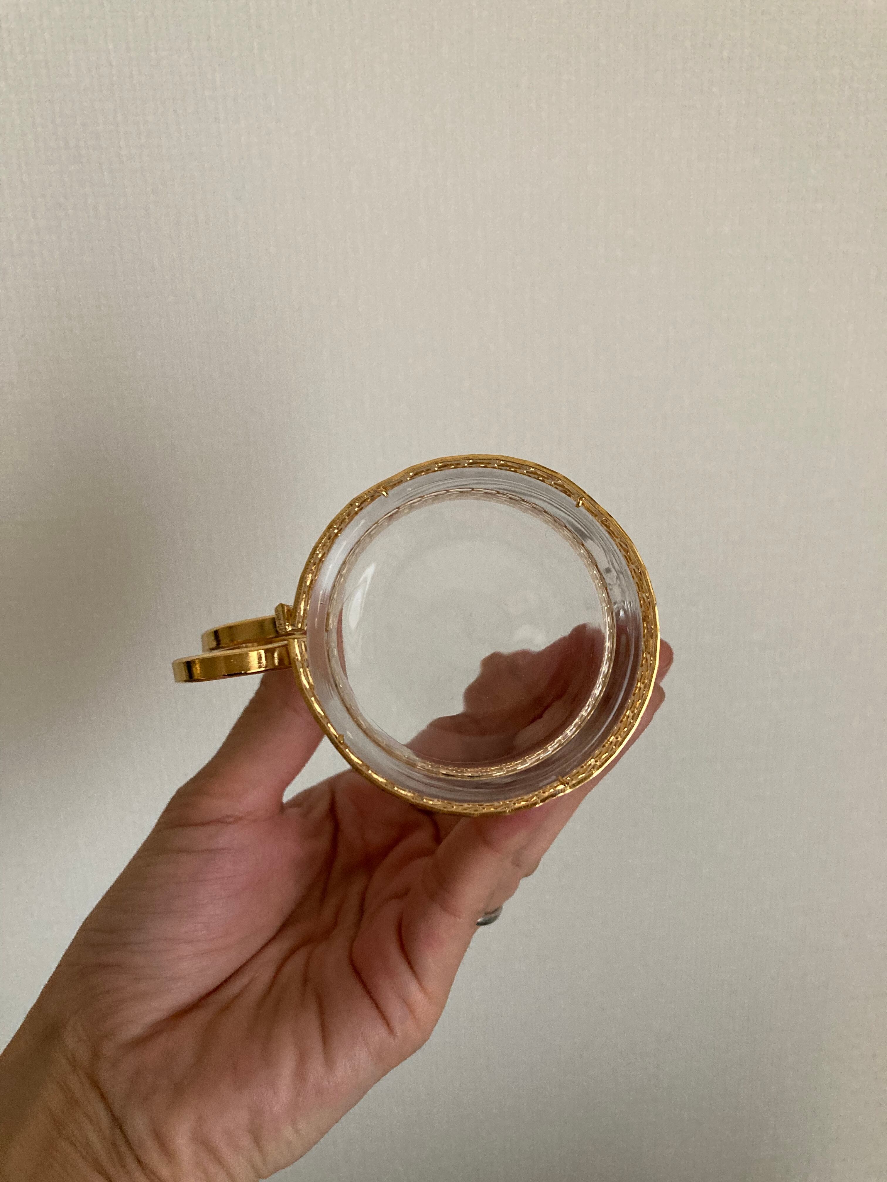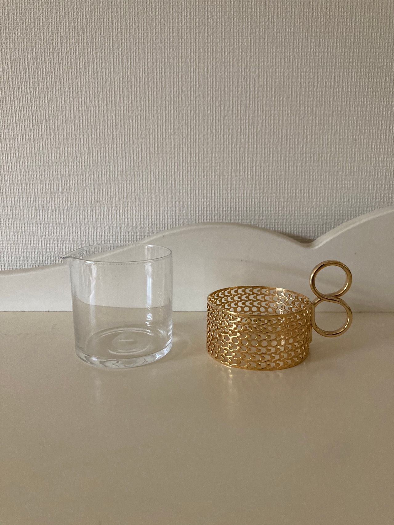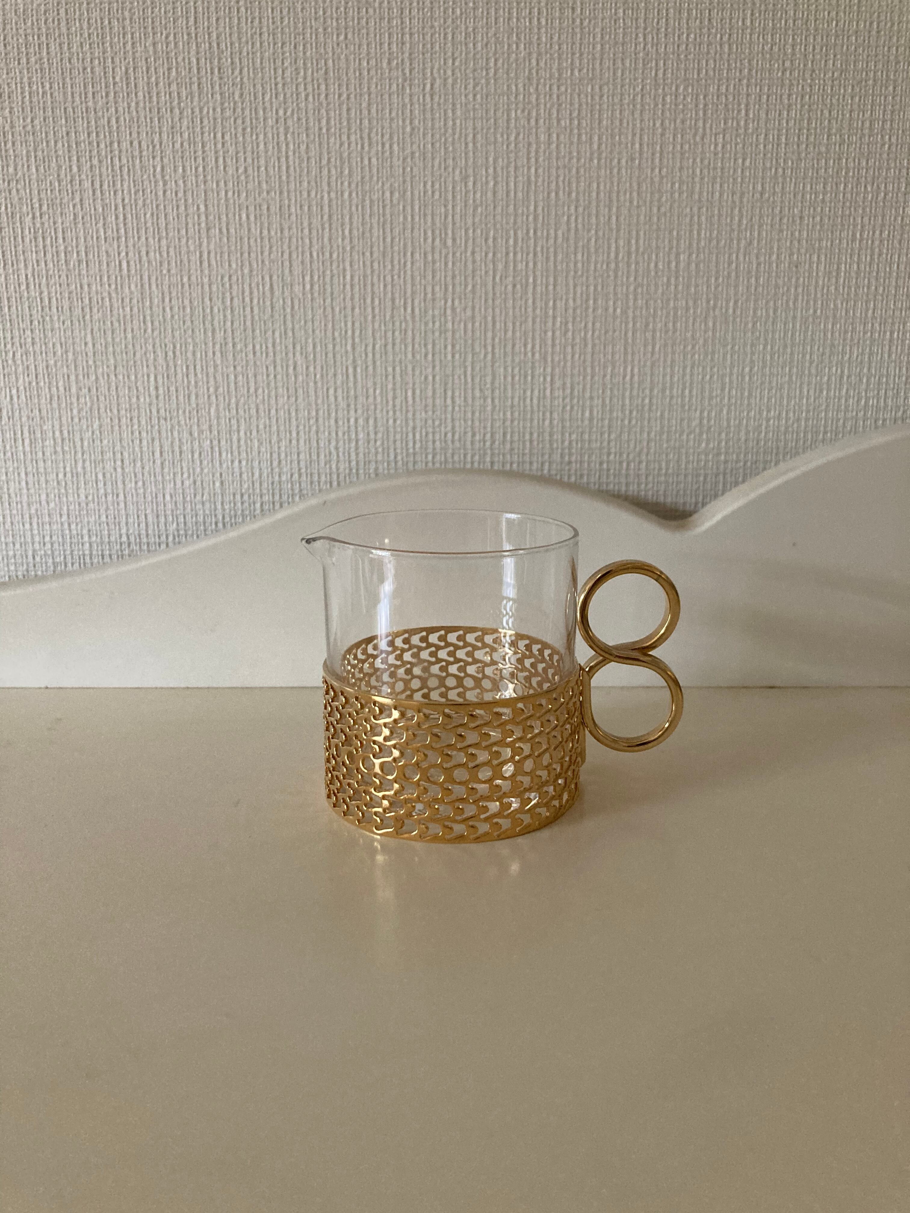 ゴールドのグラスホルダーとクリアのガラスが華やかで素敵なクリーマー。