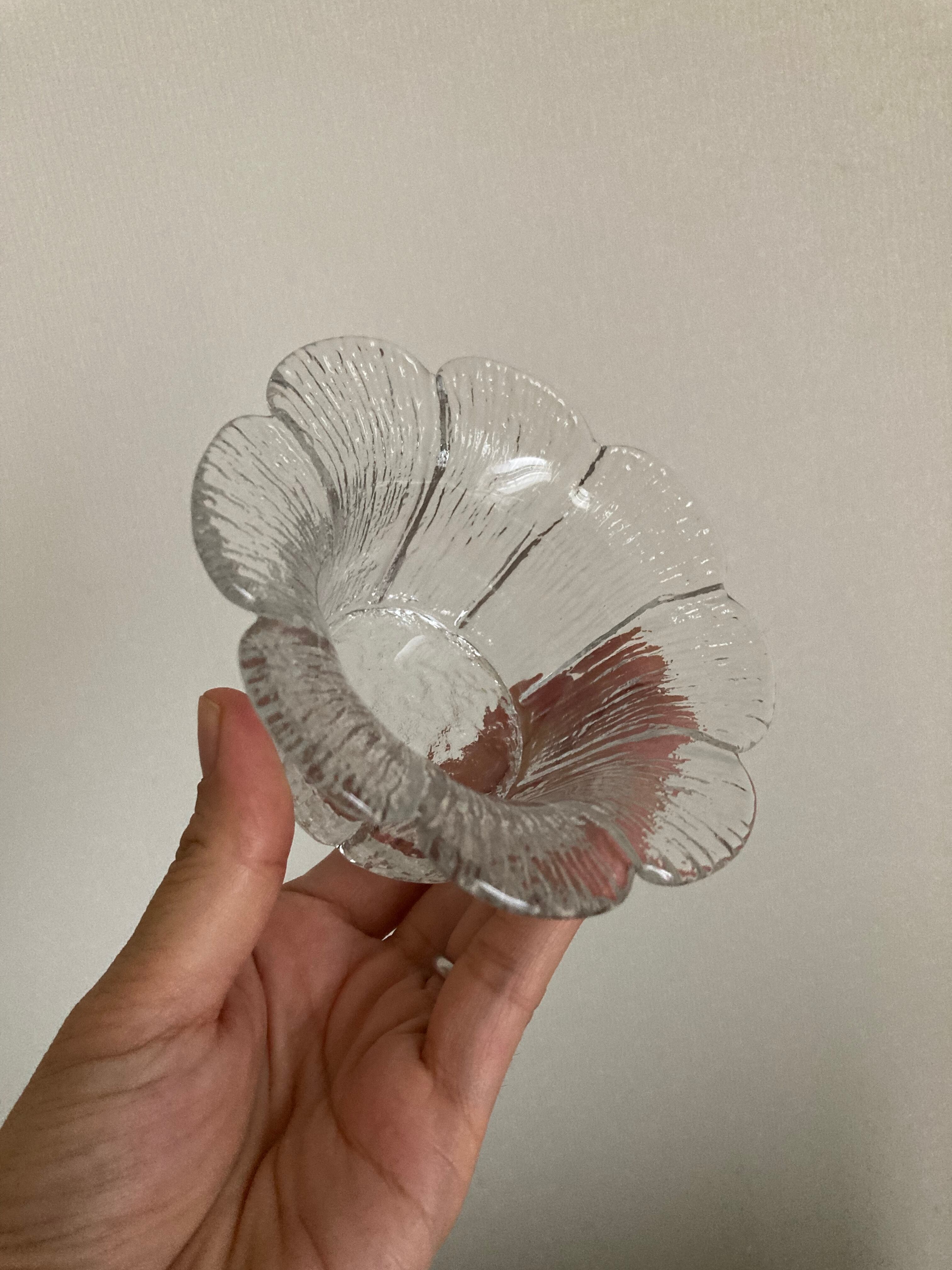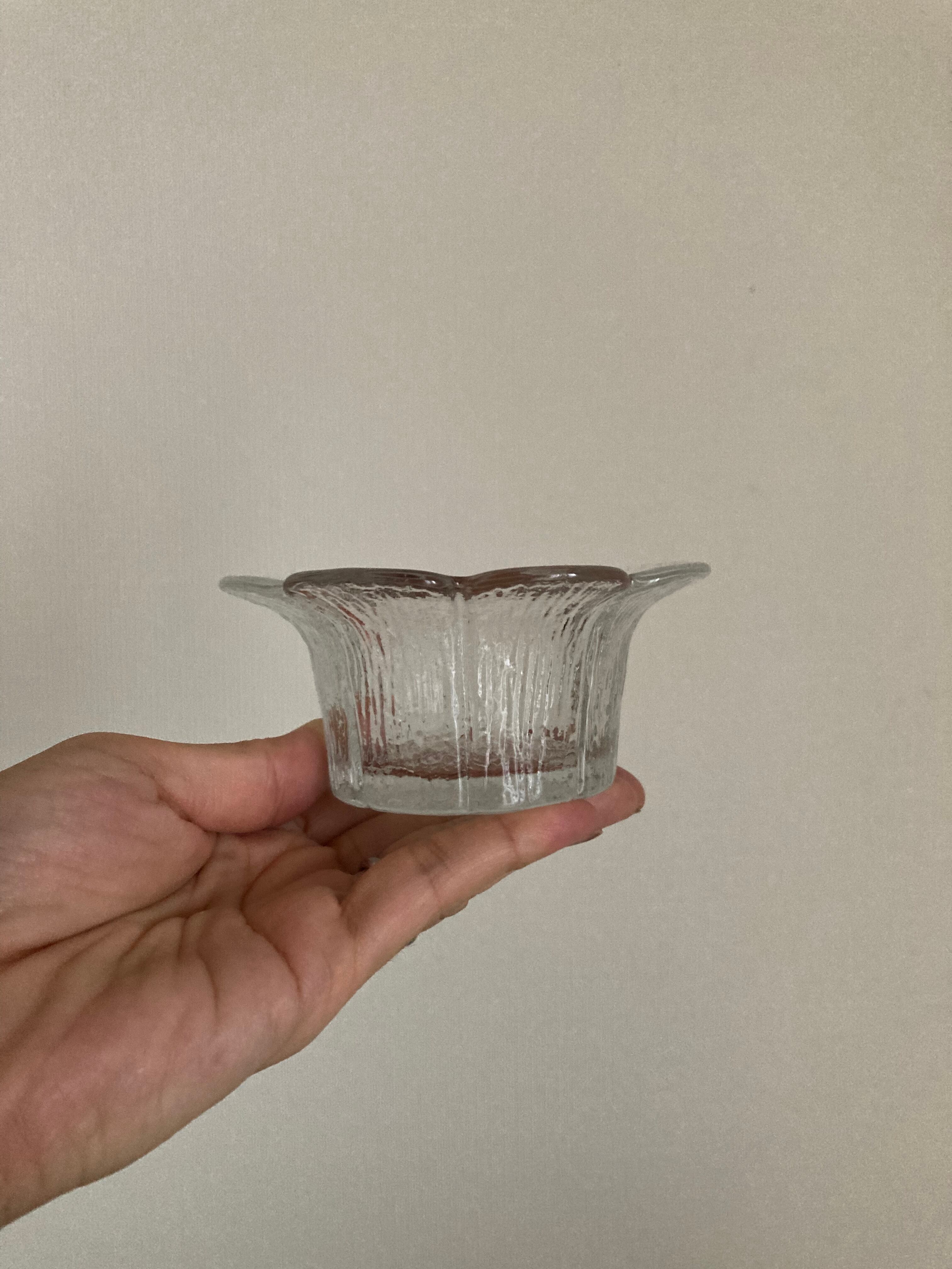 Teralehtiシリーズのガラスのキャンドルホルダーです。Teralehtiとは花びらの意味。その名の通り、お花がパッと開いたようなデザインが可愛らしいタイプ。