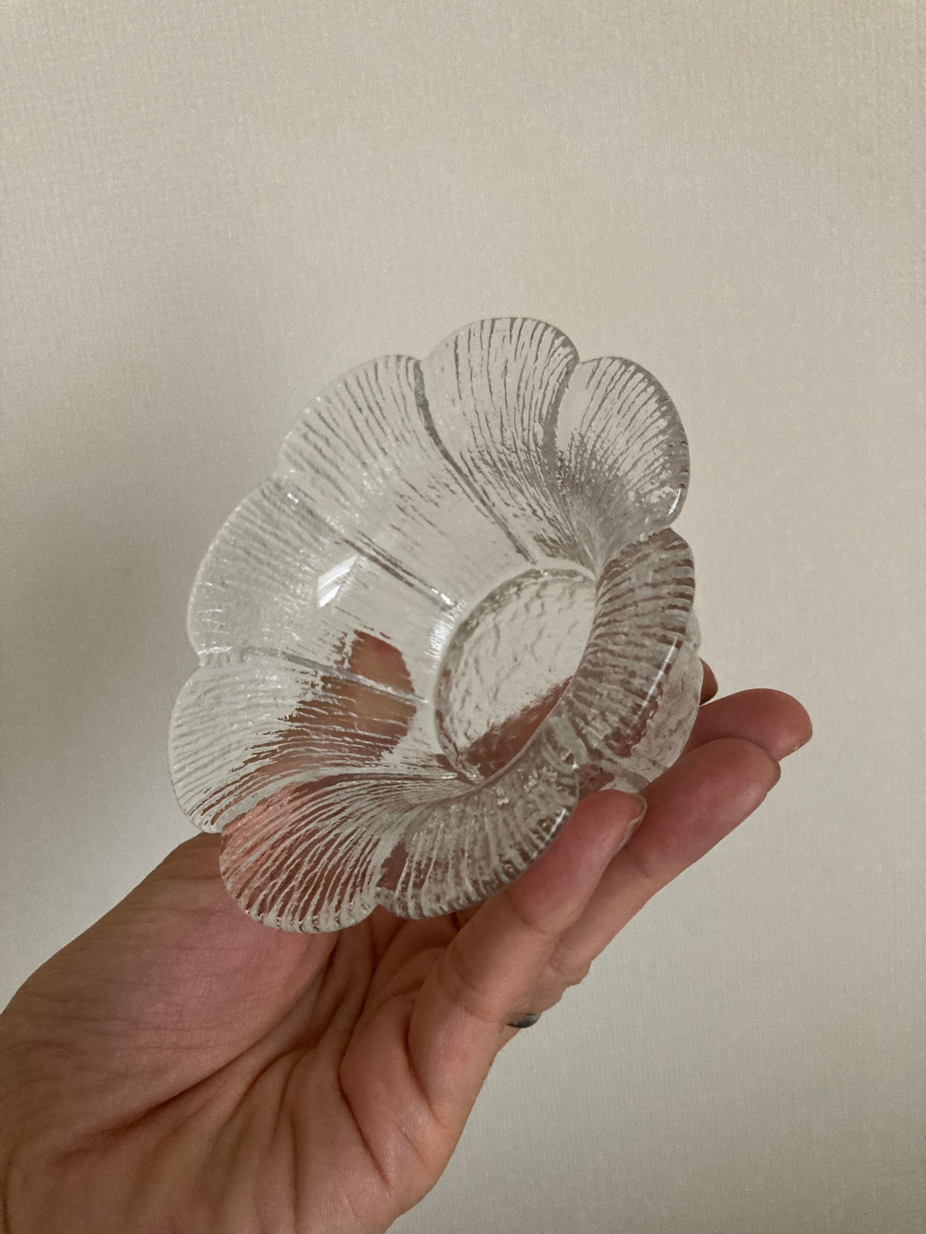 Teralehtiシリーズのガラスのキャンドルホルダーです。Teralehtiとは花びらの意味。その名の通り、お花がパッと開いたようなデザインが可愛らしいタイプ。