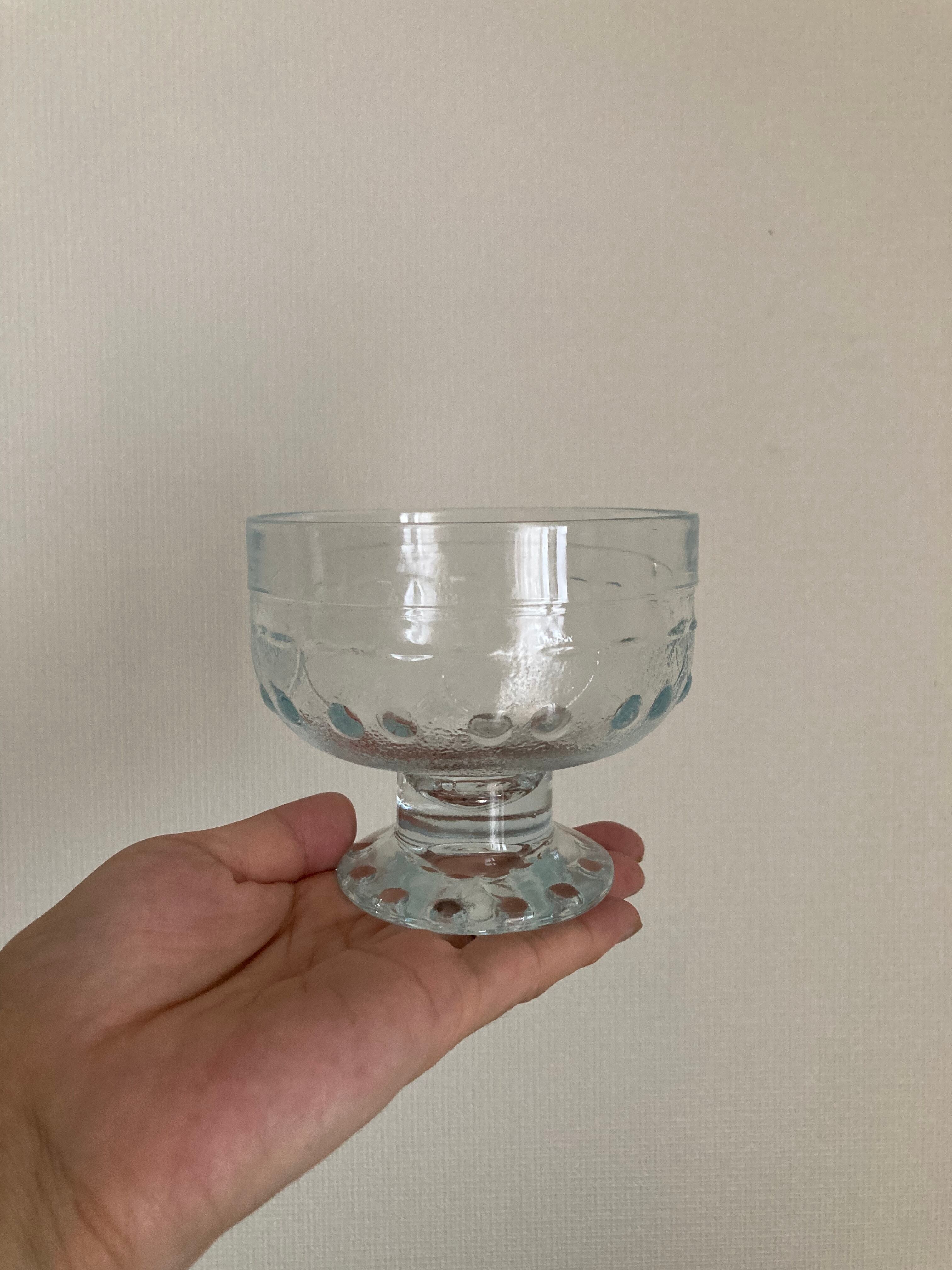 ・北欧 Riihimaen Lasi KIRSI さくらんぼ ガラスの脚付きデザートボウル ヴィンテージ
