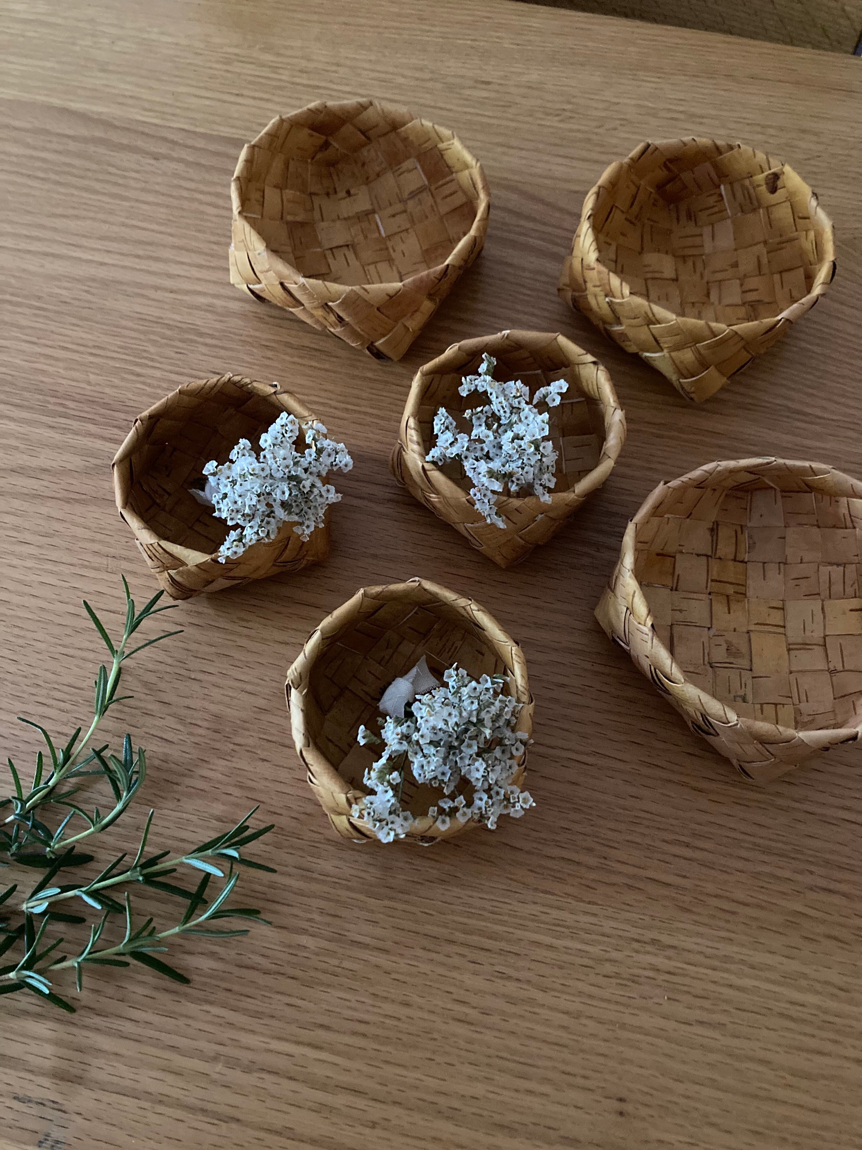 ナチュラルな白樺のかごは、ちょっとした小物入れにしたり、ドライフラワーを入れたりと使い方はいろいろ♫