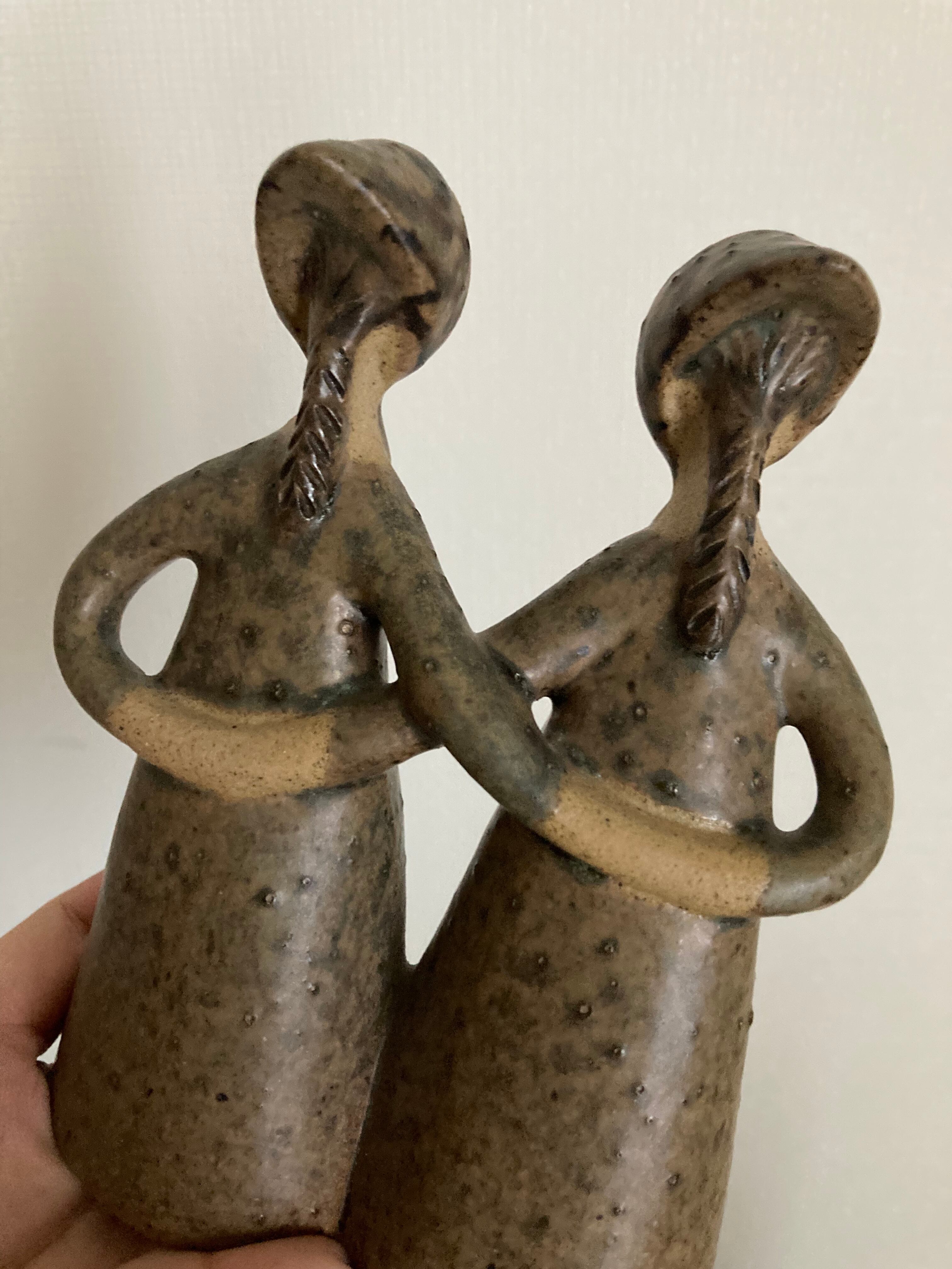 スカーフとストンとしたワンピース姿の女の子たちが、後ろで手をつないだ姿がなんとも可愛らしい、ジィガントフタの中でもかなり珍しいタイプのオブジェになります。