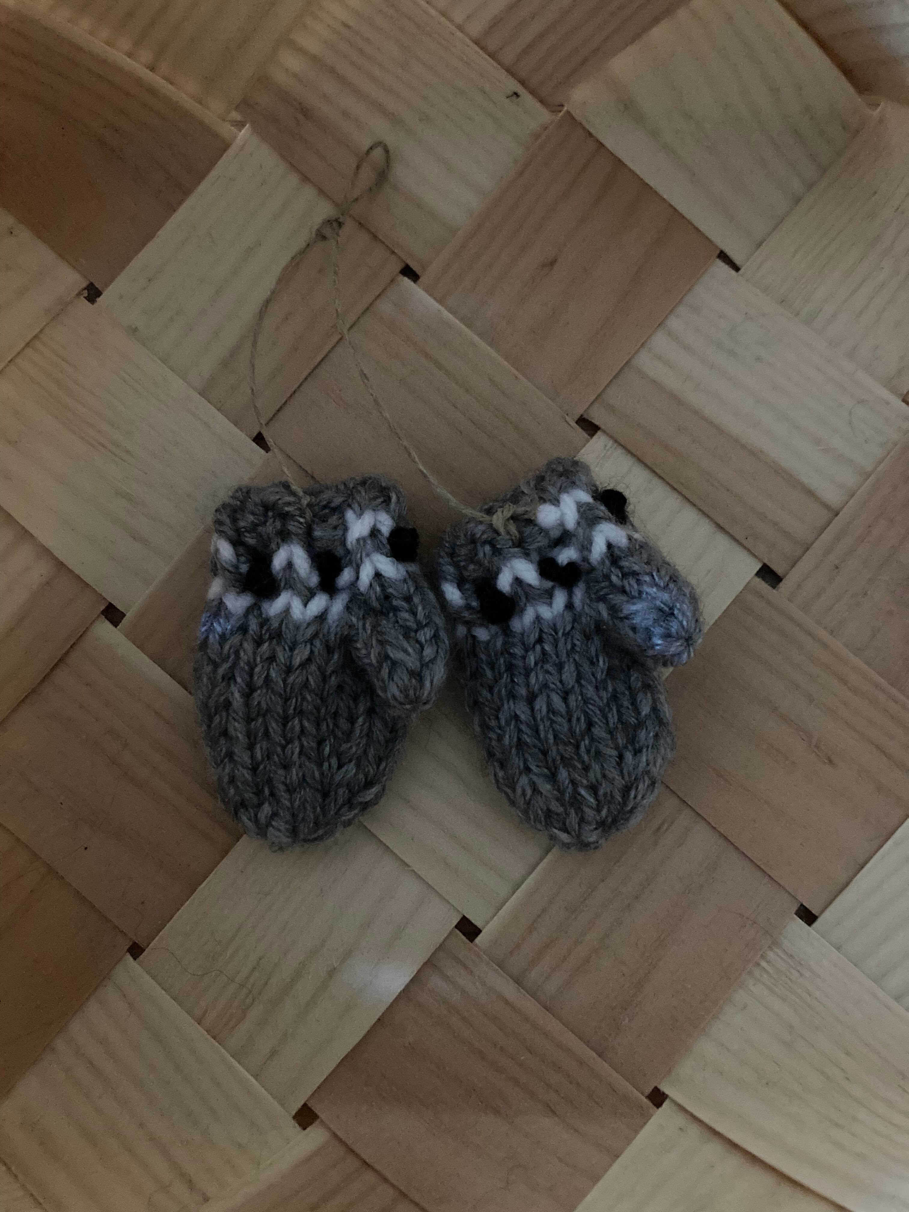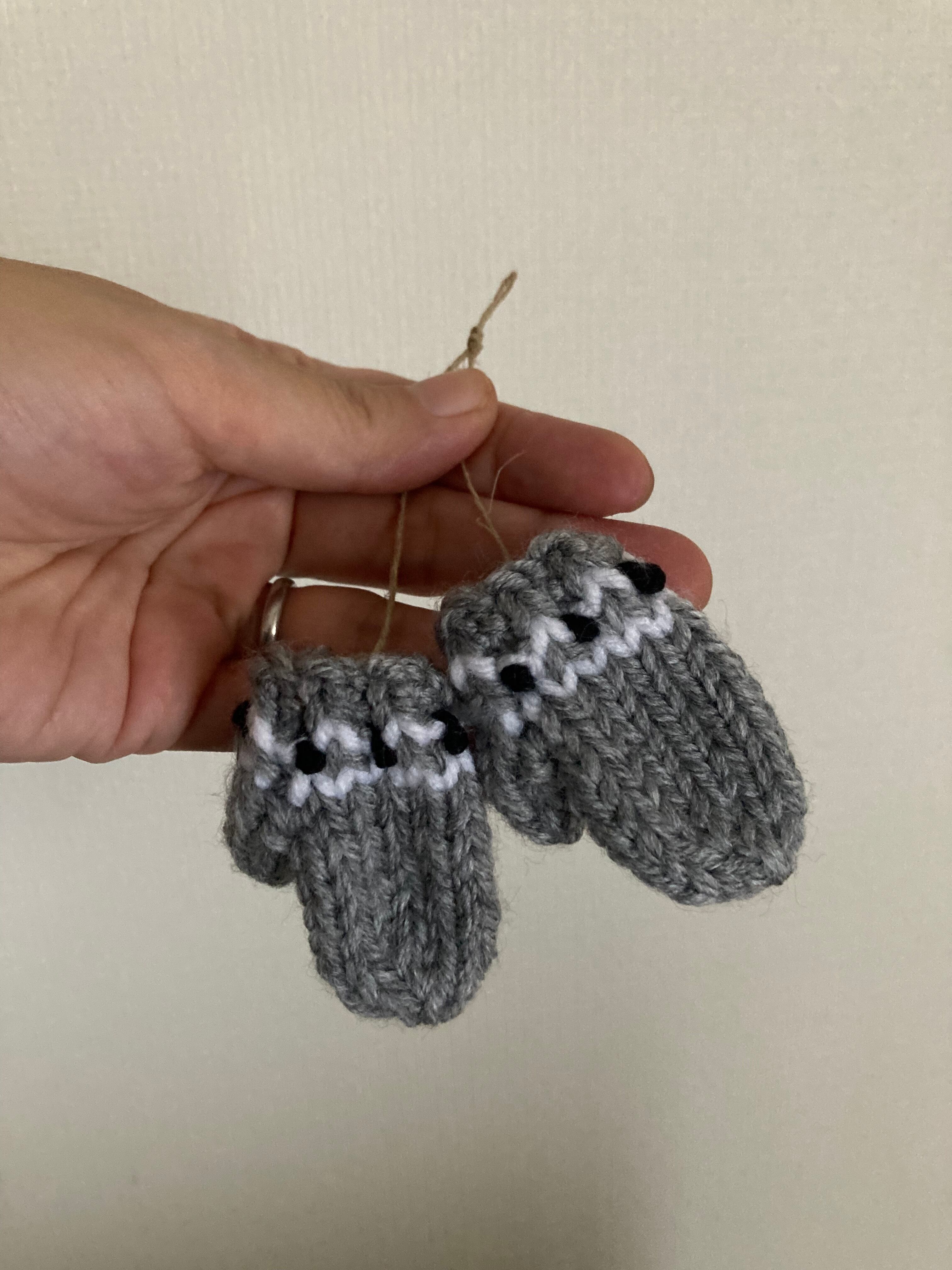 ウールの毛糸で編まれたミトンのオーナメント♫