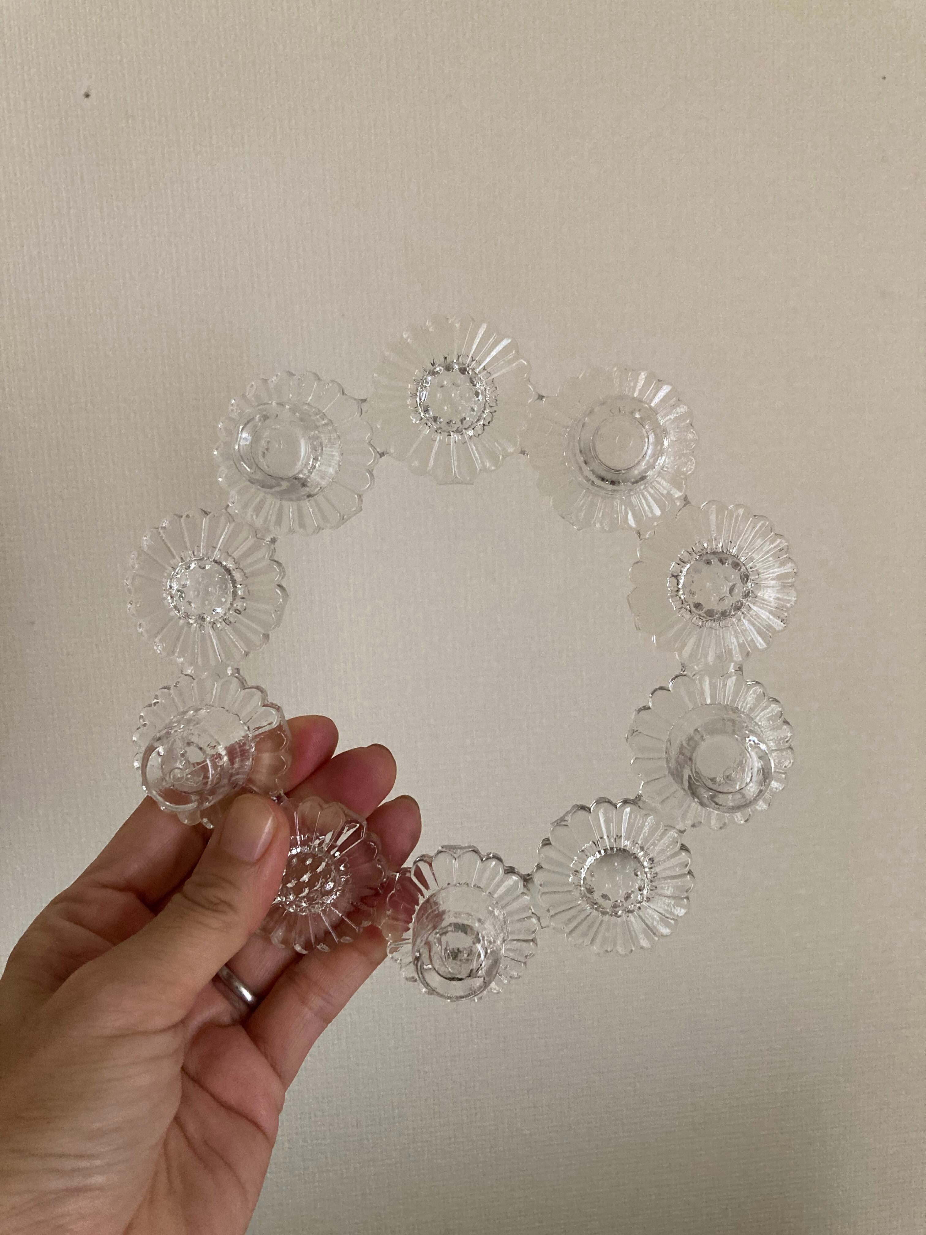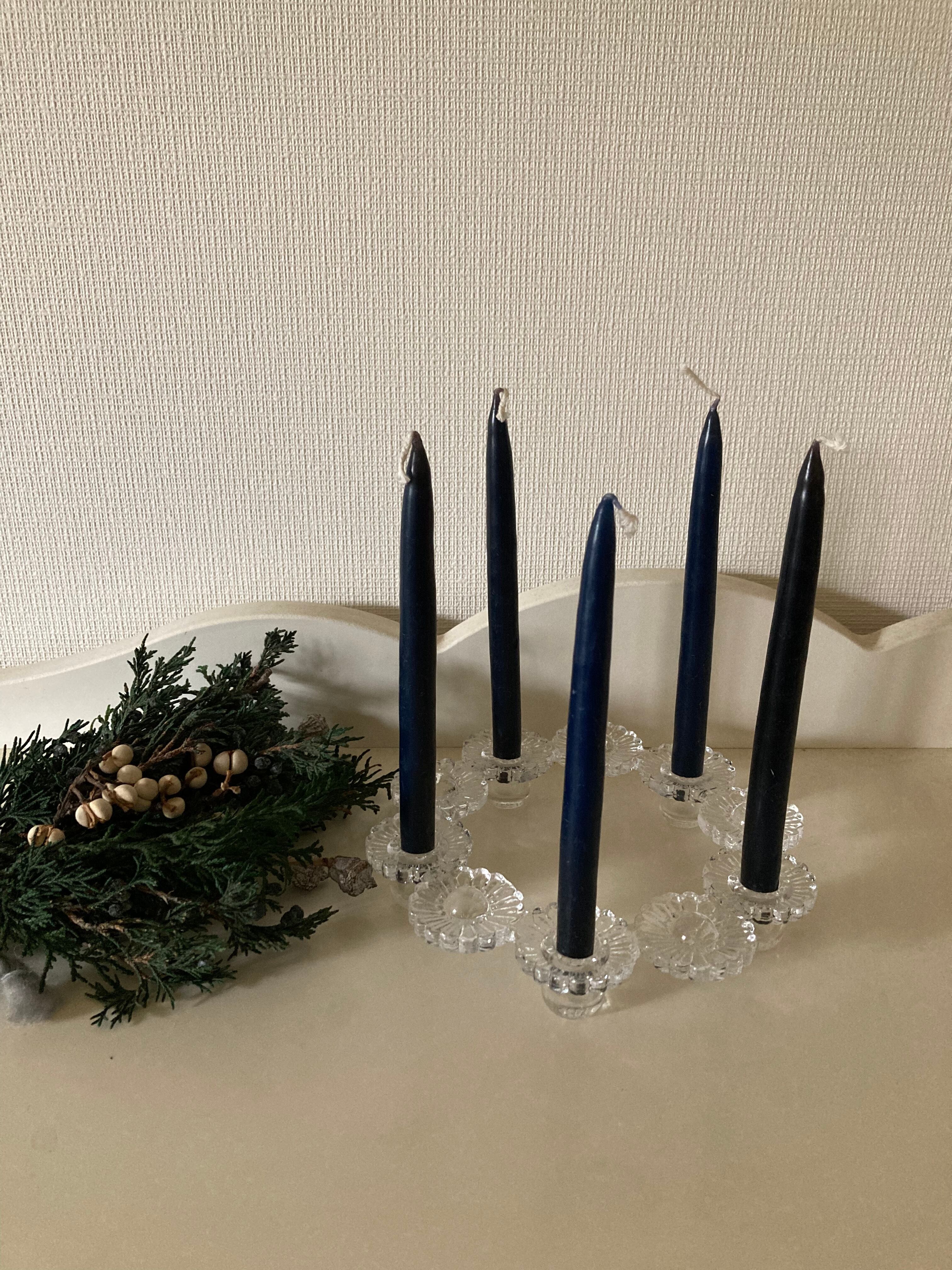 ガラスのお花のひとつおきにキャンドルが立てたれるようになっており、キャンドルが5本立てたれます♫