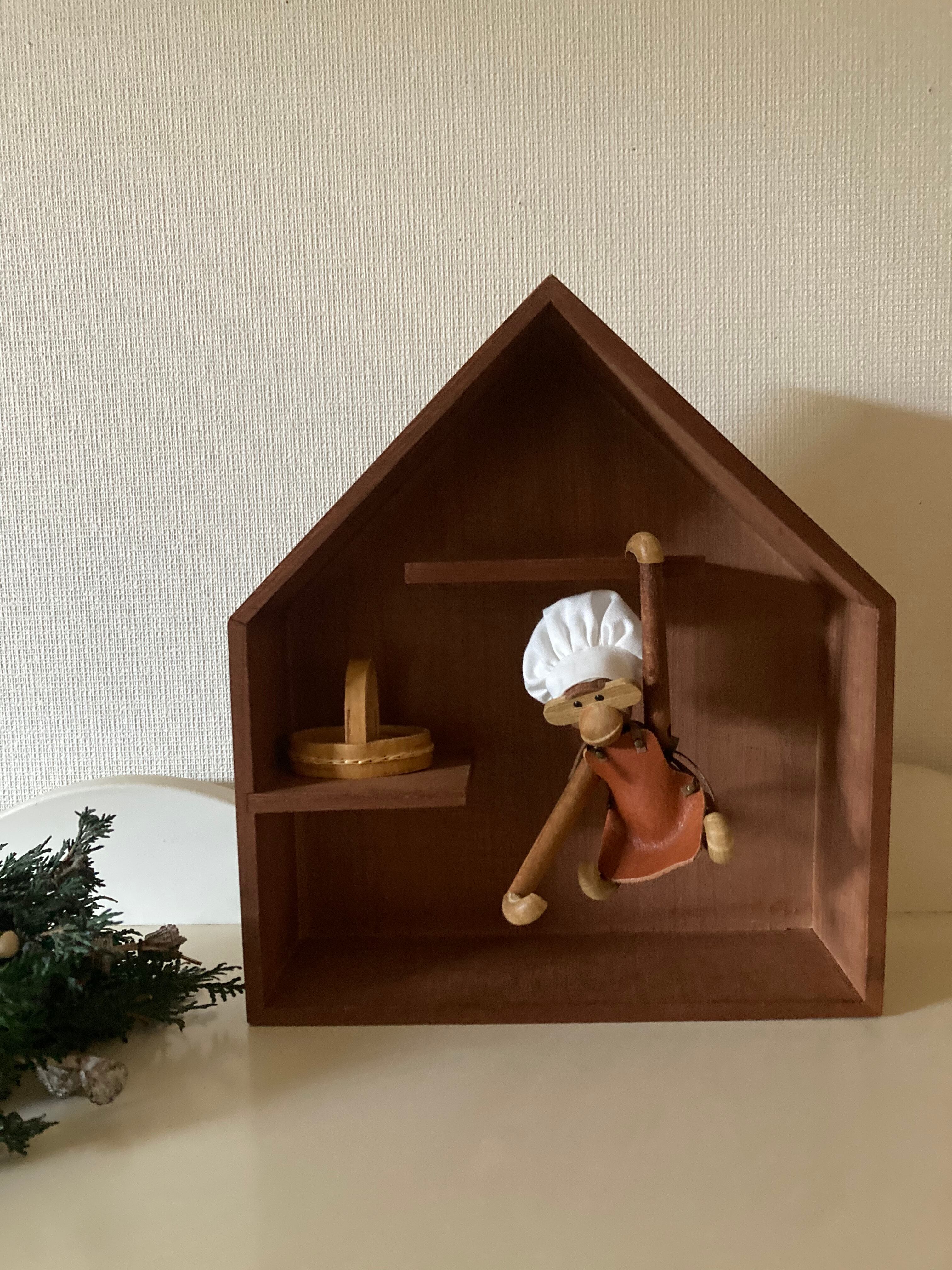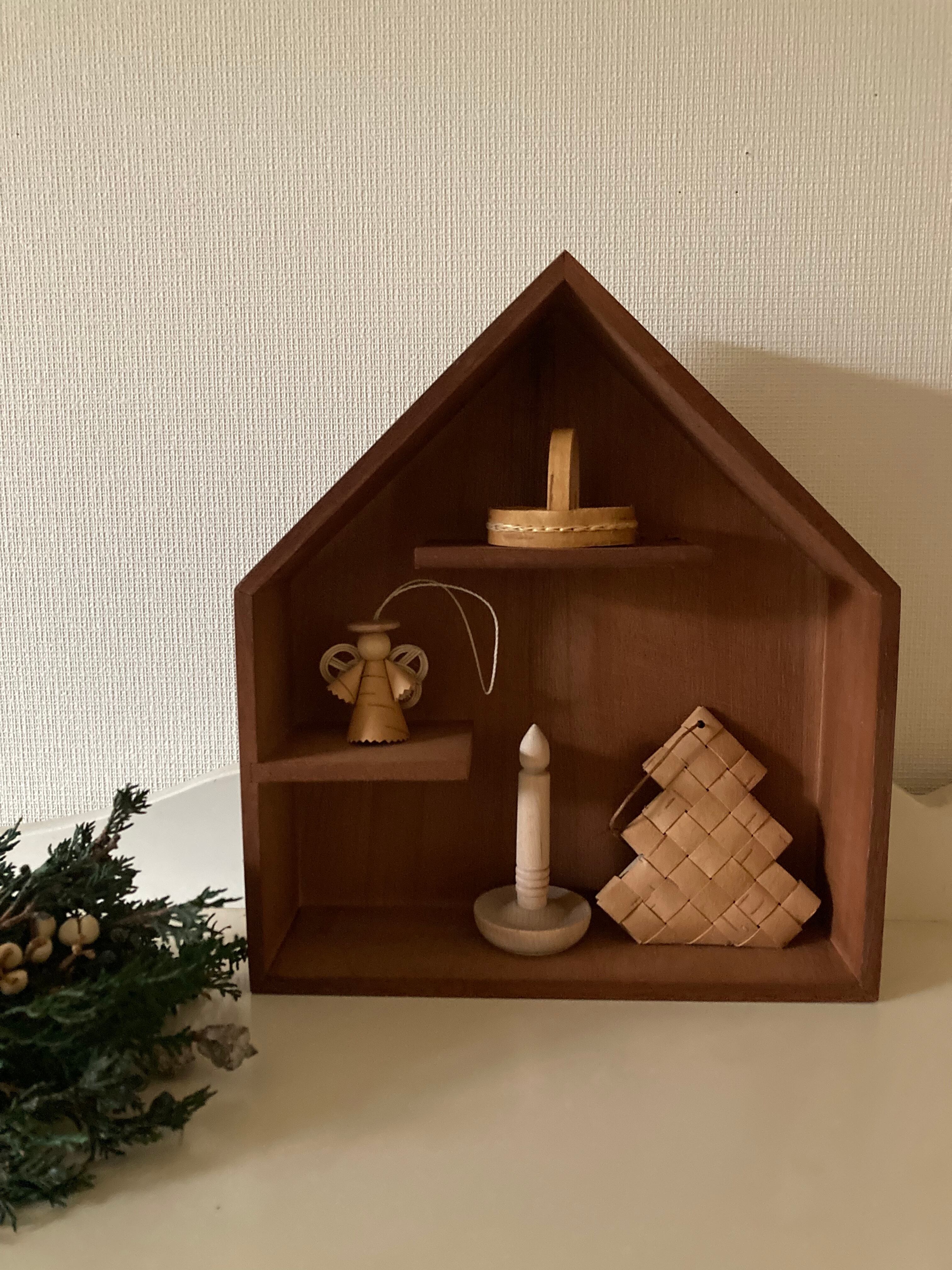 ラスト1点!木のおうち型飾り棚/ダークブラウン