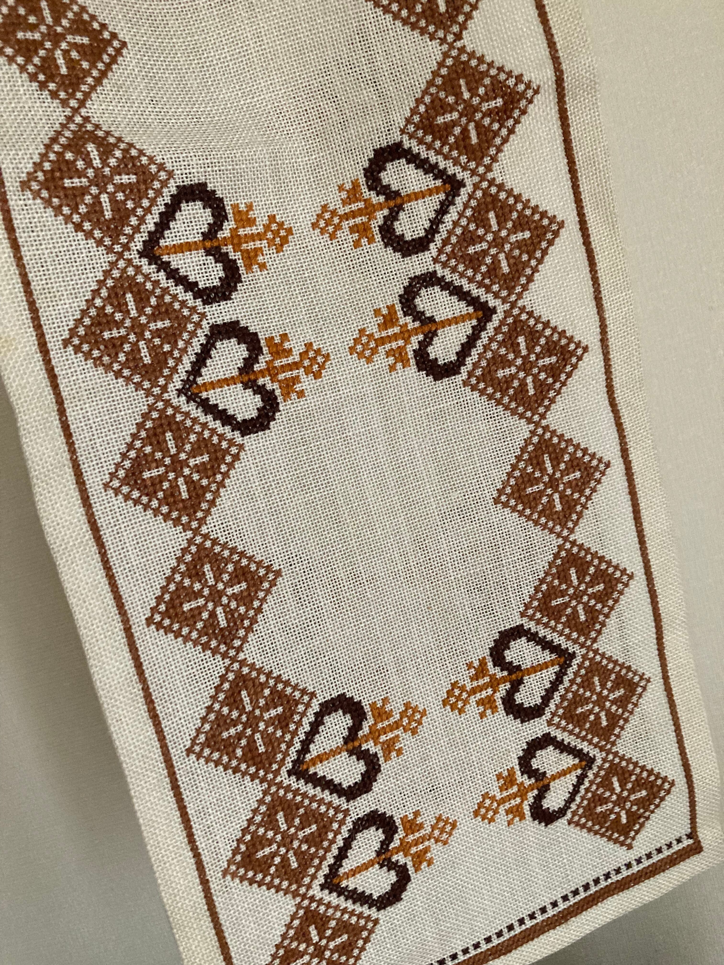 張りのあるリネン生地に、ハートのブラウンの刺繍がシックで素敵なロングクロス♫