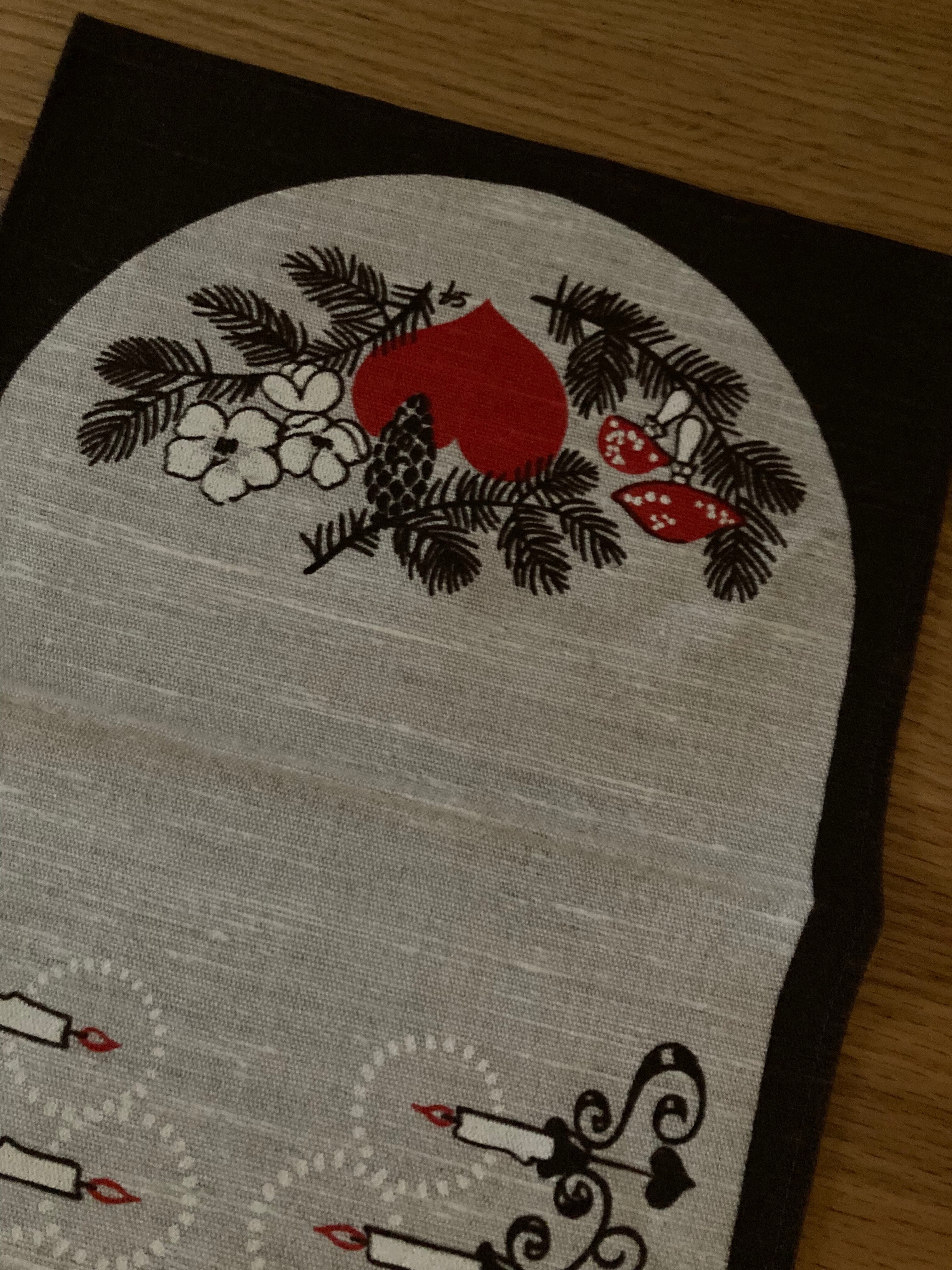 北欧 ハートとキャンドル ハーフリネンロングクロス ヴィンテージ