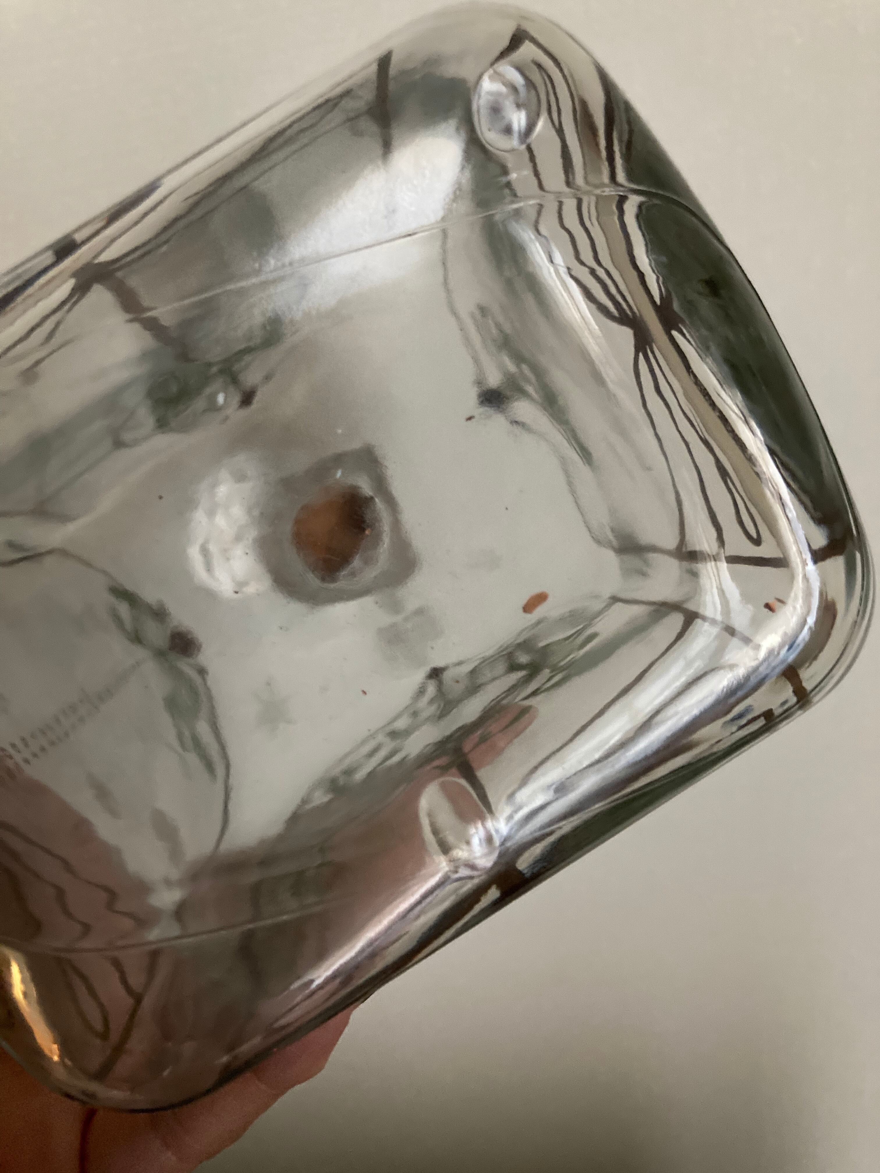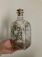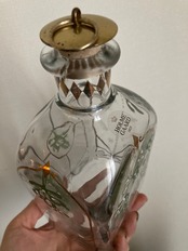 ごく小さな気泡、緩やかな凹凸が見られる箇所(ホルムガードのクリスマスボトル全体に見られますので特にダメージ品ではありません)、底の部分にごくわずかに、ゴールドのペイントの飛びが見られる箇所と、蓋のコルクが欠けている箇所がございますが(蓋はきちんと締まります)、ガラスの部分は特に目立ったダメージもなく、ヴィンテージ 品ににしては状態良好です。