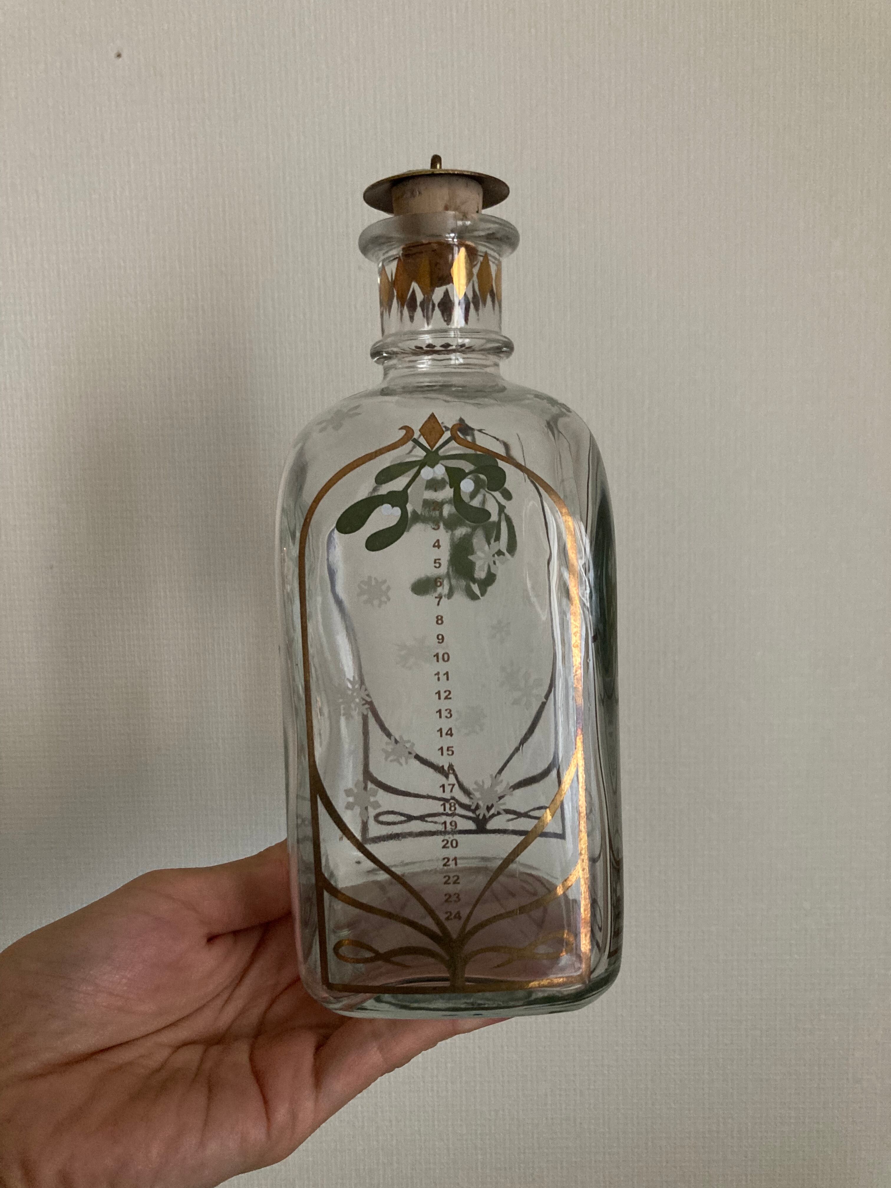 サイドには1-24まで目盛りが書いてあり、クリスマスまで、毎日、1目盛りずつお酒を飲み、クリスマスまでを楽しみながら過ごす、大人版のアドベントカレンダーです♫