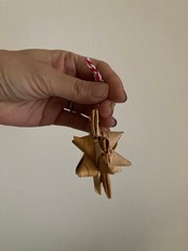 白樺の星は、もともとは紐は付いていないですが、写真の紐を一緒にお付けします。