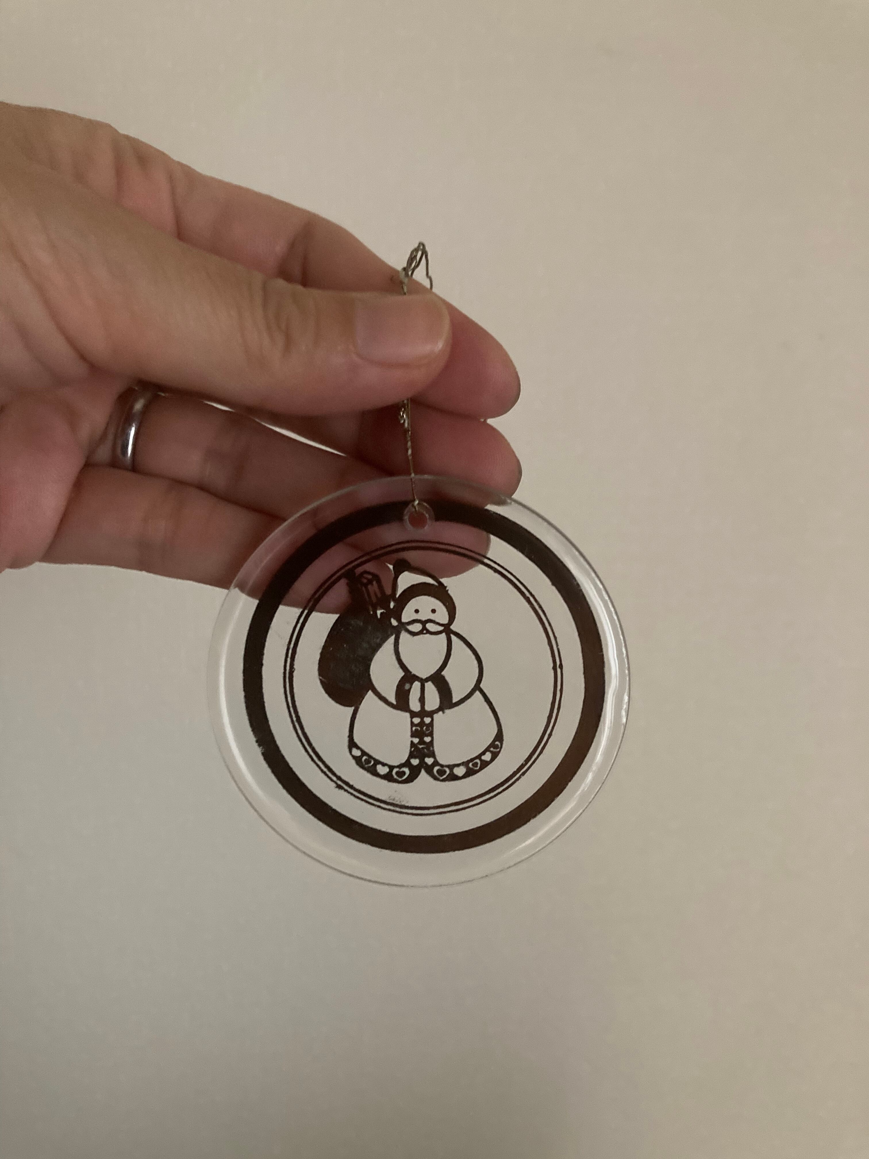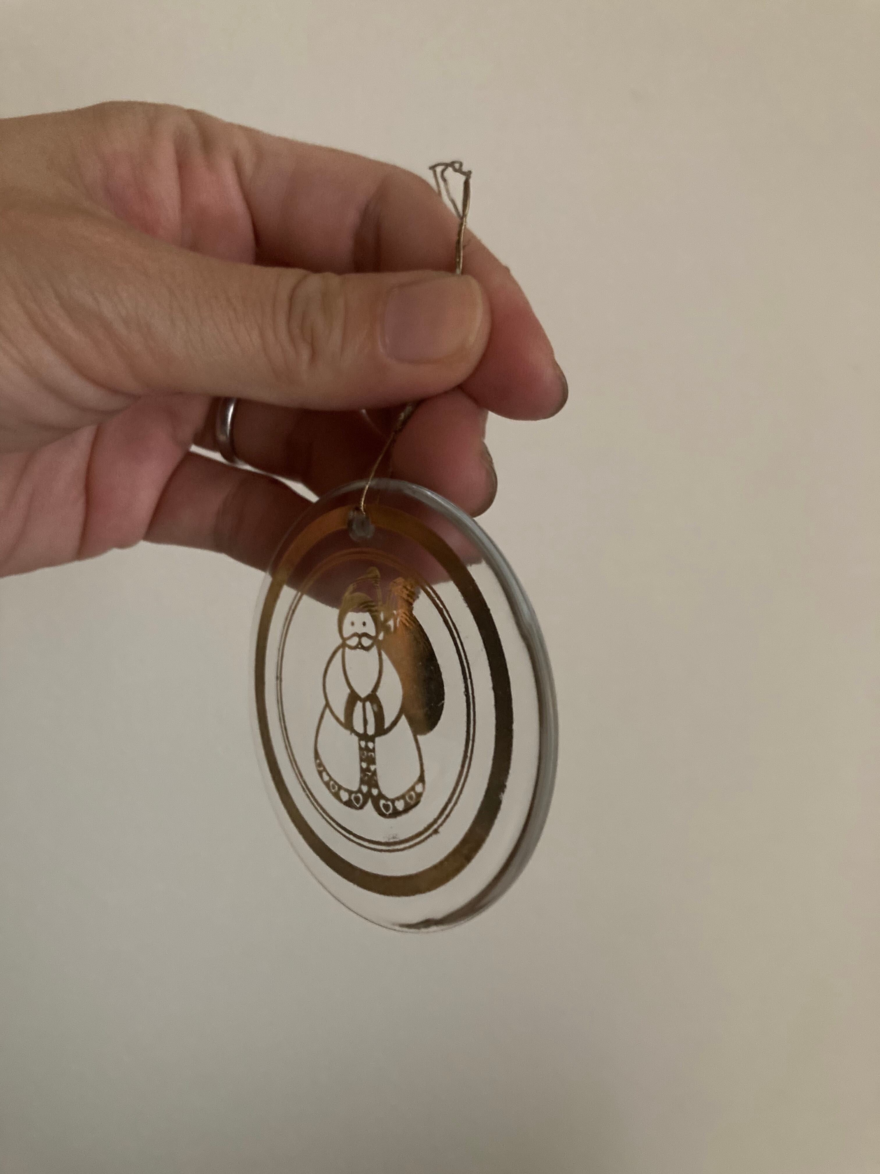 クリアなガラスに、ゴールドのサンタの柄がシックで可愛らしい丸型のオーナメント❤︎