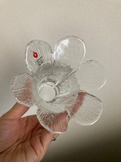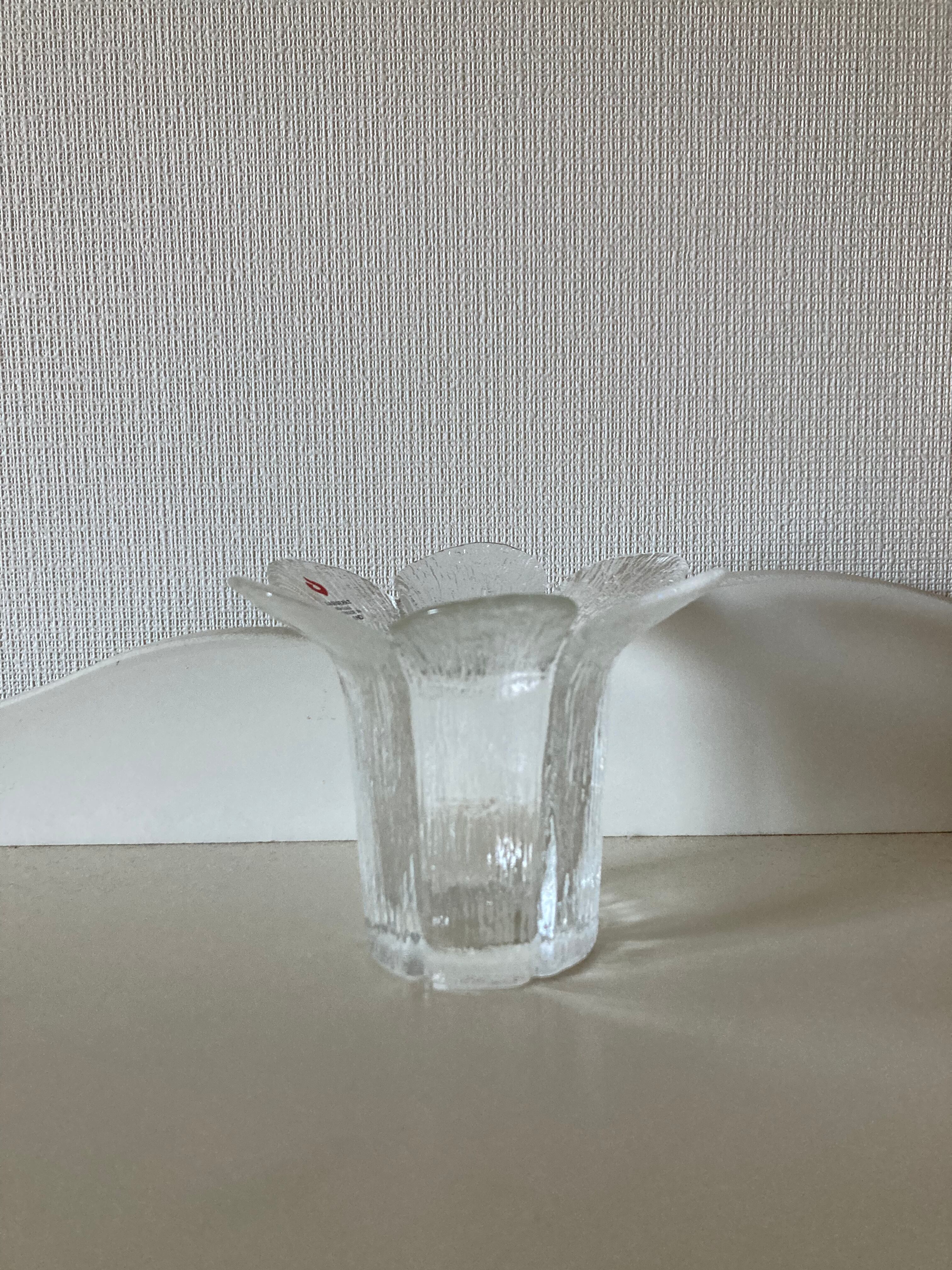 Teralehtiシリーズのガラスのキャンドルホルダーです。Teralehtiとは花びらの意味。その名の通り、お花がパッと開いたようなデザインが可愛らしいタイプ。こちらは高さがあるタイプになります。