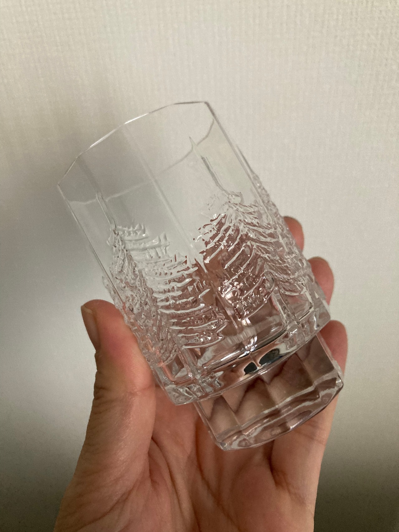グラスタンブラーなので、厚みがあまりないぶん、モミの木の柄がより一層際立って見えます♫