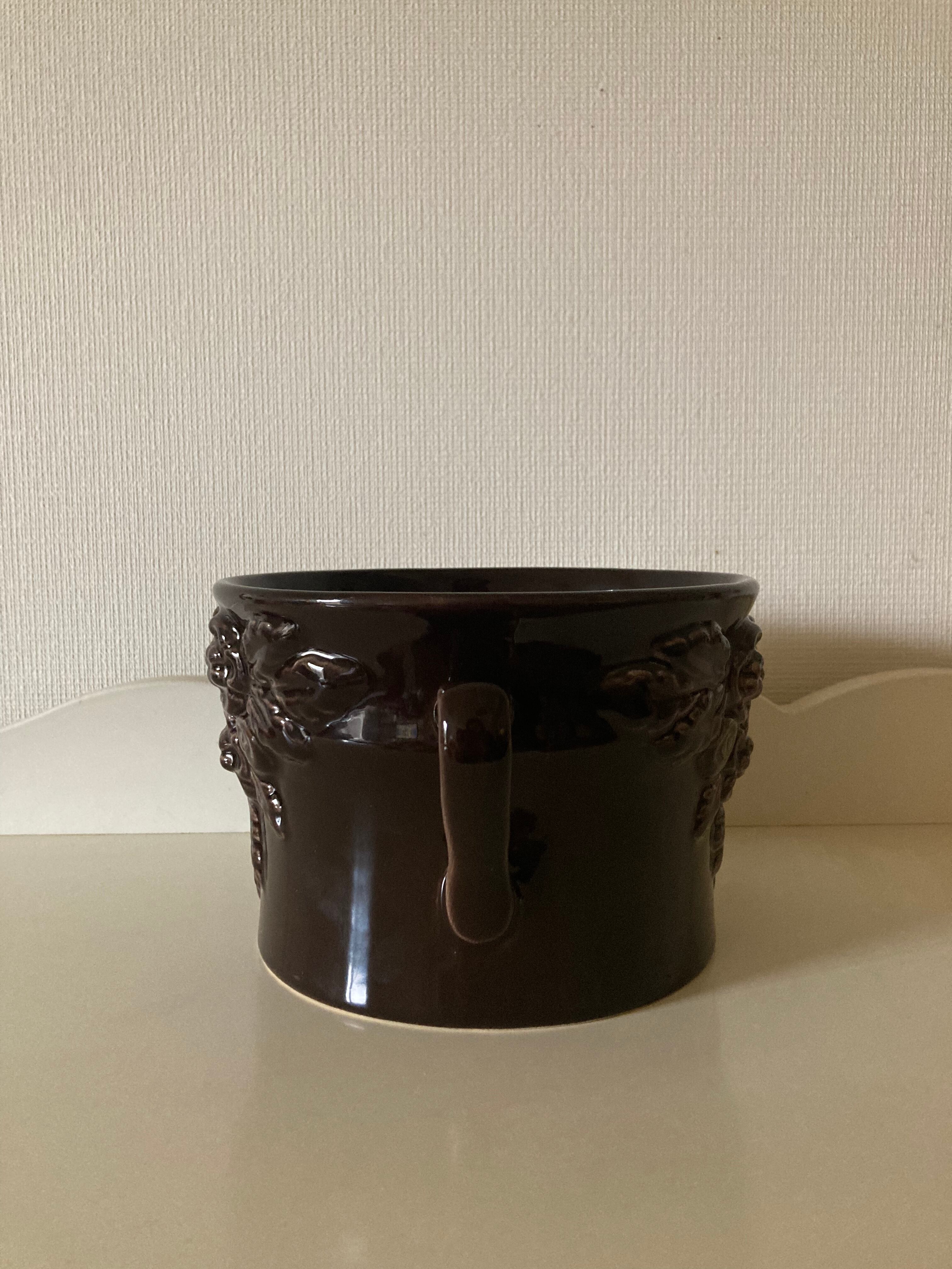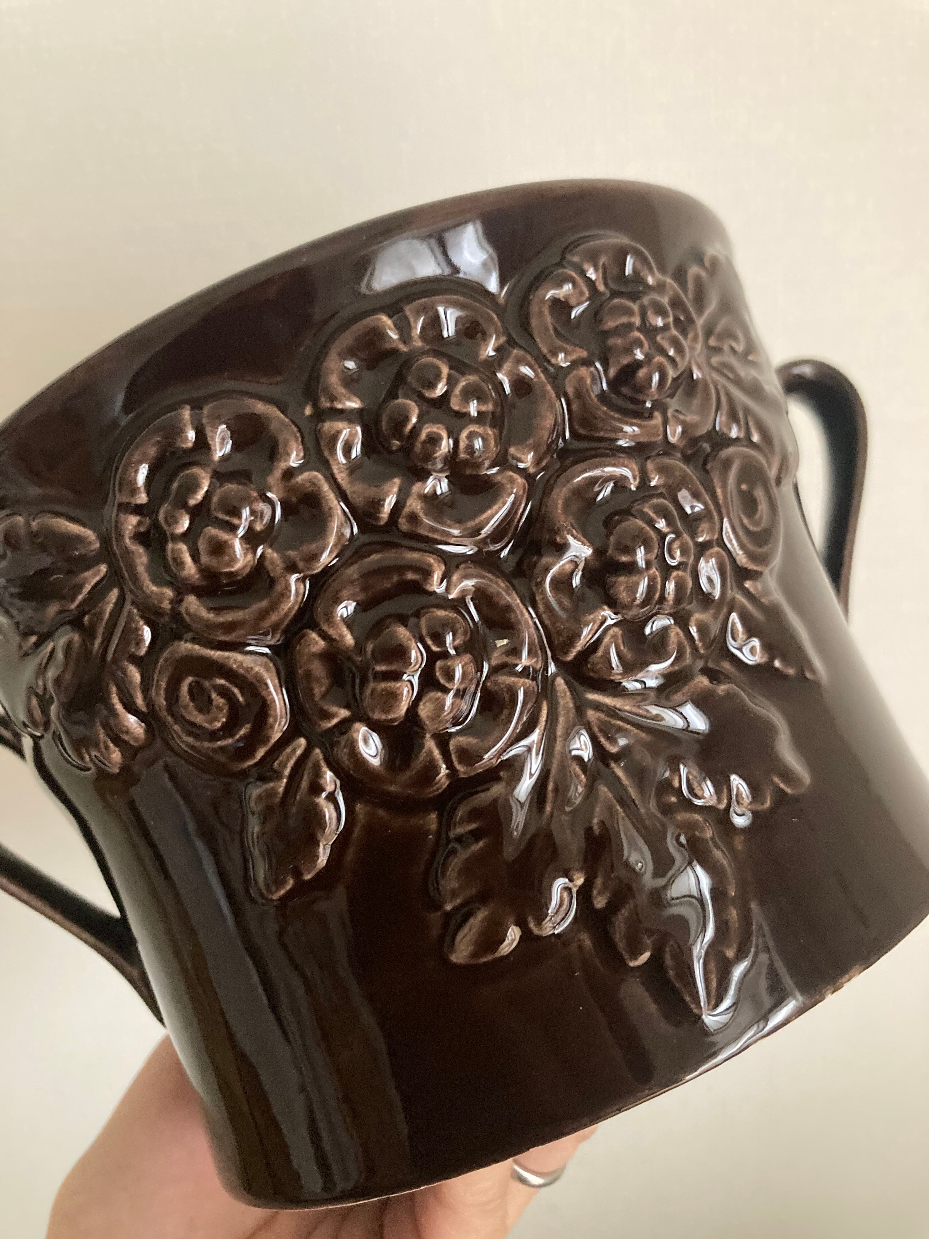 艶やかな落ち着いたブラウンと、立体的なお花がシックで素敵な、プランターポットです。