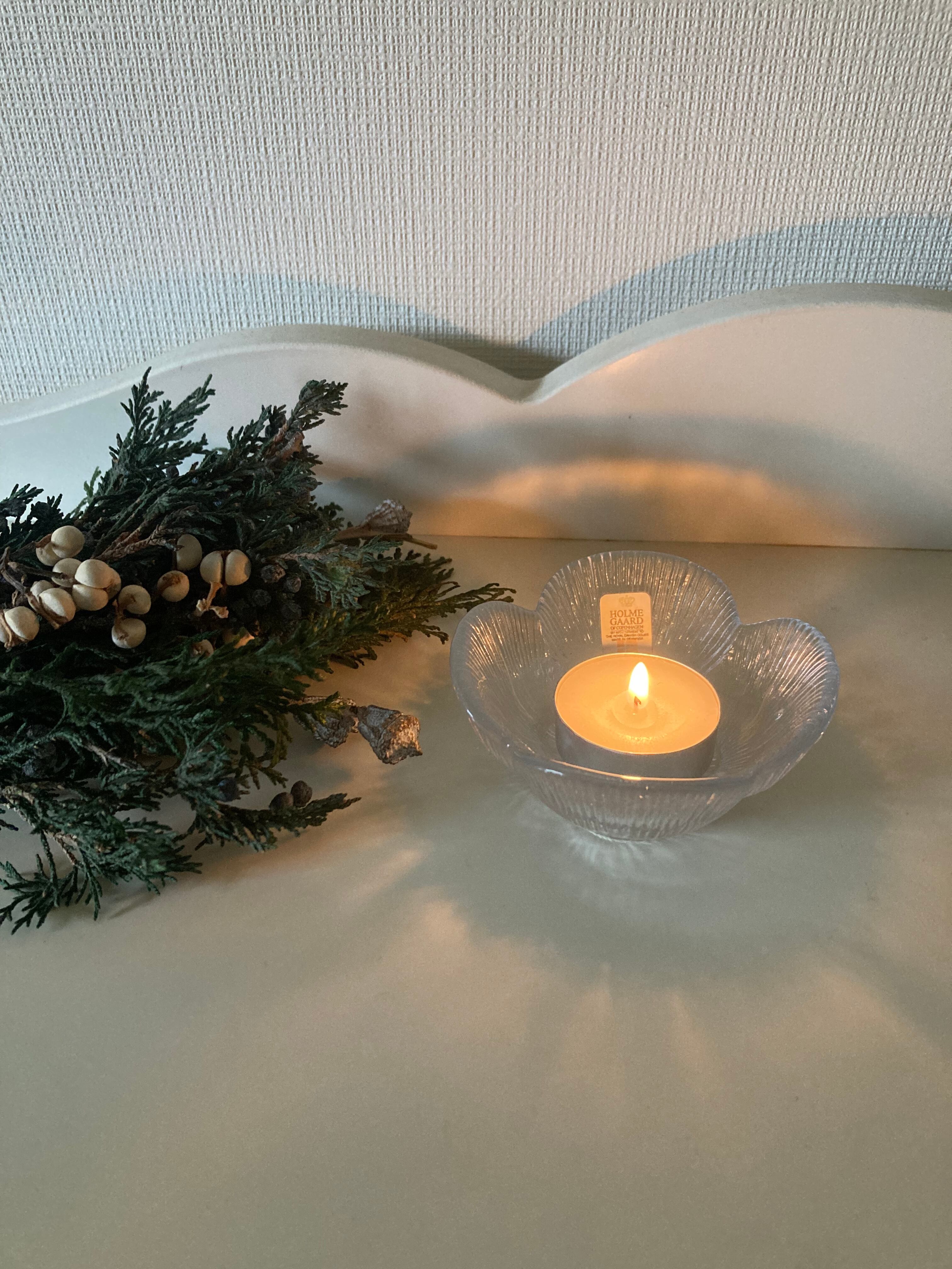 北欧 デンマーク Holmegaard ガラスのキャンドルホルダー/パンジー ヴィンテージ