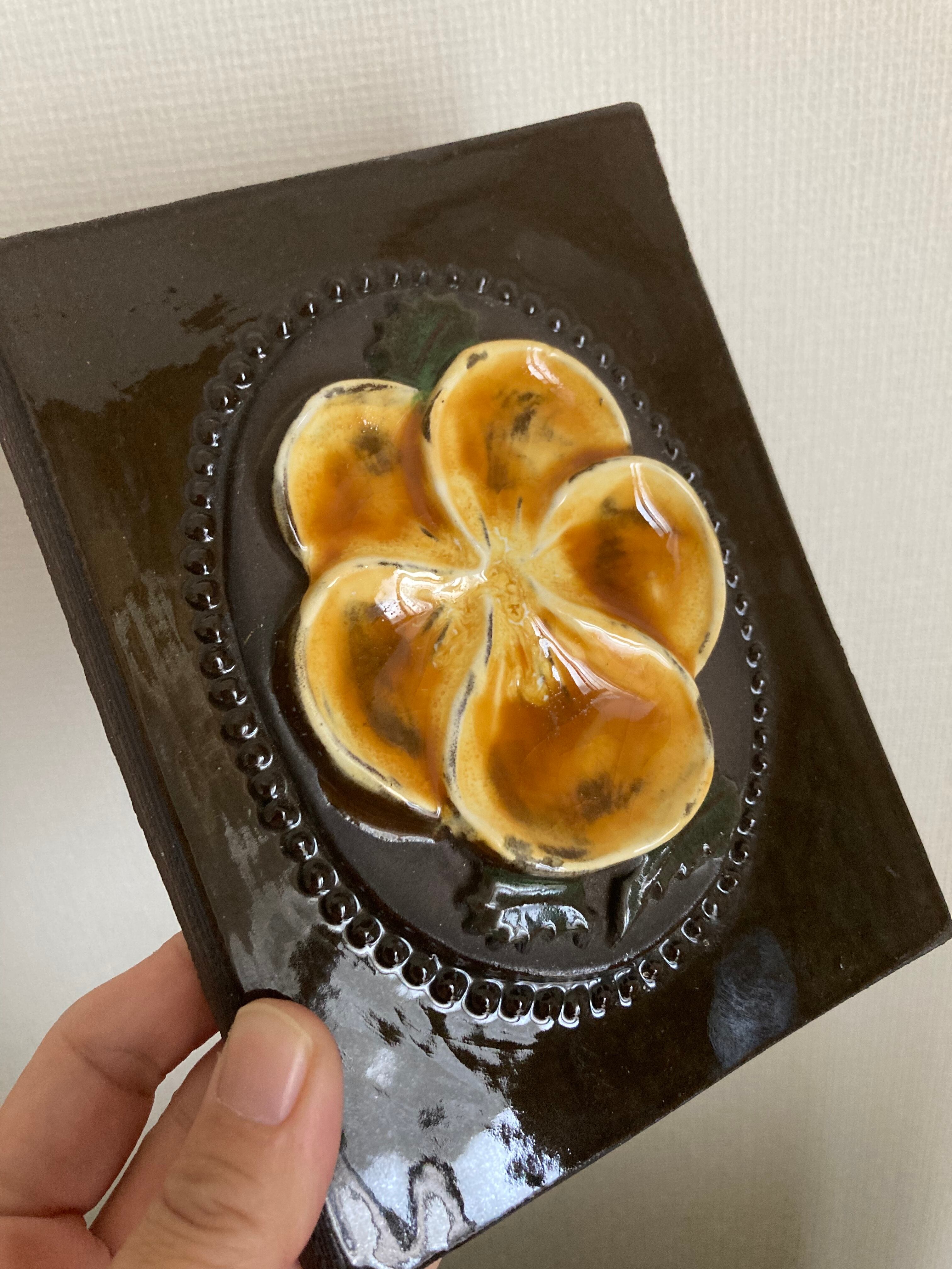 Aimoデザインのパンジーの陶板はよく見られますが、このように1つのパンジーをデザインした