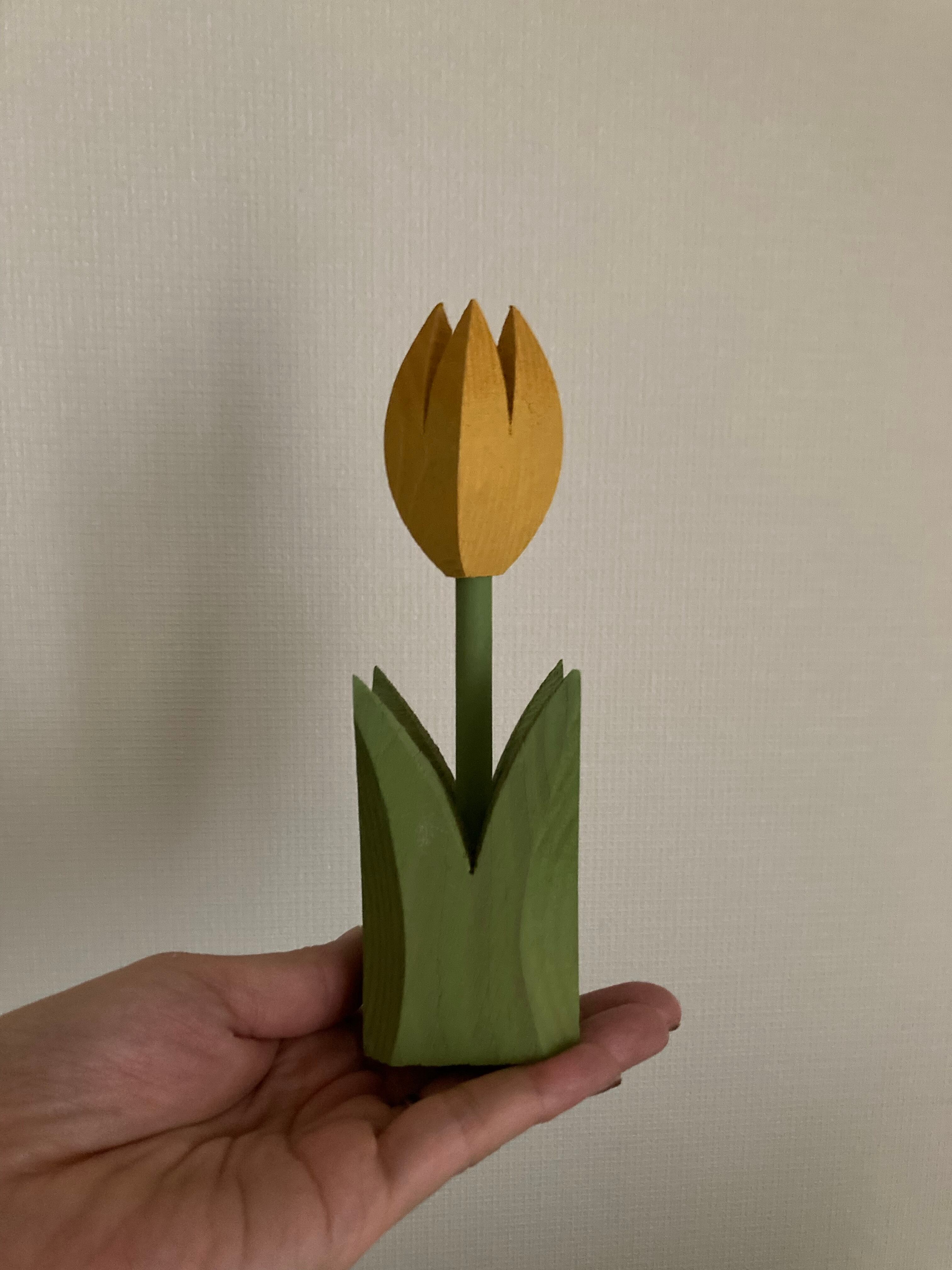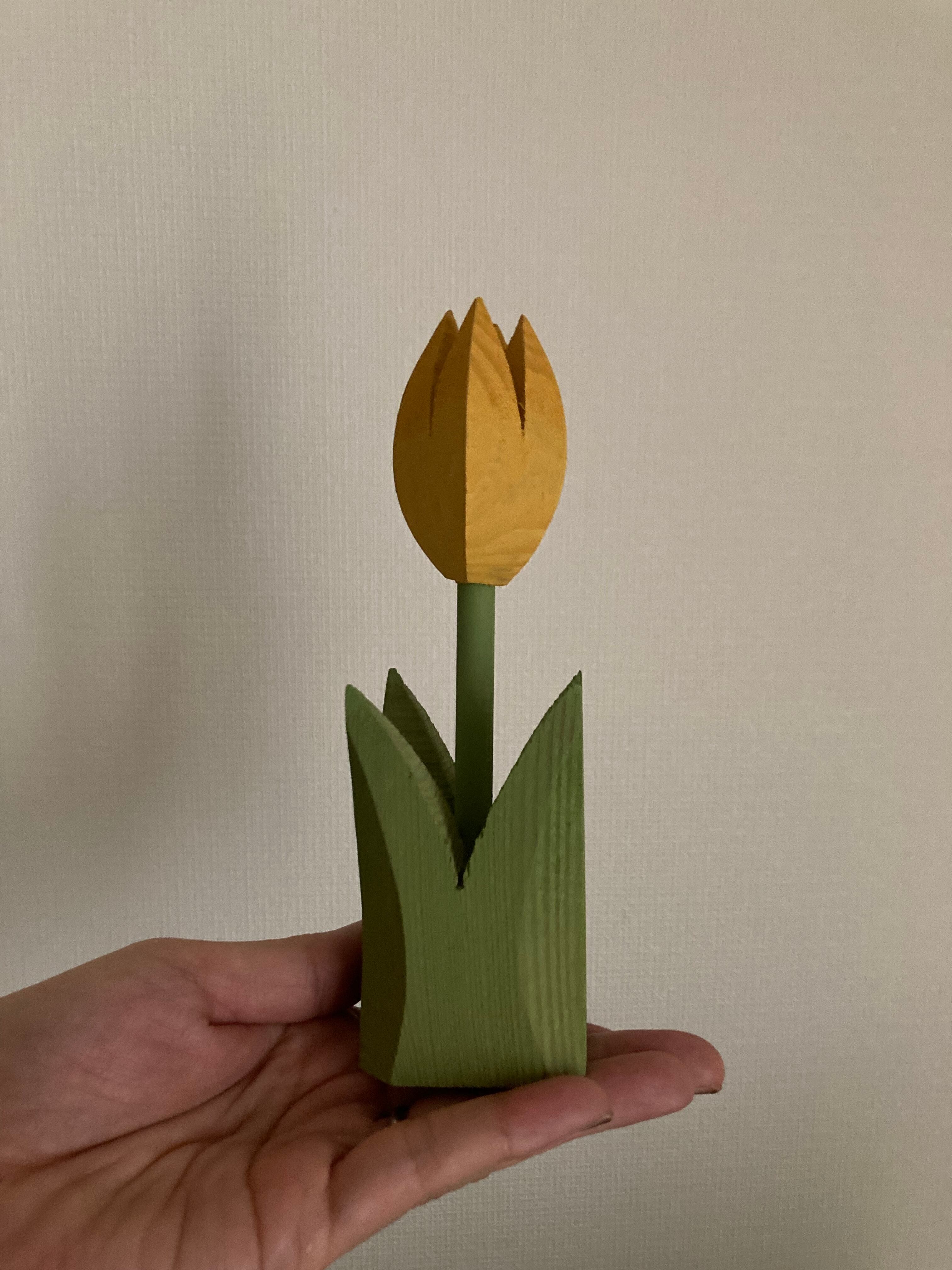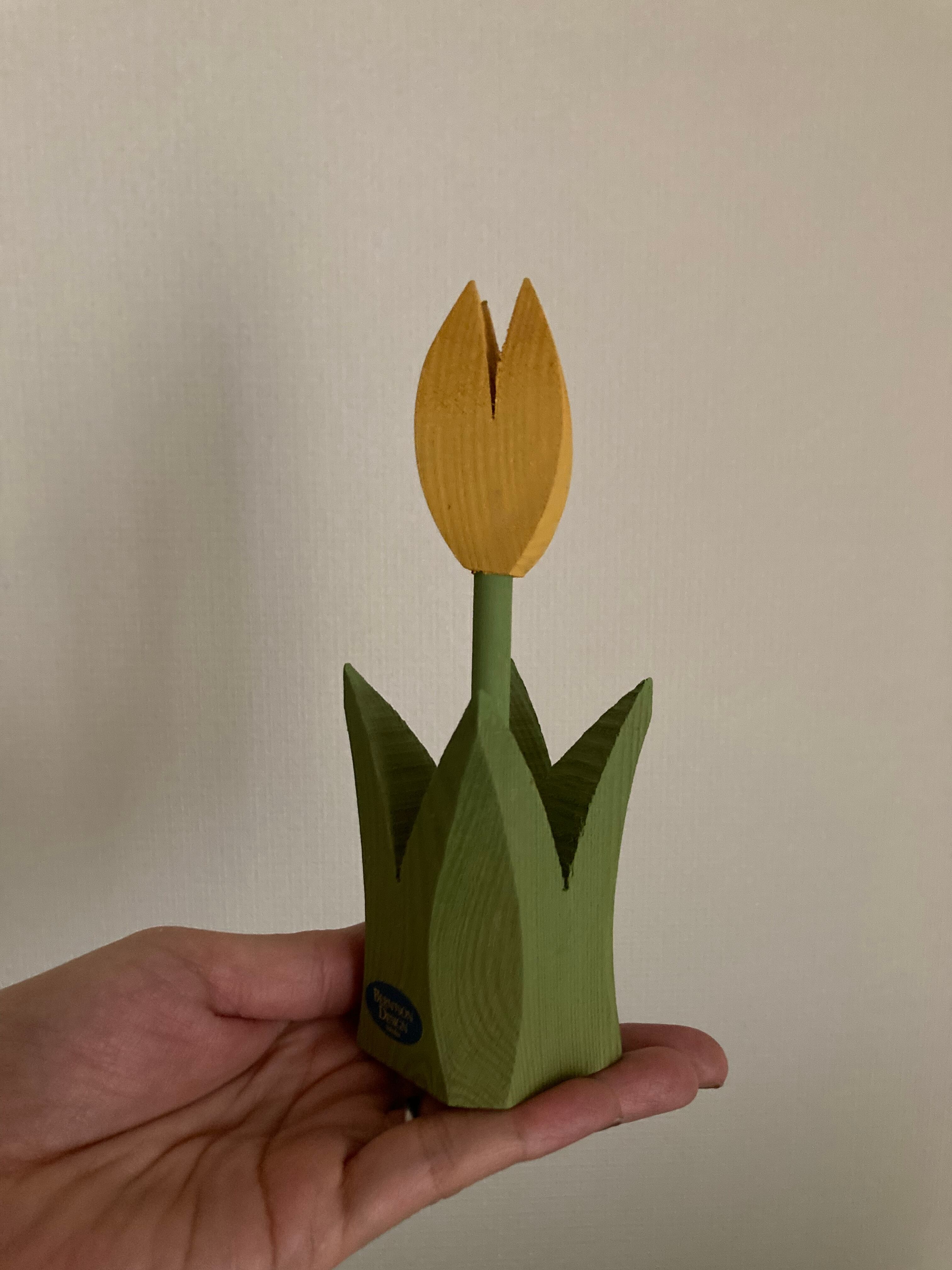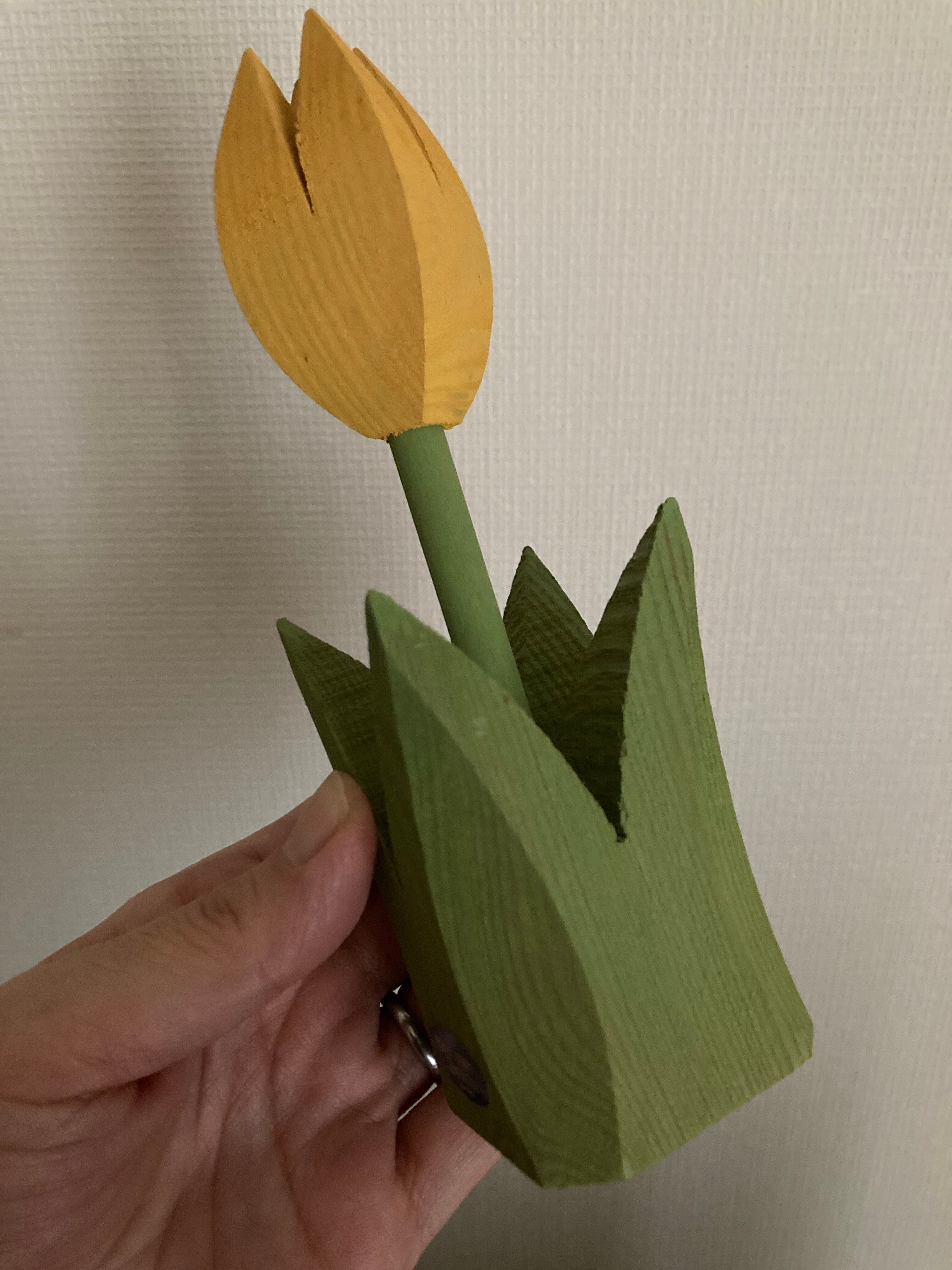 グリーンとイエローの色合いが可愛らしい木製のチューリップのオブジェです♫