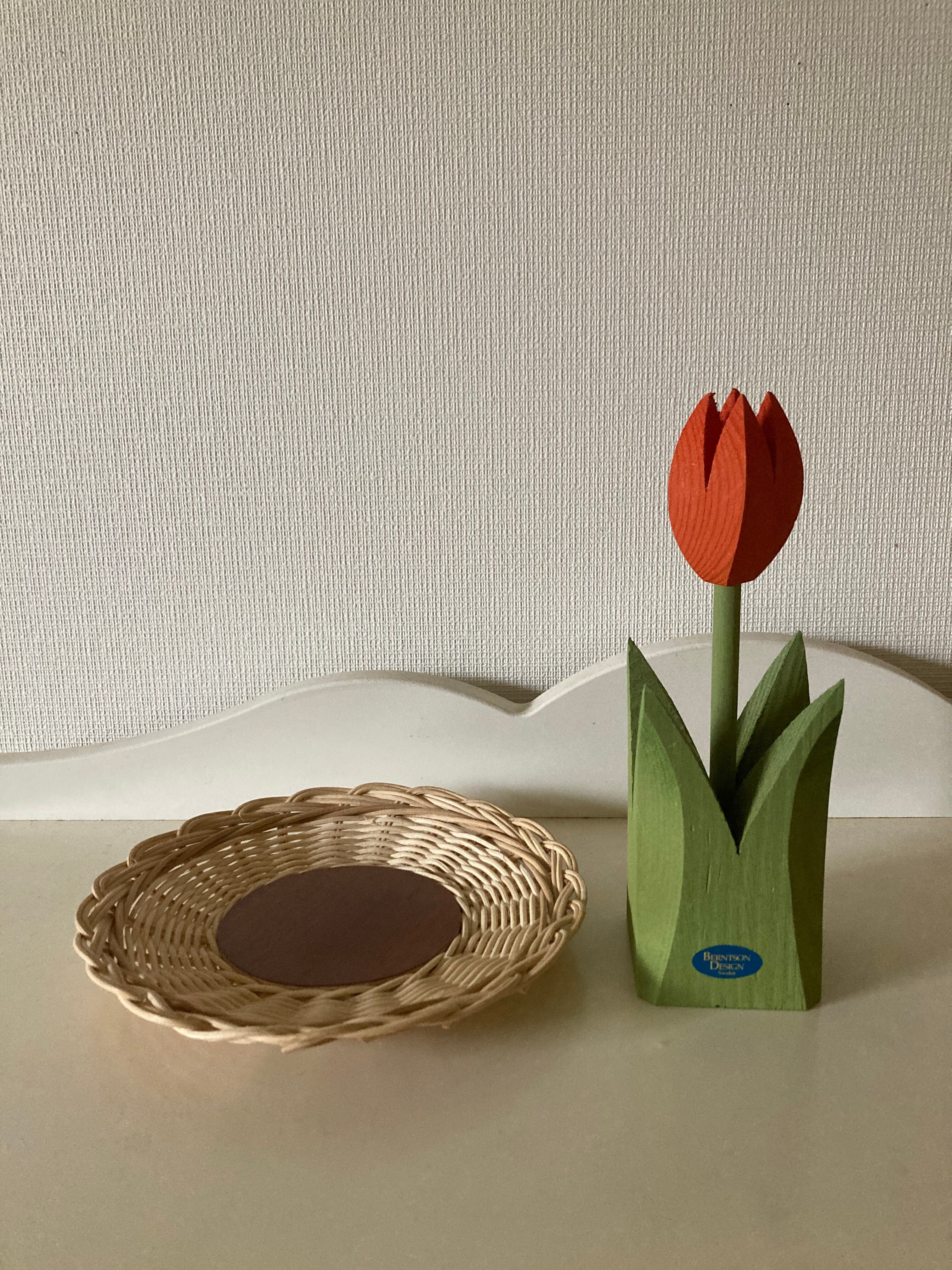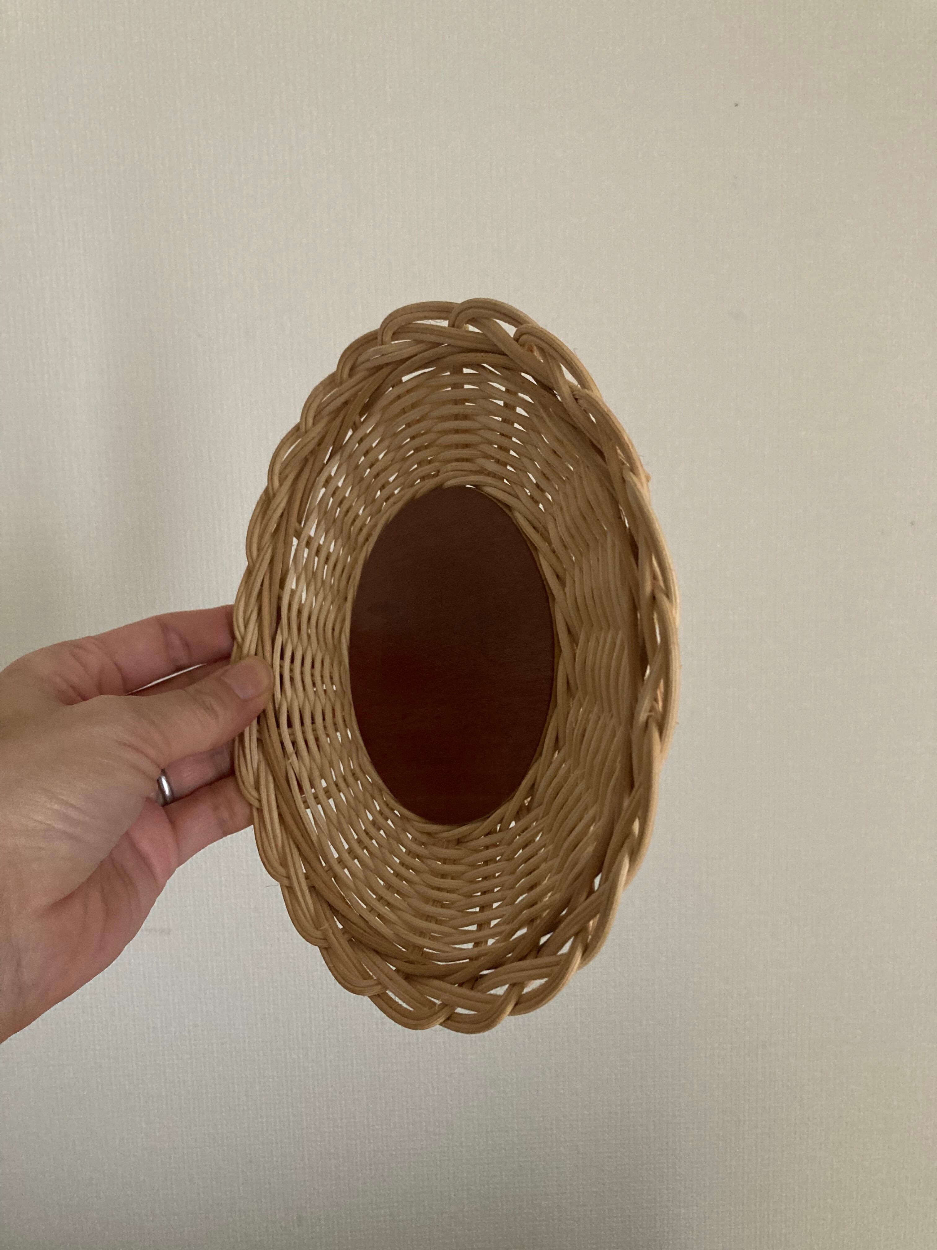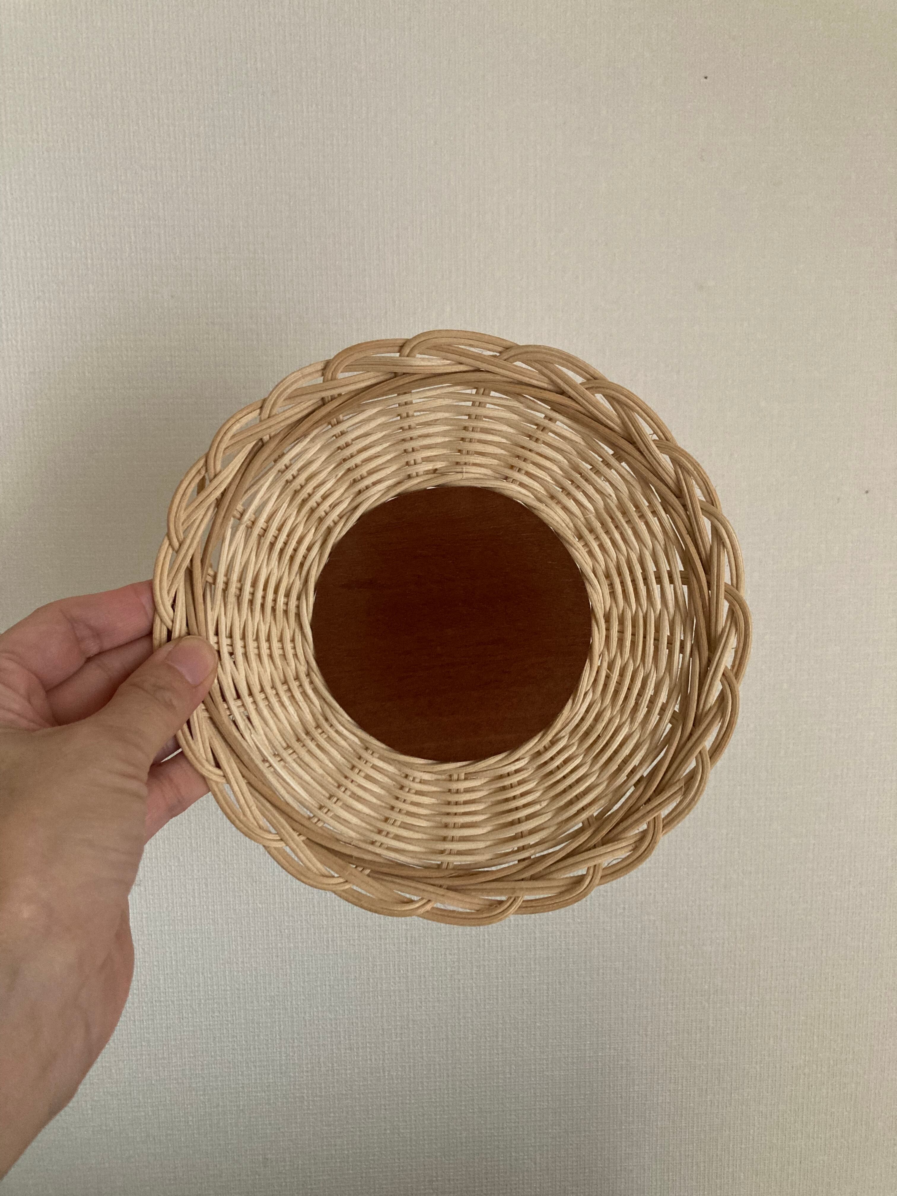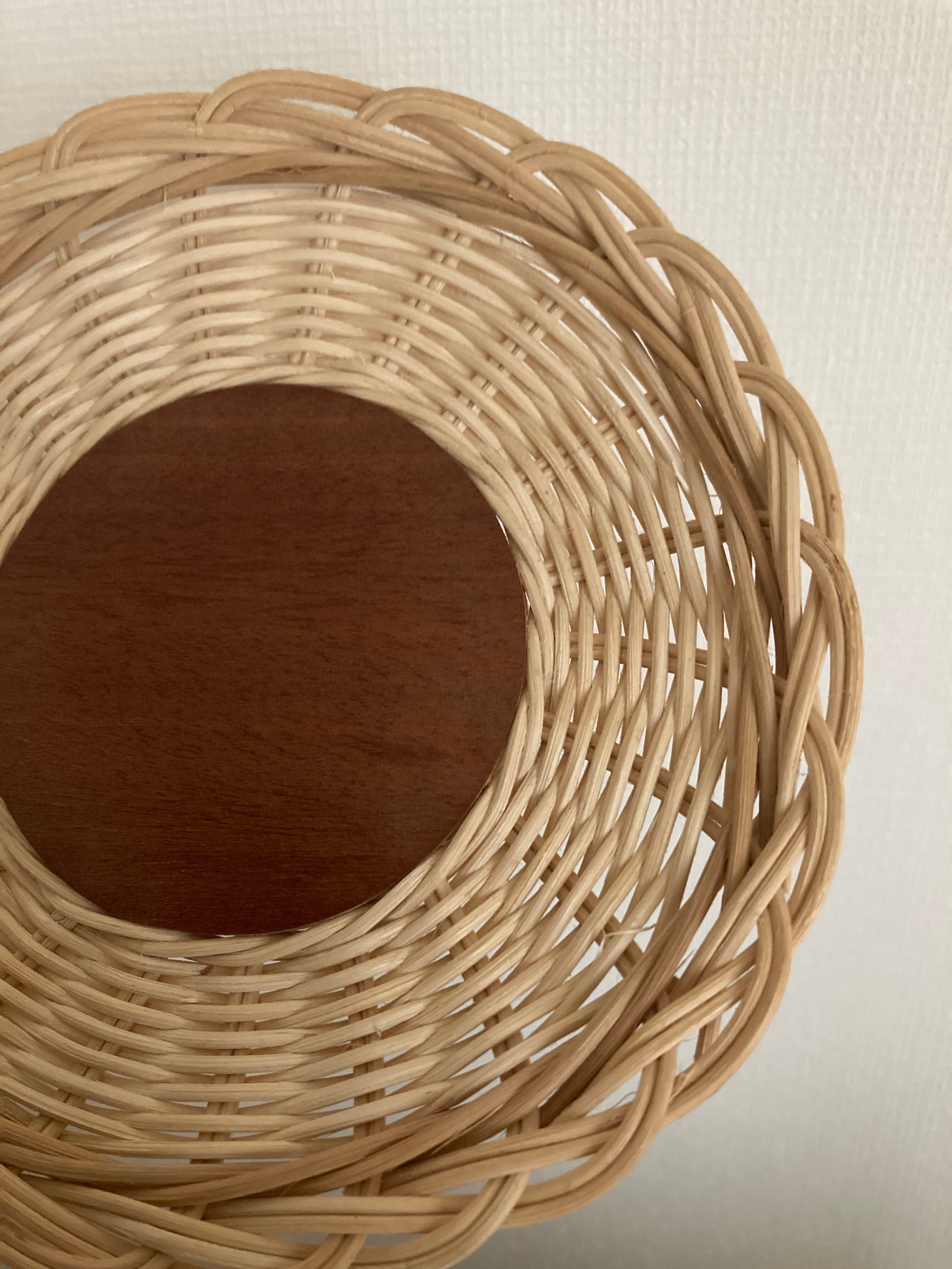 籐とマットなチークの組み合わせがナチュラルで可愛いらしいトレイ。ミニサイズかまた可愛らしいです♫