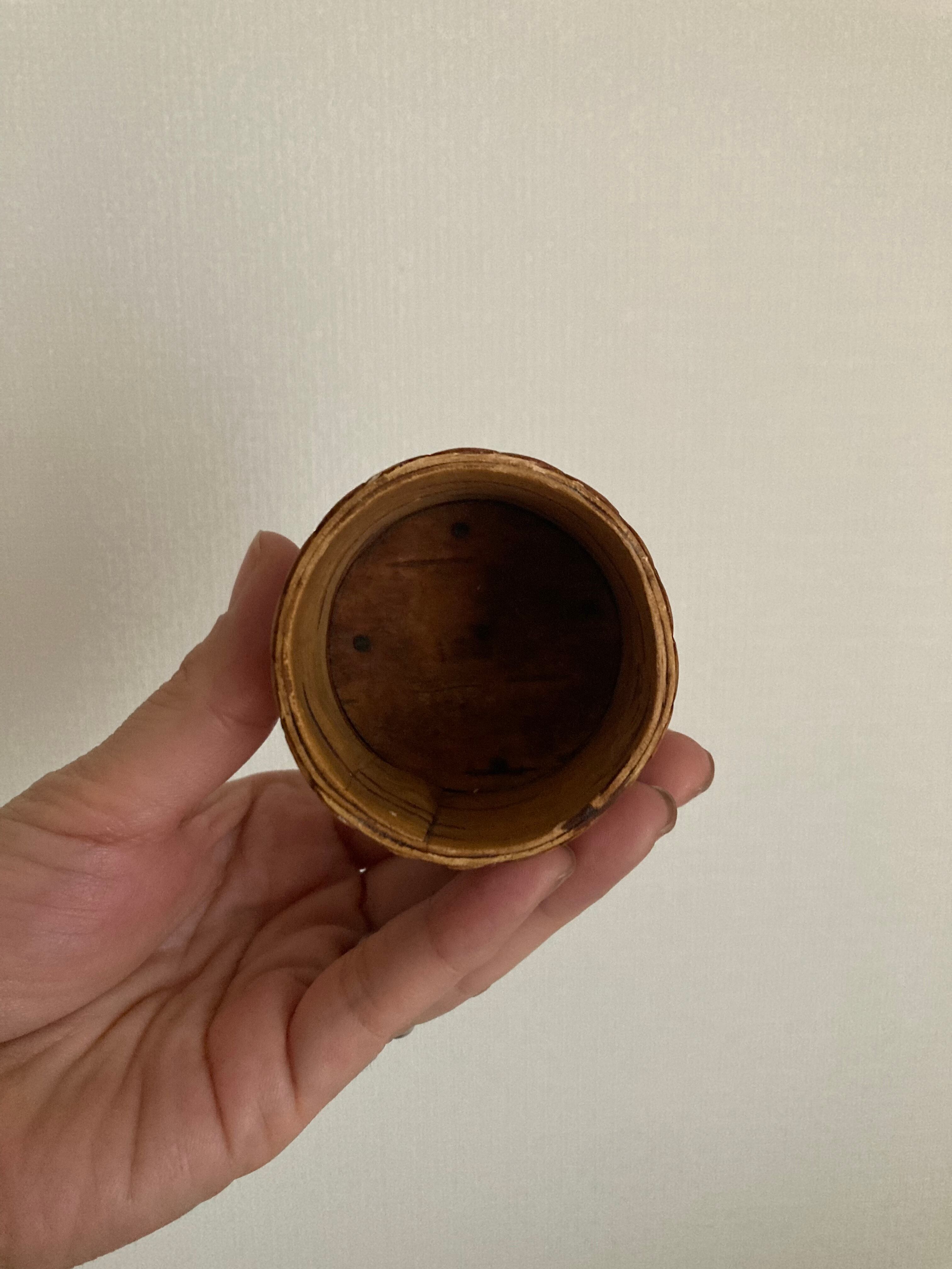 波型にカットされた白樺細工がとても凝っていて可愛らしいミニカップ。