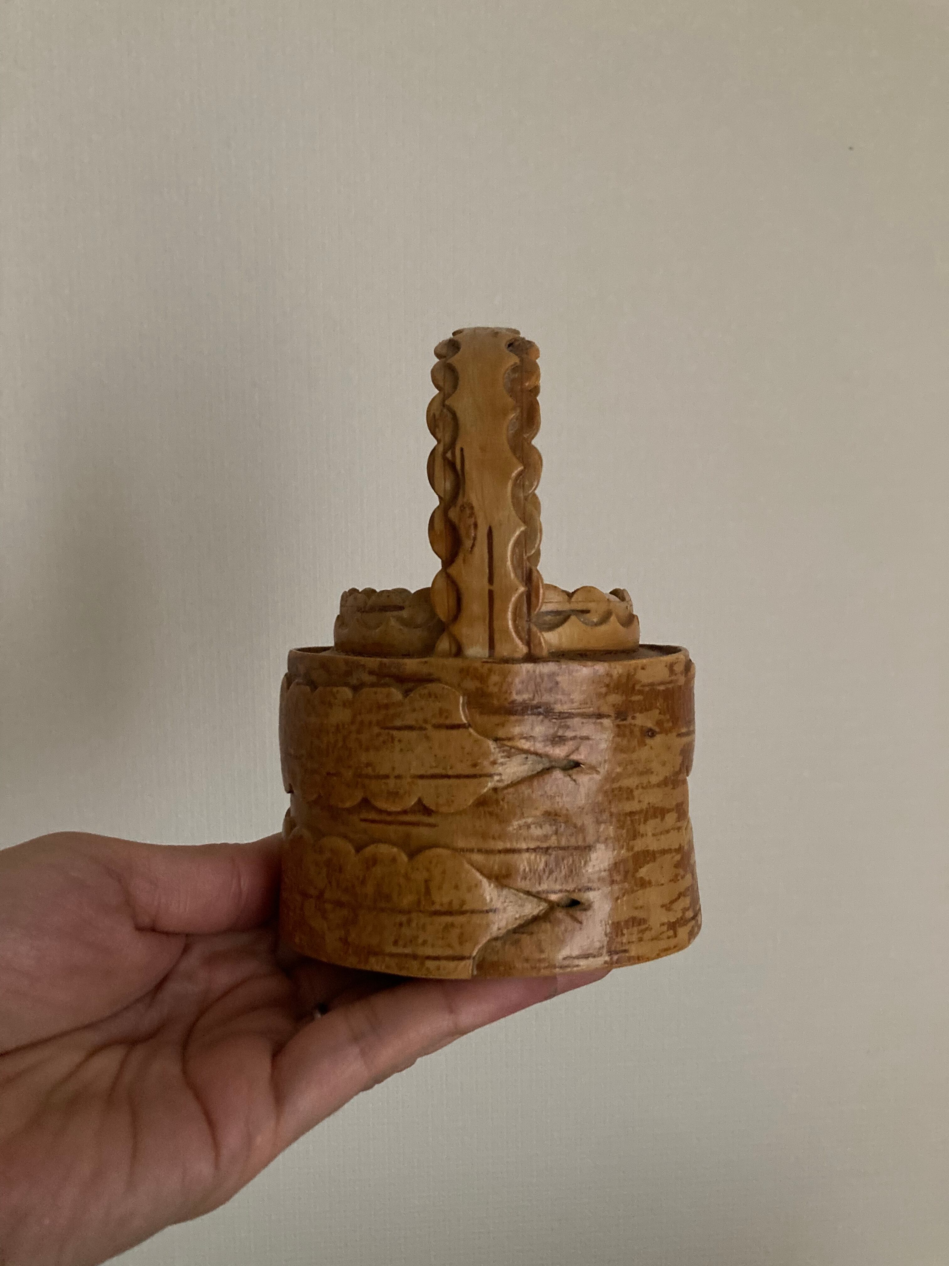 バスケット型が可愛いらしい、白樺のミニフラワーベースです。