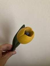 木製のすっとした葉っぱと茎のグリーンに、黄色のチューリップが可愛らしいてす♫