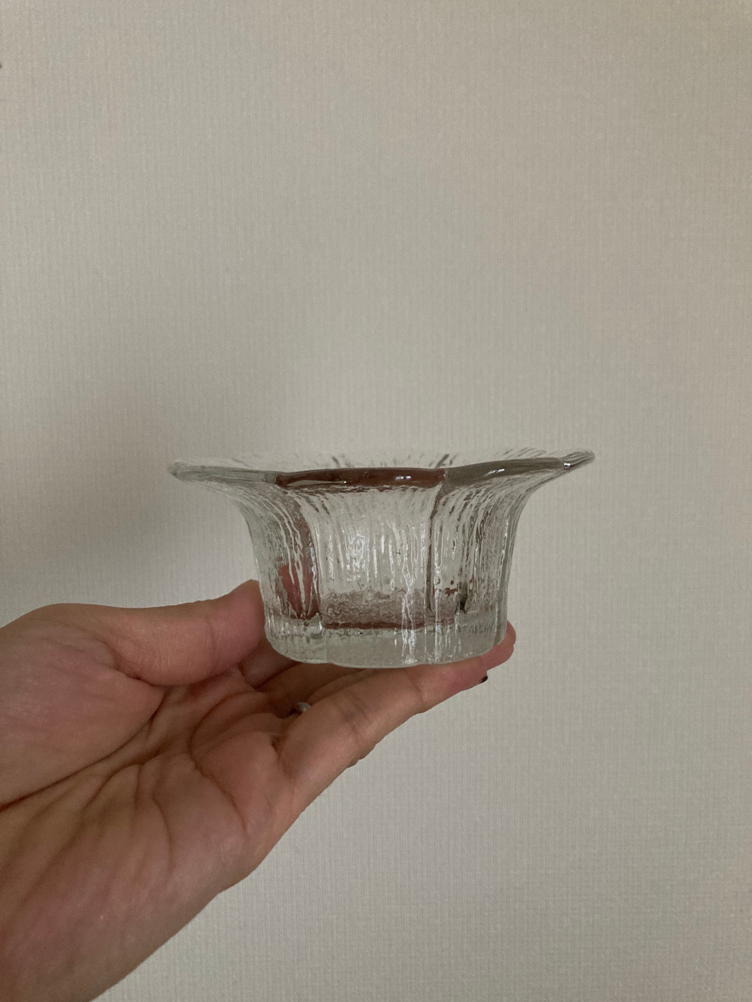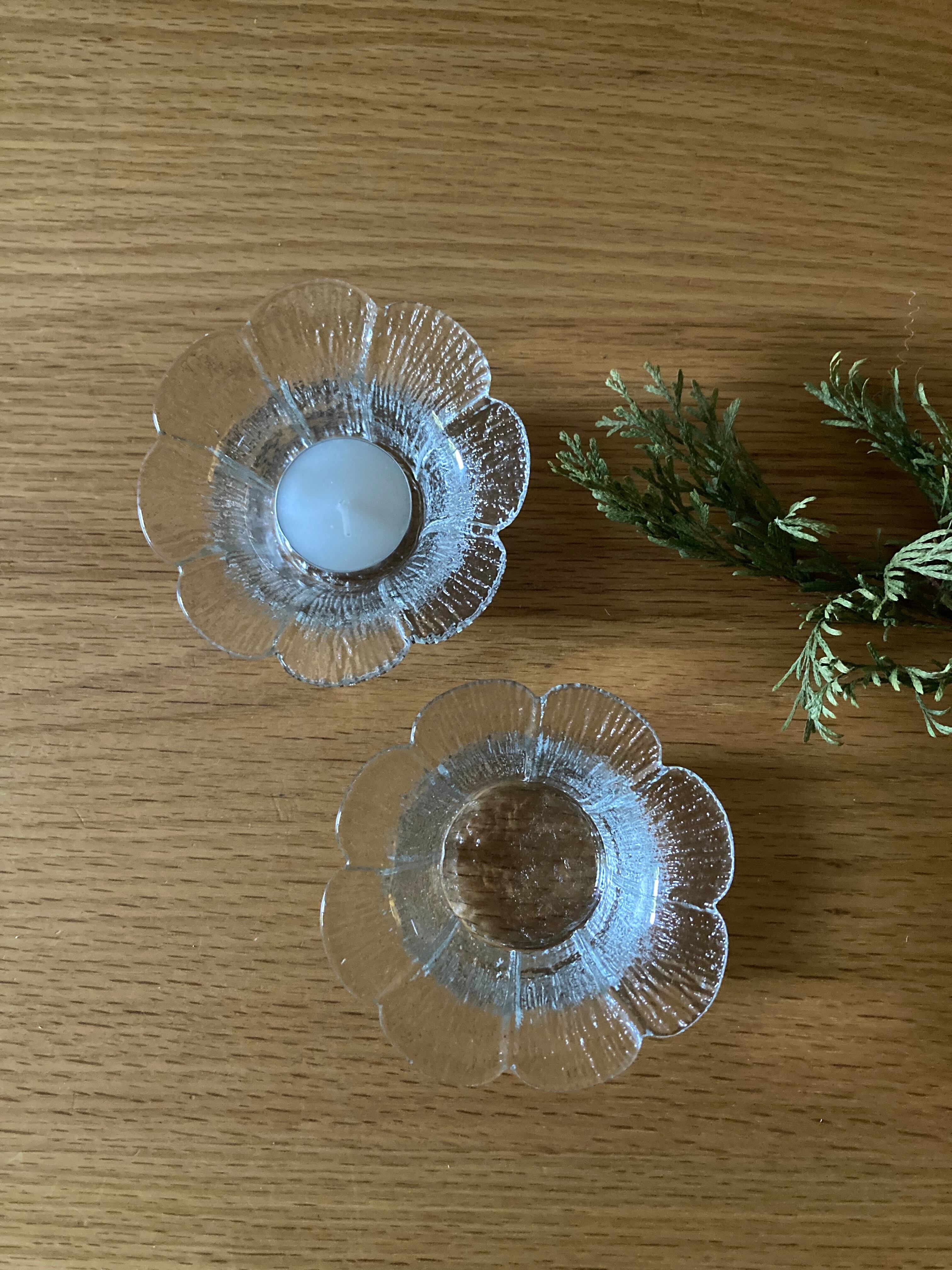 Teralehtiシリーズのガラスのキャンドルホルダーです。Teralehtiとは花びらの意味。その名の通り、お花がパッと開いたようなデザインが可愛らしいタイプ。